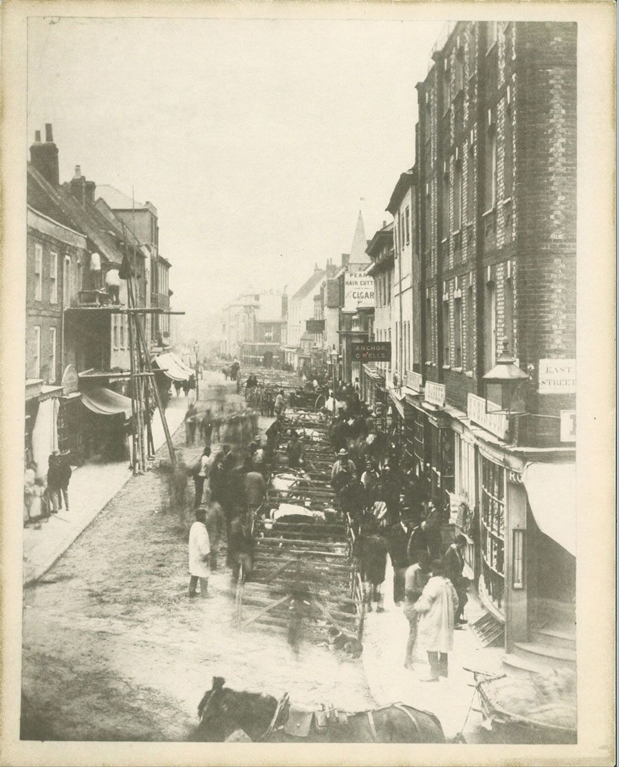 On market days, cattle, horses and pigs filled the streets around the Market Cross and East Street until a new purpose-built site opened in 1871. The late Henry Adams recalled that Chichester hosted one of the largest pig markets in southern England, with more than 1,000 pigs a week being traded during the 1950s and 1960s by farmers from across West Sussex and beyond.