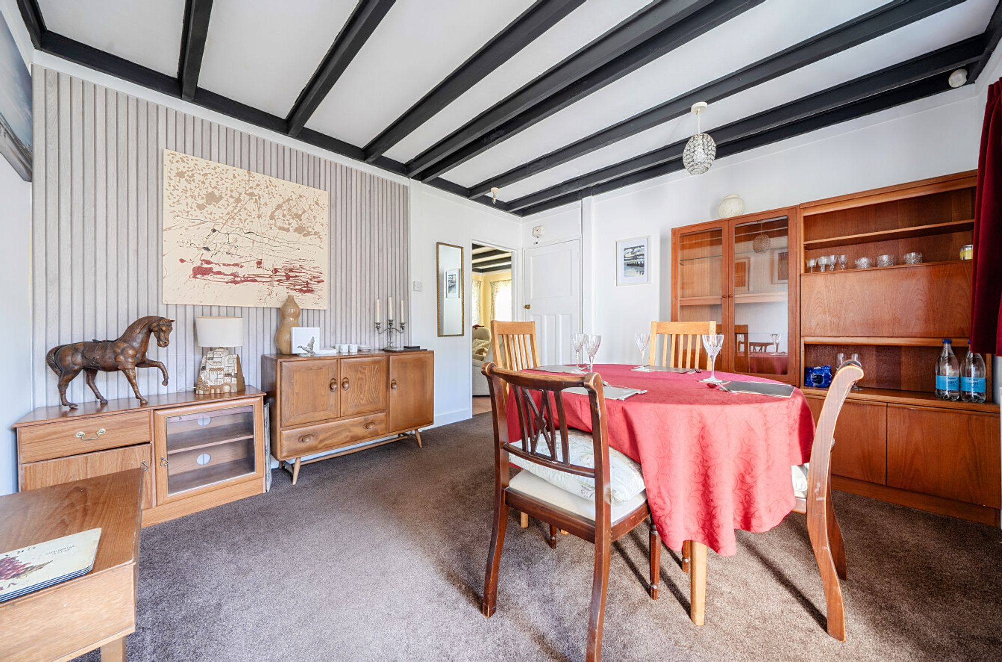 The accommodation includes a sitting room with a feature brick built fireplace, separate dining room, and a fitted kitchen, providing a practical layout for family living. A ground floor cloakroom is accessed via the side entrance porch, while upstairs, all four bedrooms are a good size and are served by a centrally located family bathroom.