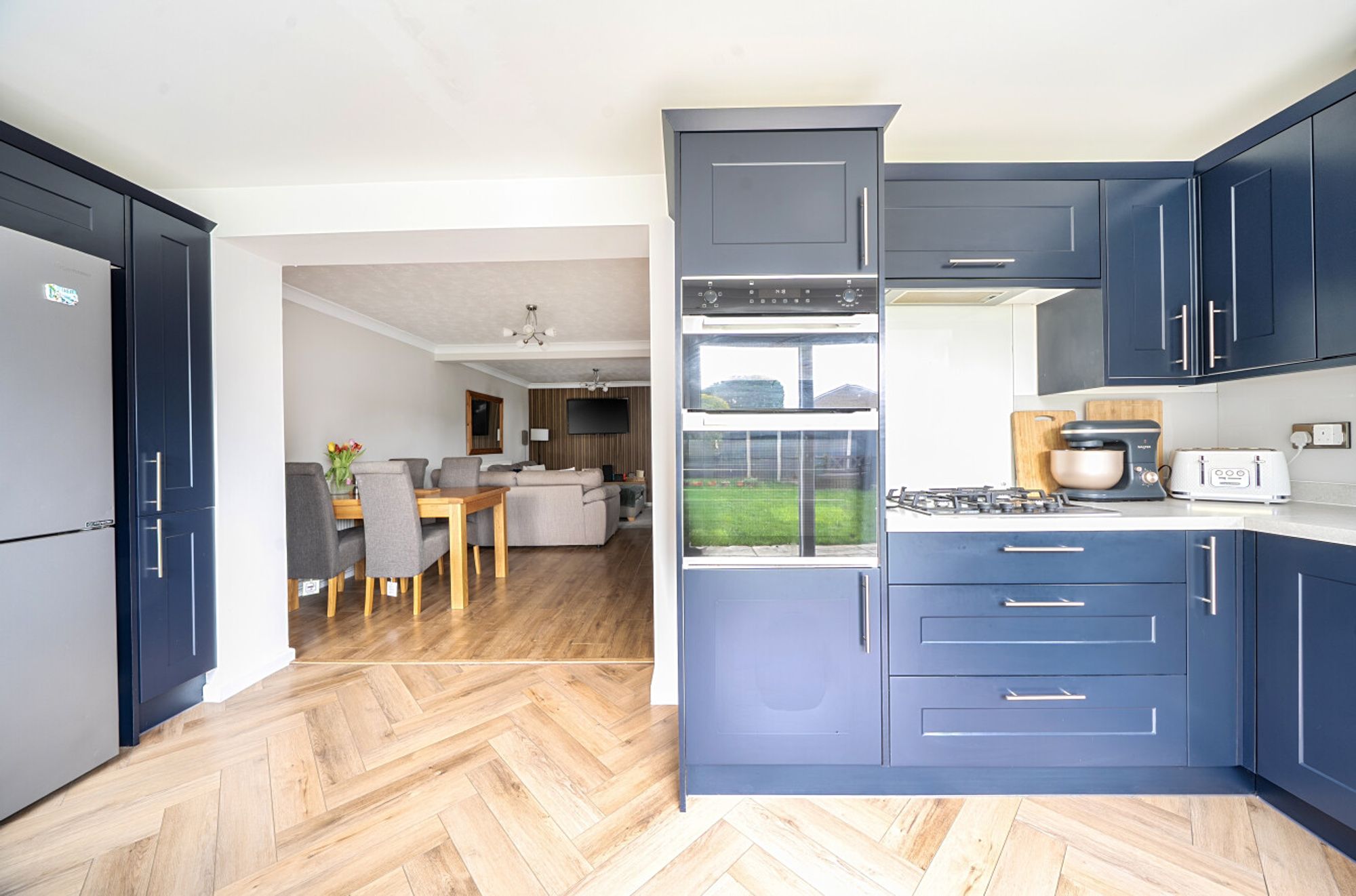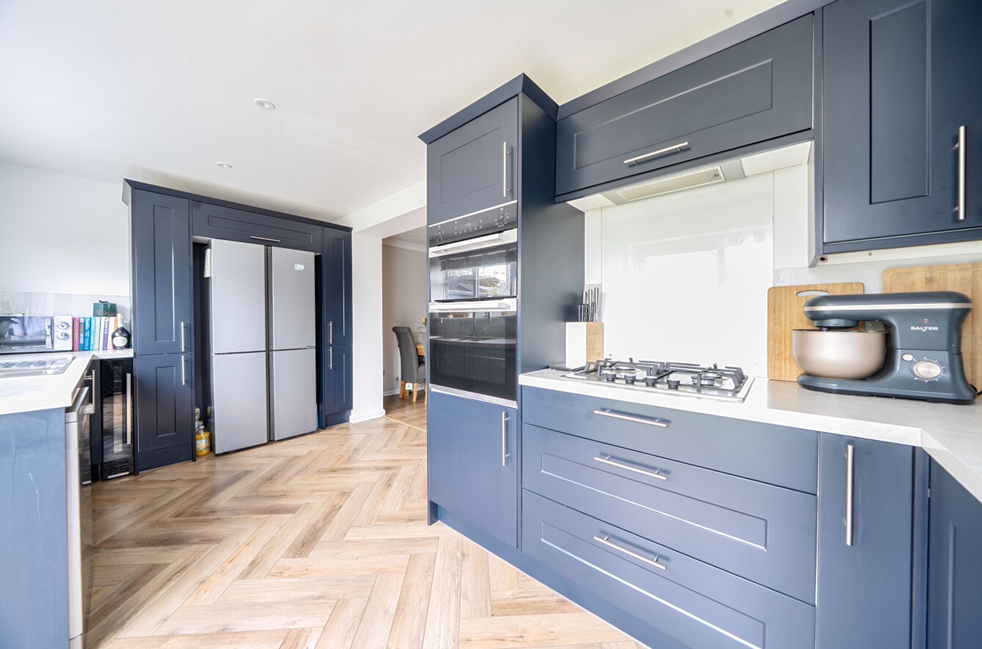 Externally, the home continues to impress. The south-facing garden provides an excellent space to enjoy the sun throughout the day, while a wooden lean-to to the side of the property offers useful additional storage or potential for further versatility. The corner plot allows for excellent outdoor space and privacy. There is also a garage and off-road parking for at least four vehicles, making this an ideal choice for families or buyers with multiple cars.