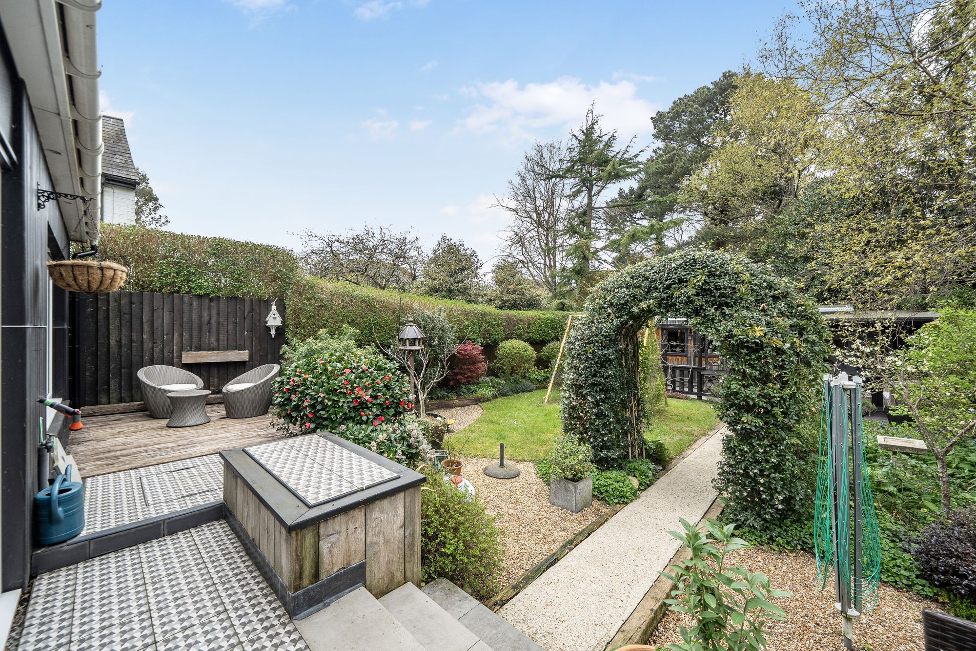 Upstairs, two spacious double bedrooms offer comfortable retreats, both served by a stylish family bathroom, the main bedroom has a lovely balcony overlooking the garden. The property further boasts a bright conservatory or sunroom, seamlessly connecting indoor and outdoor living and creating an ideal space for year-round enjoyment. The garden has a variety of plants and shrubs and backs onto the village pond, the garden pub is a fabulous entertaining space and fully insulated with a wood burner making it a great place to relax with friends and family.