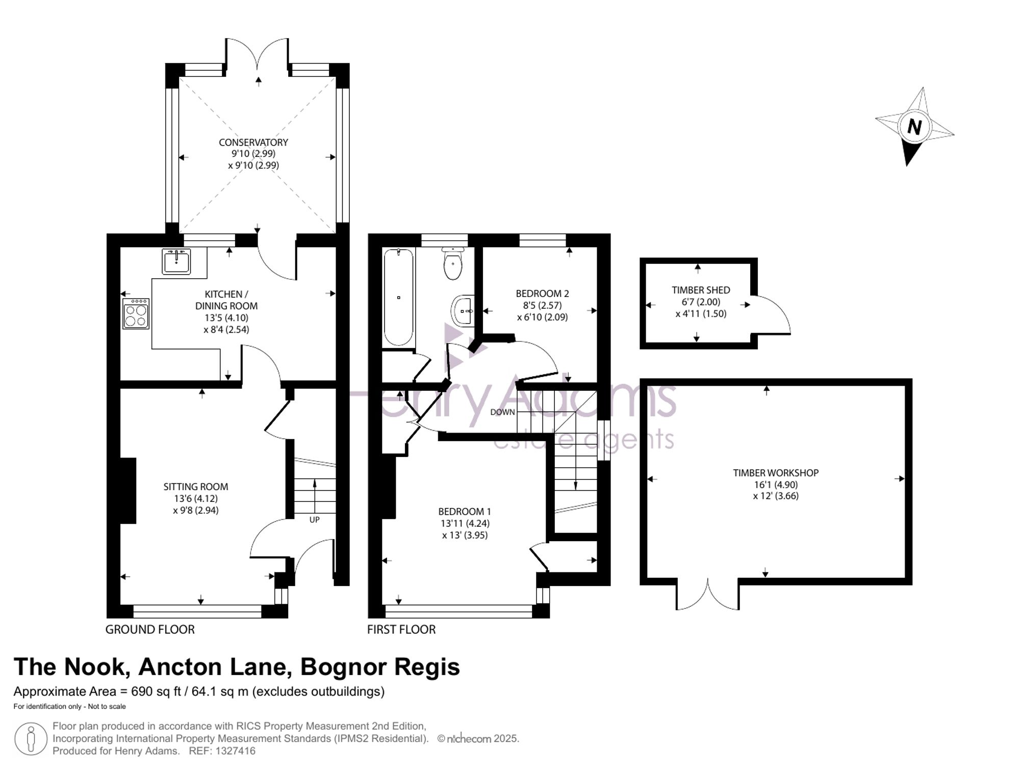 The accommodation measures 690 sq ft and briefly comprises a cosy sitting room to the front of the property with feature fireplace and wooden floors which flow through to the kitchen-dining room and conservatory beyond. The kitchen area has a range of smart white units with spaces for cooker, washing machine, dishwasher and tall fridge freezer. The conservatory provides additional living space and overlooks the attractive garden. Stairs from the entrance hall rise to the first floor where the bathroom and both bedrooms will be found. Bedroom one has a feature fire surround and built-in wardrobes.
