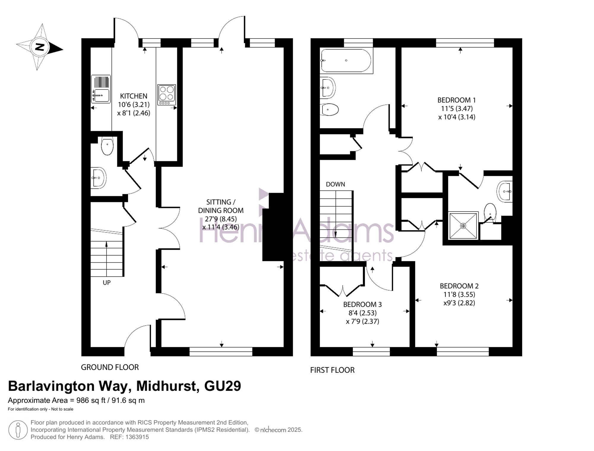 Upstairs, there are three bedrooms (two doubles) and two bathrooms, including an ensuite shower room to the principal bedroom. This practical layout provides comfortable and flexible accommodation, perfect for families or those seeking modern, low-maintenance living.