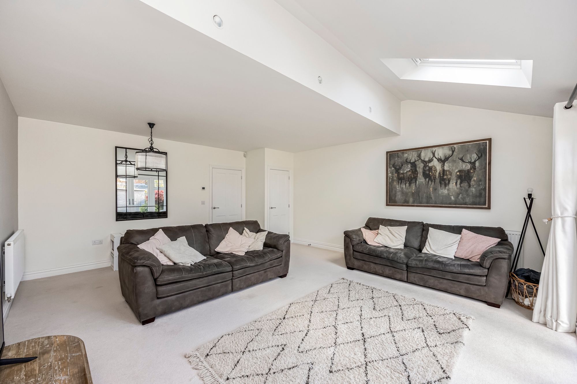 The property features an impressive, generously proportioned living room that serves as the true heart of the home. Flooded with natural light, this versatile space offers exceptional flexibility, easily accommodating both comfortable living and formal dining areas. Whether used as a spacious lounge for relaxing or adapted to incorporate a dining setup for entertaining, the room effortlessly caters to modern family living.