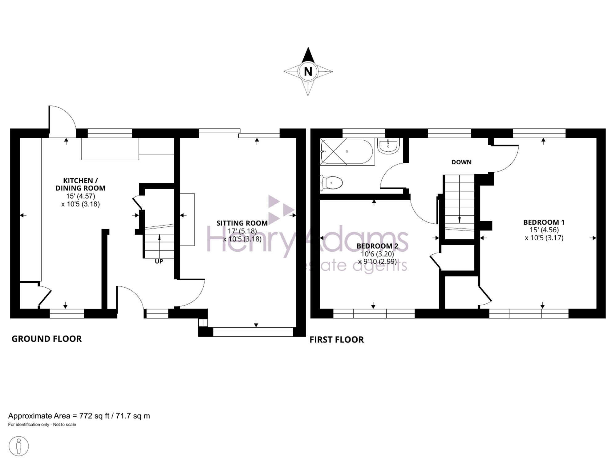 Upstairs, there are two bedrooms along with a family bathroom that includes an electric shower over the bath, making it ideal for everyday living.