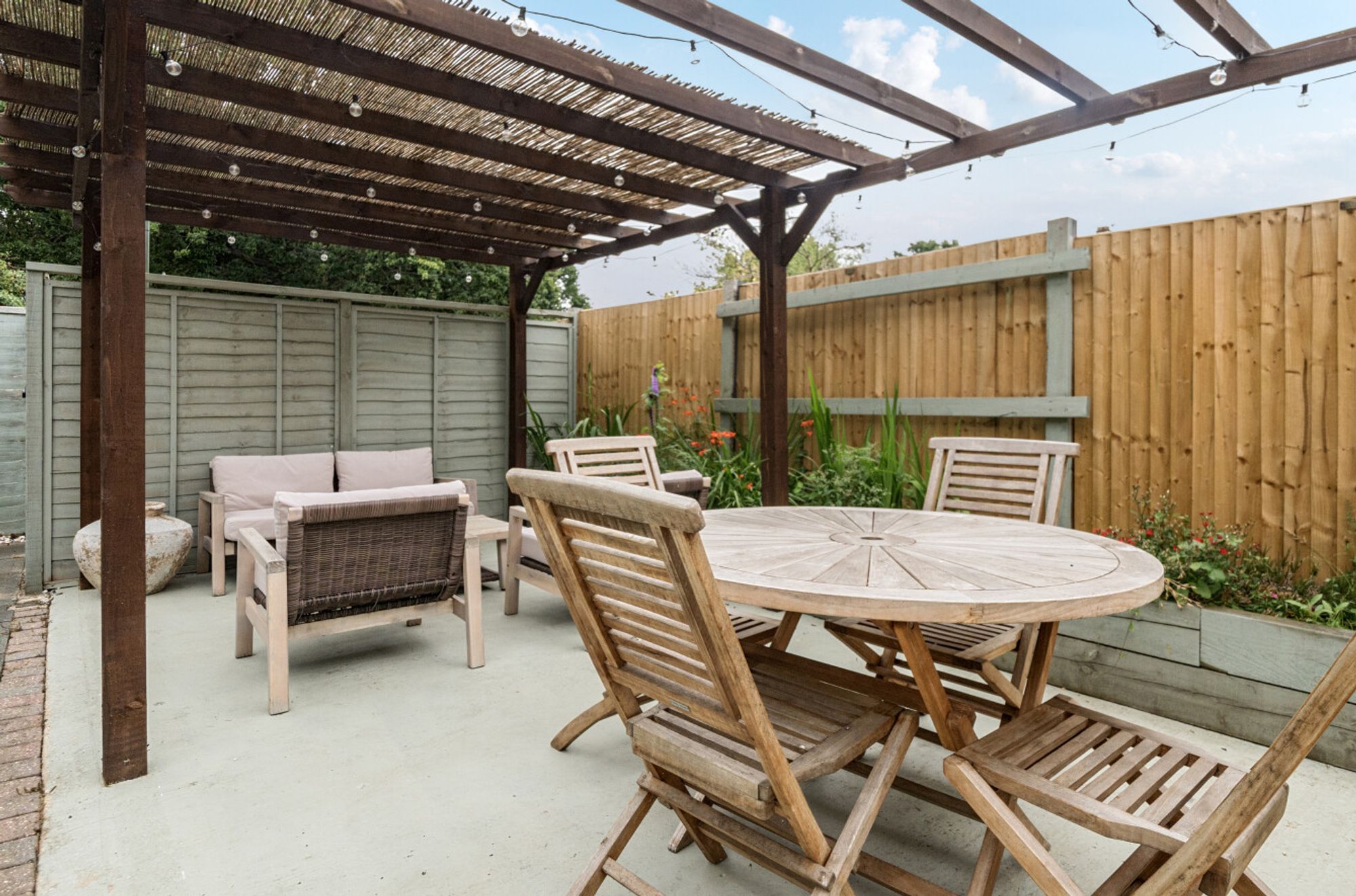 Outside, the enclosed front garden adds curb appeal, while the rear garden is perfect for entertaining or relaxing. It features a crazy-paved patio, a lawn area and a generous covered alfresco dining space. A garden shed offers useful storage and a rear gate leads to two private off-road parking spaces, which are accessed via Newlands Lane.