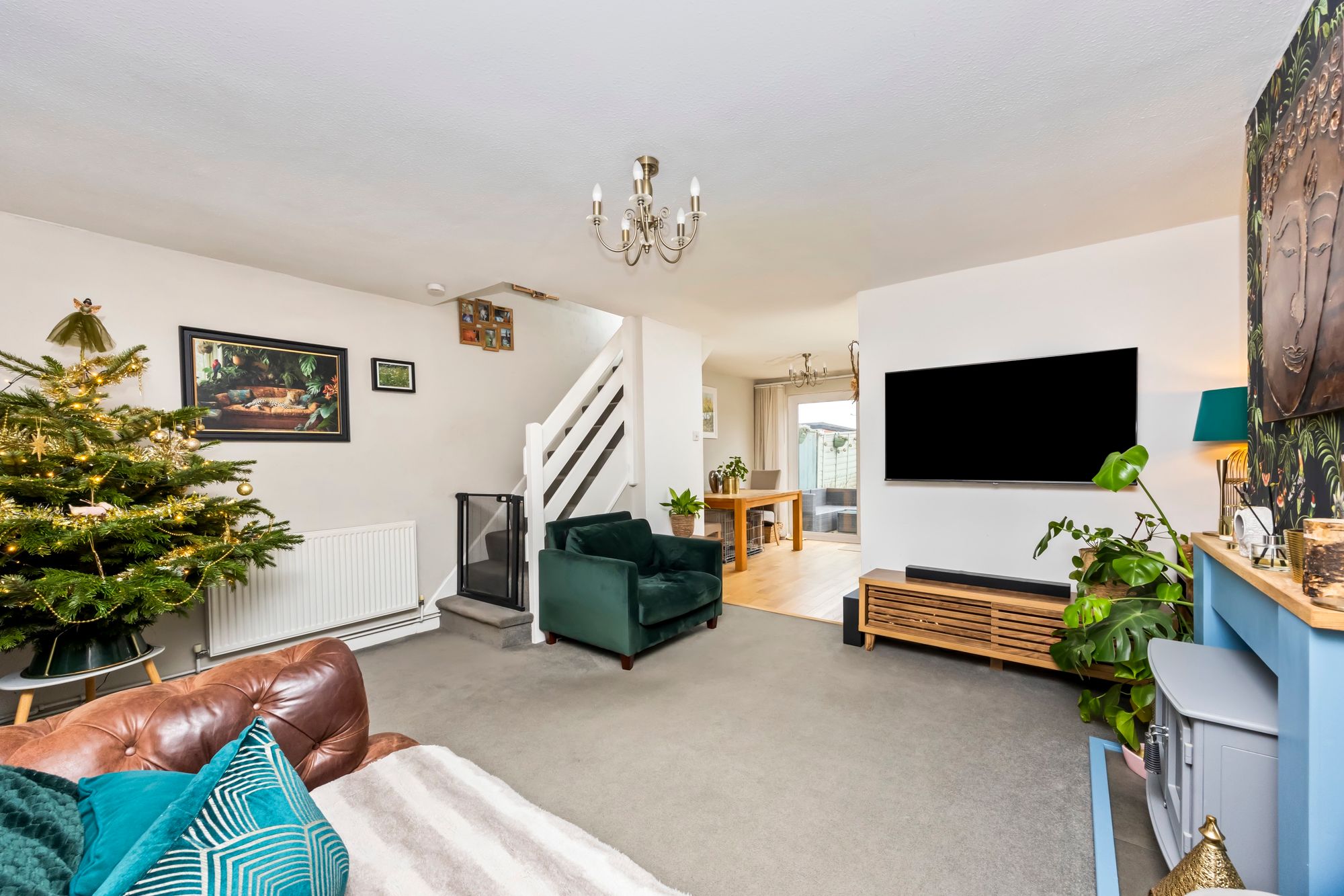 The property offers well-presented accommodation as illustrated by the floorplan. A spacious entrance porch provides an ideal welcome for guests, offering ample space for coats and shoes while creating a practical separation between the front door and the main living area. The living room is a warm and inviting space, open-plan to the staircase leading to the first floor. To the rear of the property is a delightful open-plan kitchen/breakfast room, which enjoys direct access to the rear garden.