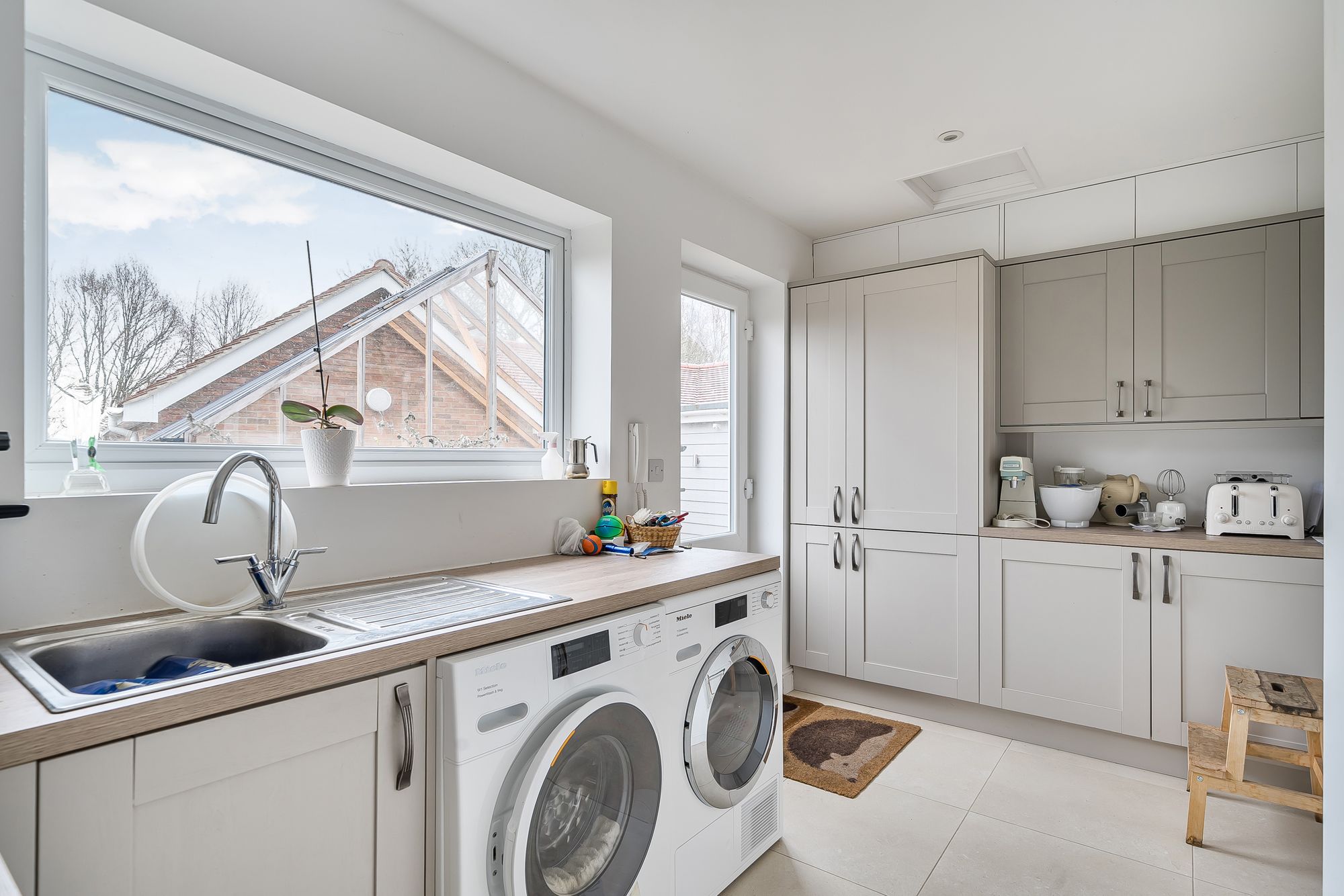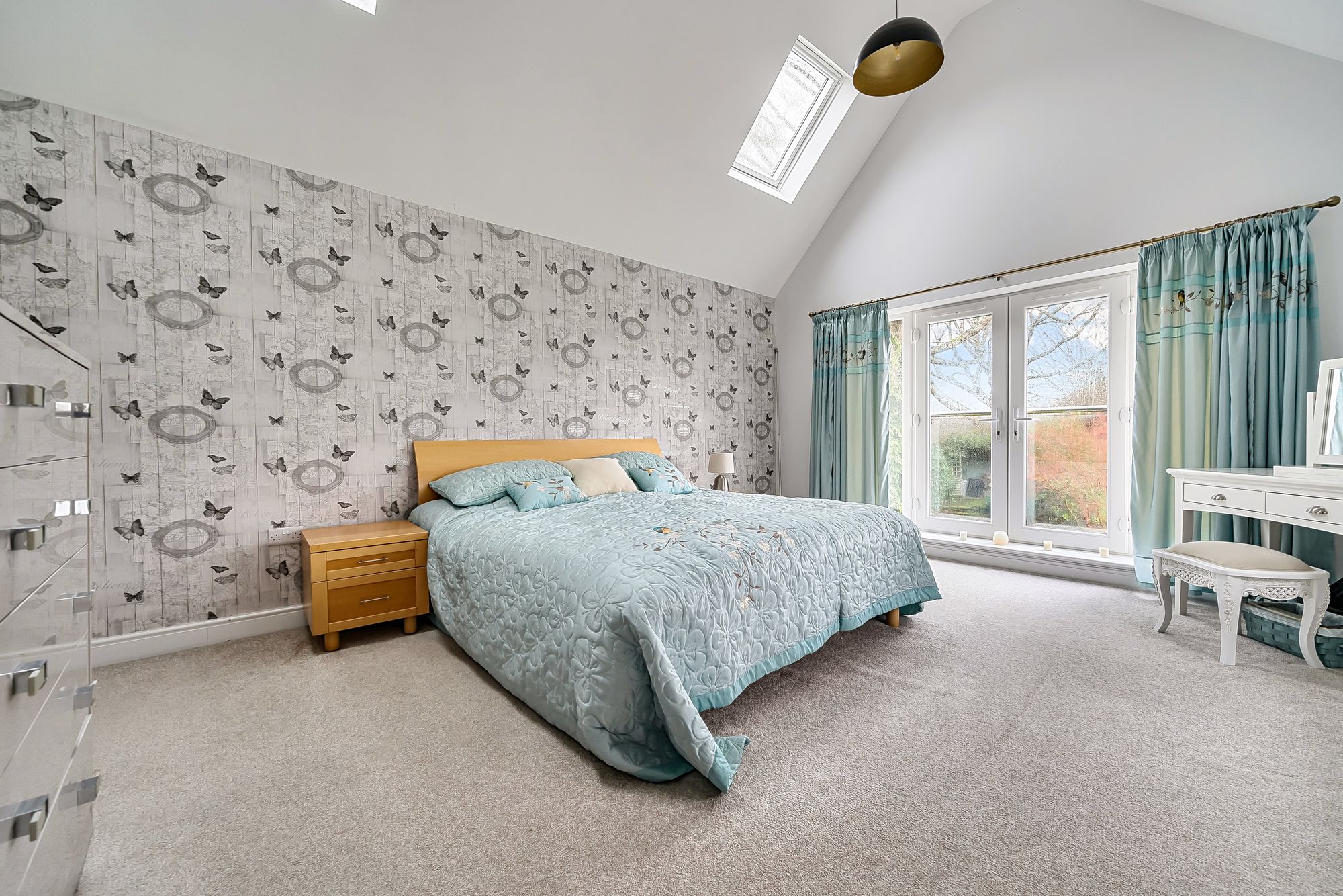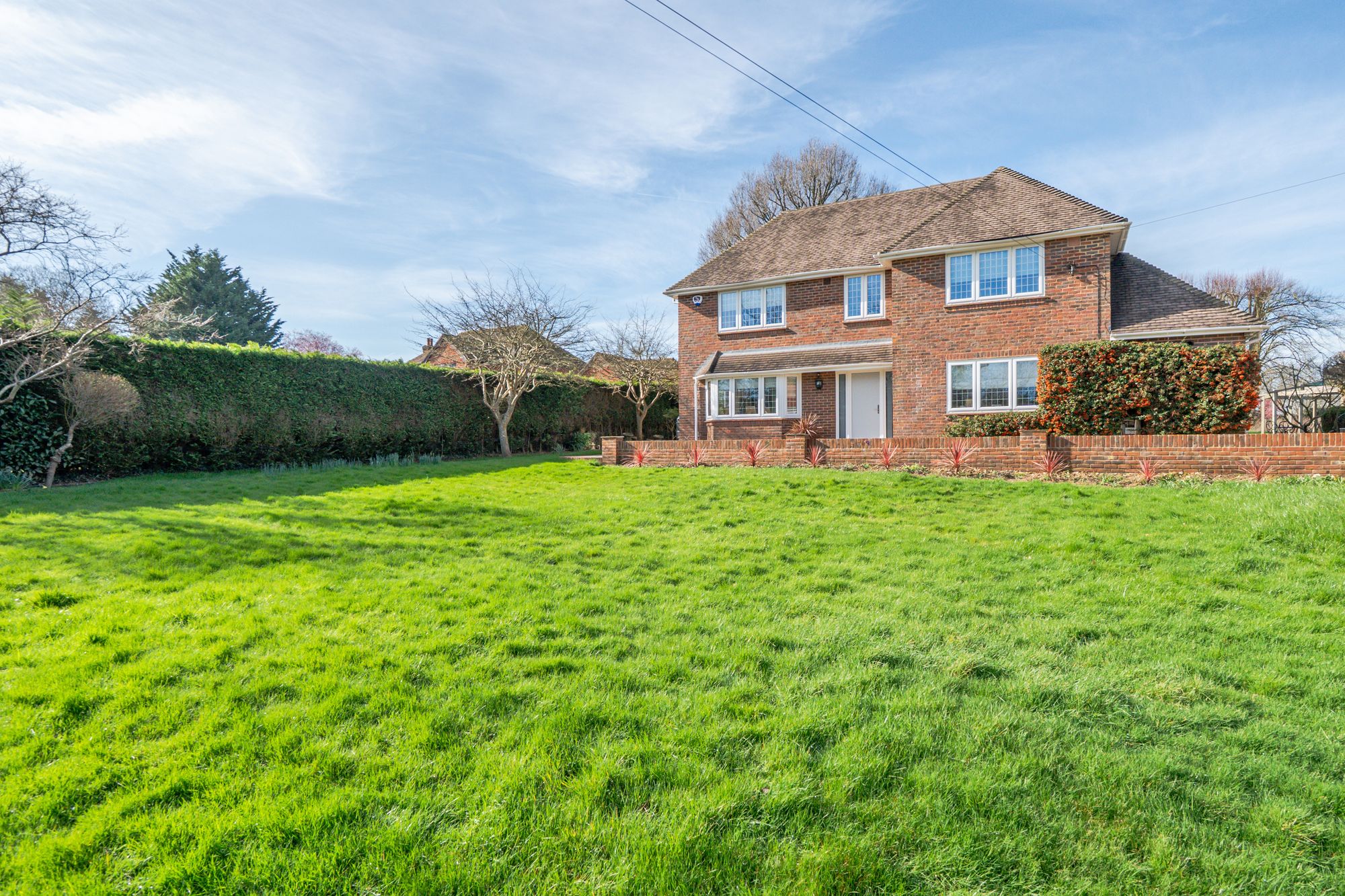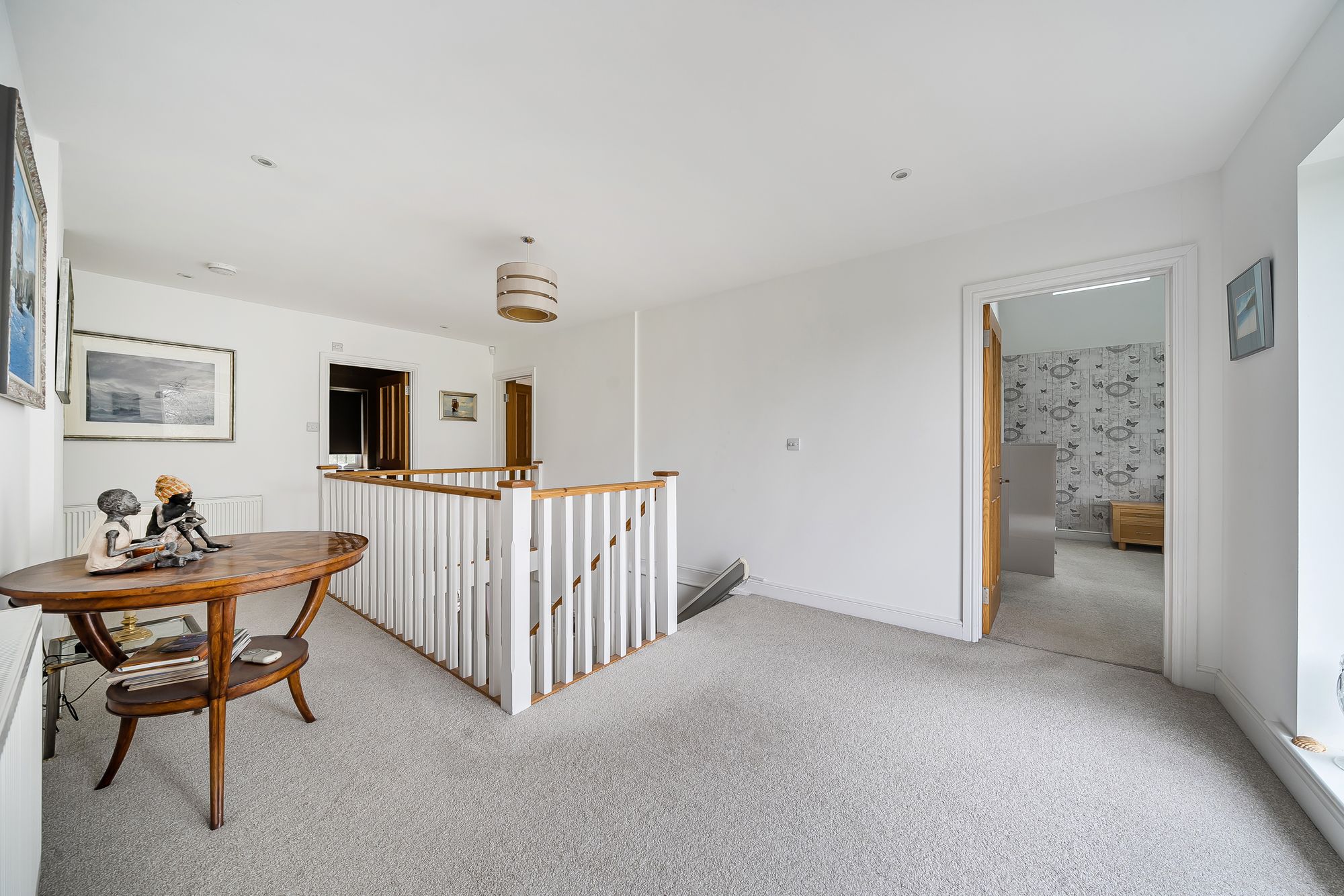 The main bedroom is a luxurious space, boasting a Juliet balcony, a generous dressing room and a contemporary en-suite shower room. There are four further double bedrooms, one conveniently located on the ground floor, and two additional bathrooms, one of which is en-suite.