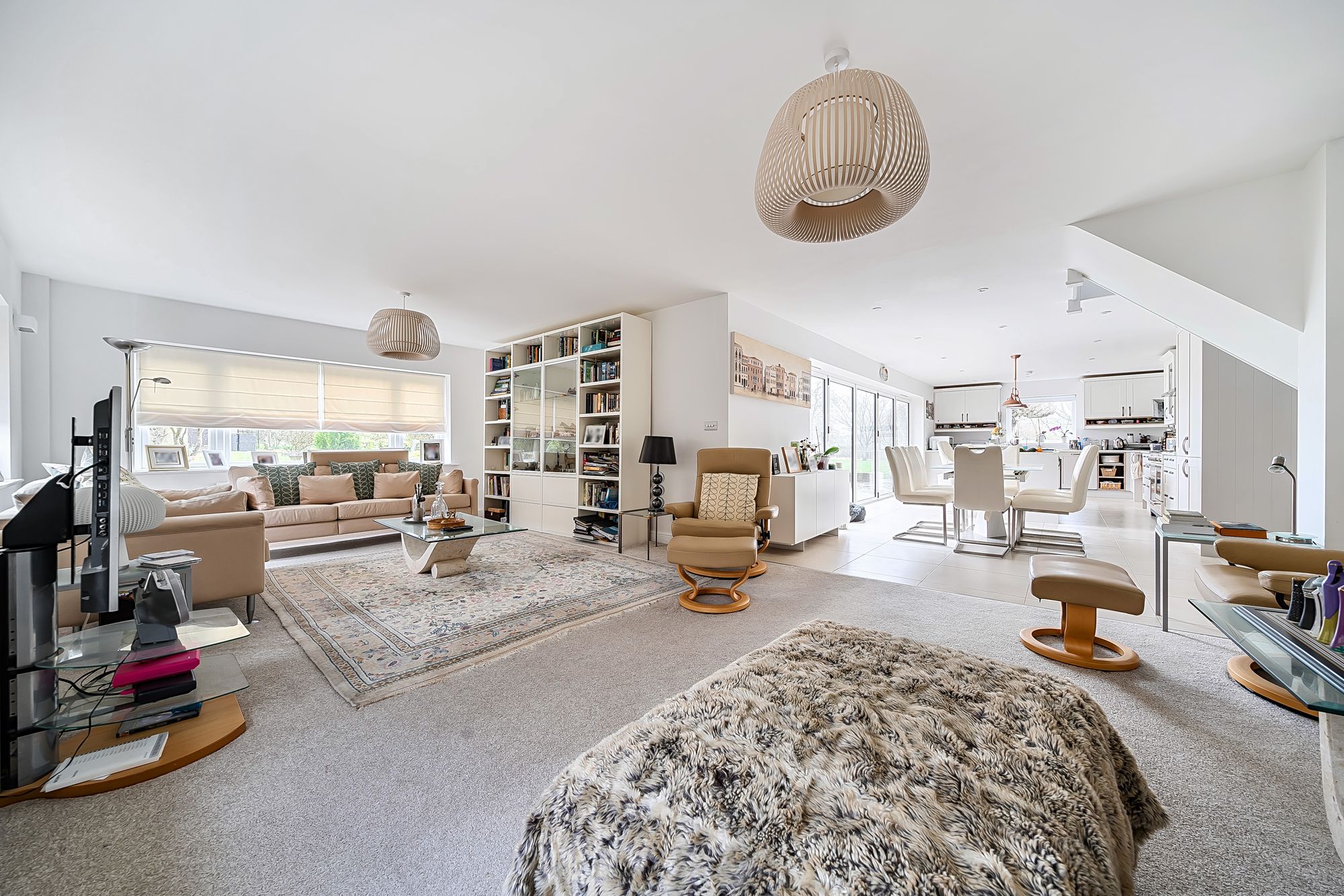 This impressive five bedroom detached house offers just under 3000 sq ft of beautifully presented family accommodation, enjoying a lovely outlook to a south facing garden. The heart of the home is a spacious open plan kitchen, dining and sitting room, featuring bi-fold doors that open seamlessly to the rear terrace. The kitchen is superbly equipped with a Rangemaster cooker and a full range of integrated appliances, including a full size fridge and freezer, making it ideal for both family life and entertaining. Adjoining the kitchen is a large utility room with a cloakroom, providing ample space for laundry and storage. A second reception room or snug, complete with an open fire and doors to the garden, offers a cosy retreat for relaxing or entertaining guests.