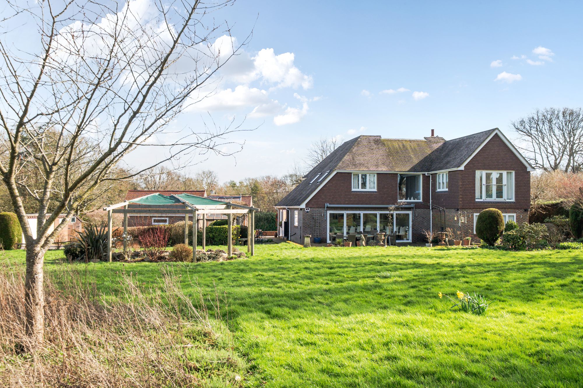 The property also benefits from a self-contained annexe, comprising a sitting room, kitchen, bedroom and bathroom, perfect for guests, extended family or as an independent living space. A range of outbuildings provides exceptional versatility, including two garages and a workshop, in addition there is an ideal area for a home office with kitchen facilities and a cloakroom, two single garages and a large greenhouse. With gardens and grounds approaching 2.75 acres, this property presents a rare opportunity to acquire a substantial and flexible family home in a desirable setting. The layout and specification of the house cater perfectly to modern family requirements, with generous proportions, quality finishes and thoughtful design throughout. Whether you are seeking space for multi-generational living, a home business or simply an elegant and comfortable residence, this property offers a wealth of possibilities, all set within a peaceful and private environment. Viewing is highly recommended to appreciate the scale, flexibility and quality of accommodation on offer.