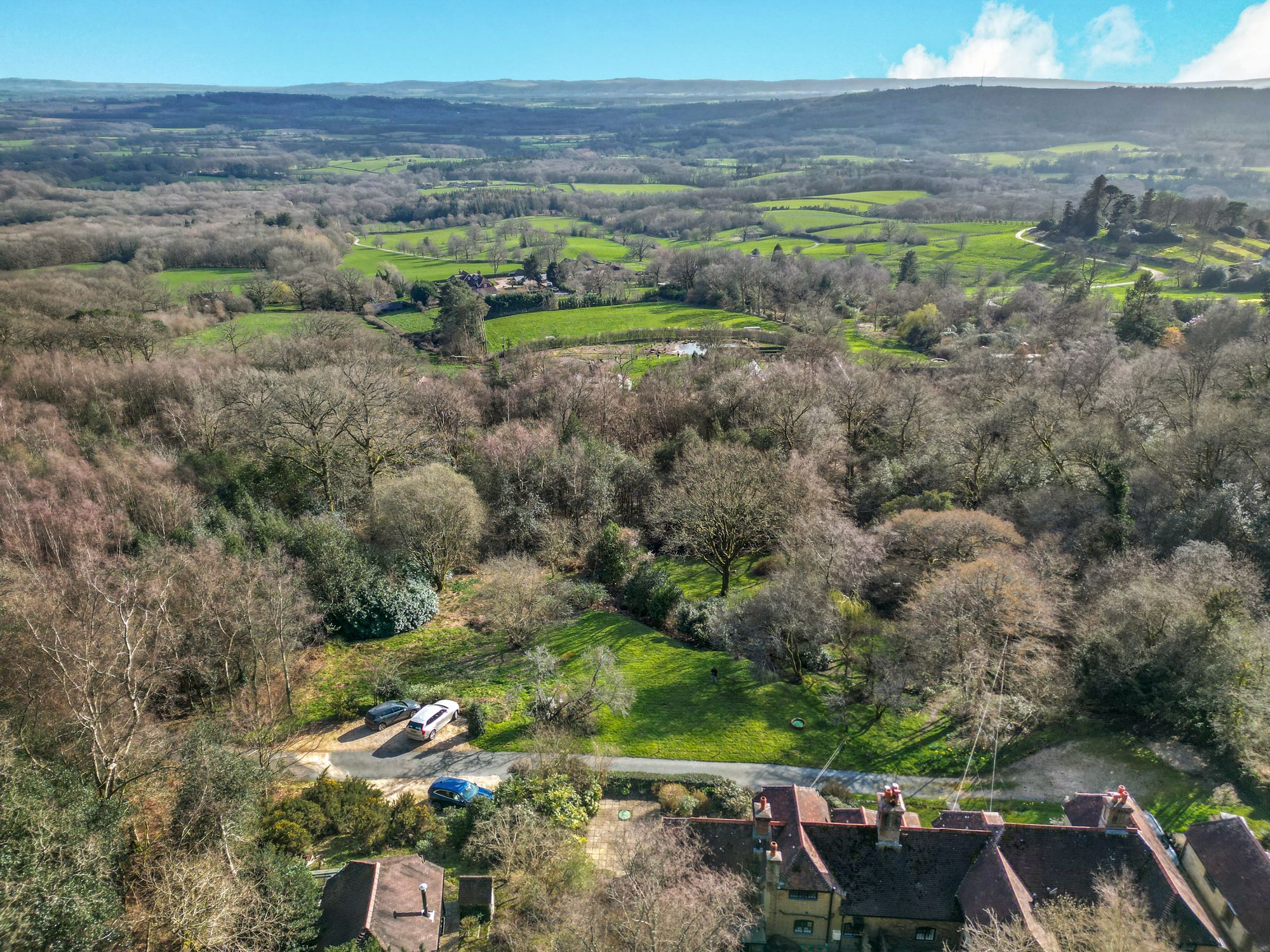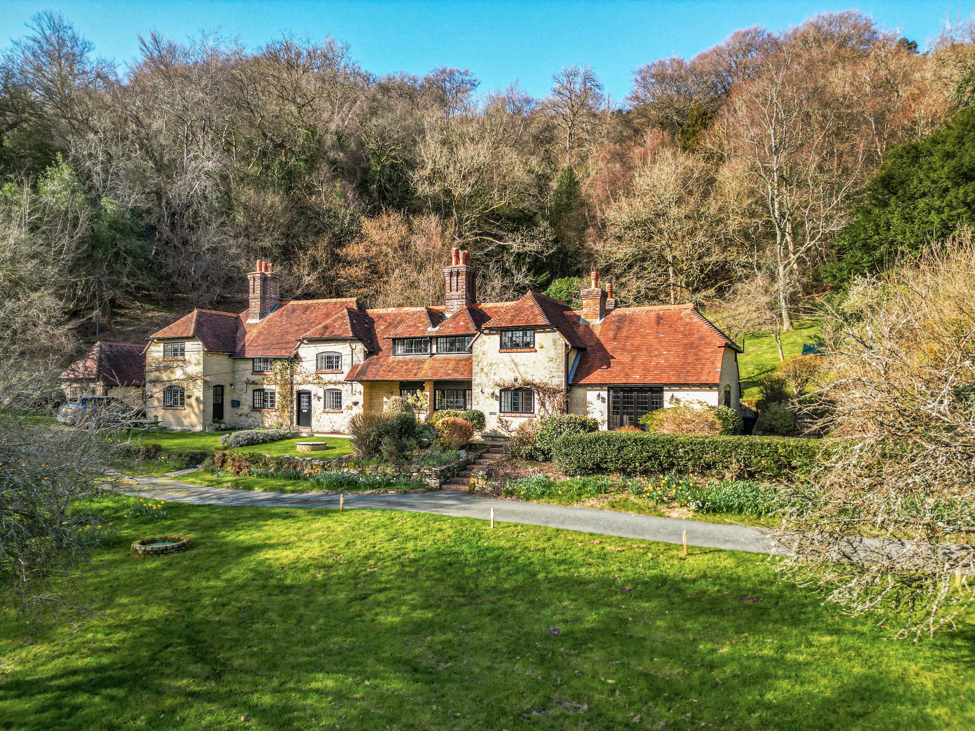 This charming cottage, inspired by the classic Arts and Crafts tradition, exudes warmth and character throughout and enjoys breathtaking, far-reaching views across the South Downs. Nestled on the slopes of Blackdown and surrounded by National Trust woodland, the property offers a rare sense of tranquillity and seclusion while remaining conveniently close to the amenities of Haslemere and the picturesque village of Lurgashall, with its Village Green, 12th Century Church, pub, cricket pavilion and village shop.