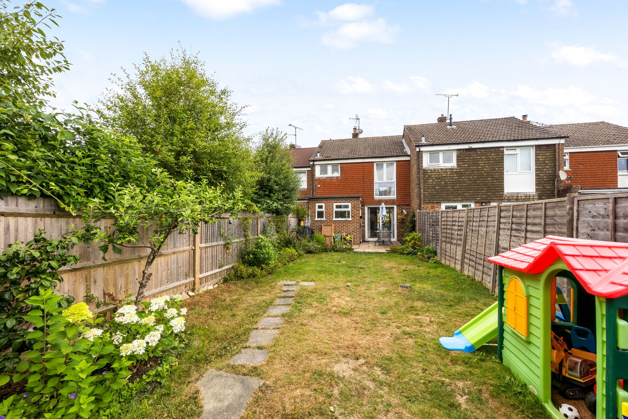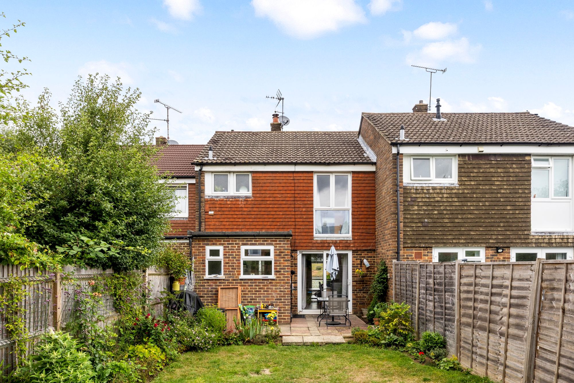 Being offered with no ongoing chain; this delightful three bedroom family home is situated on the East side of Horsham and is located nearby to Heron way school as well as nearby countryside, Horsham town centre and the mainline train station. It has an arrangement of living and bedroom space arranged over two floors as well as a garage within a nearby block. To the ground floor; the reception hallway welcomes you and leads into a double aspect sitting/dining room which has sliding patio doors leading out to the rear garden terrace. There is also a fireplace with an inset log burner and a strip wood floor running through. The separate kitchen has a range of wall and base cabinets with work surfaces running through, there is a selection of integrated appliances including a double oven, gas hob and a stainless steel extractor hood. Also of note to the ground floor is a downstairs cloakroom and a utility room.