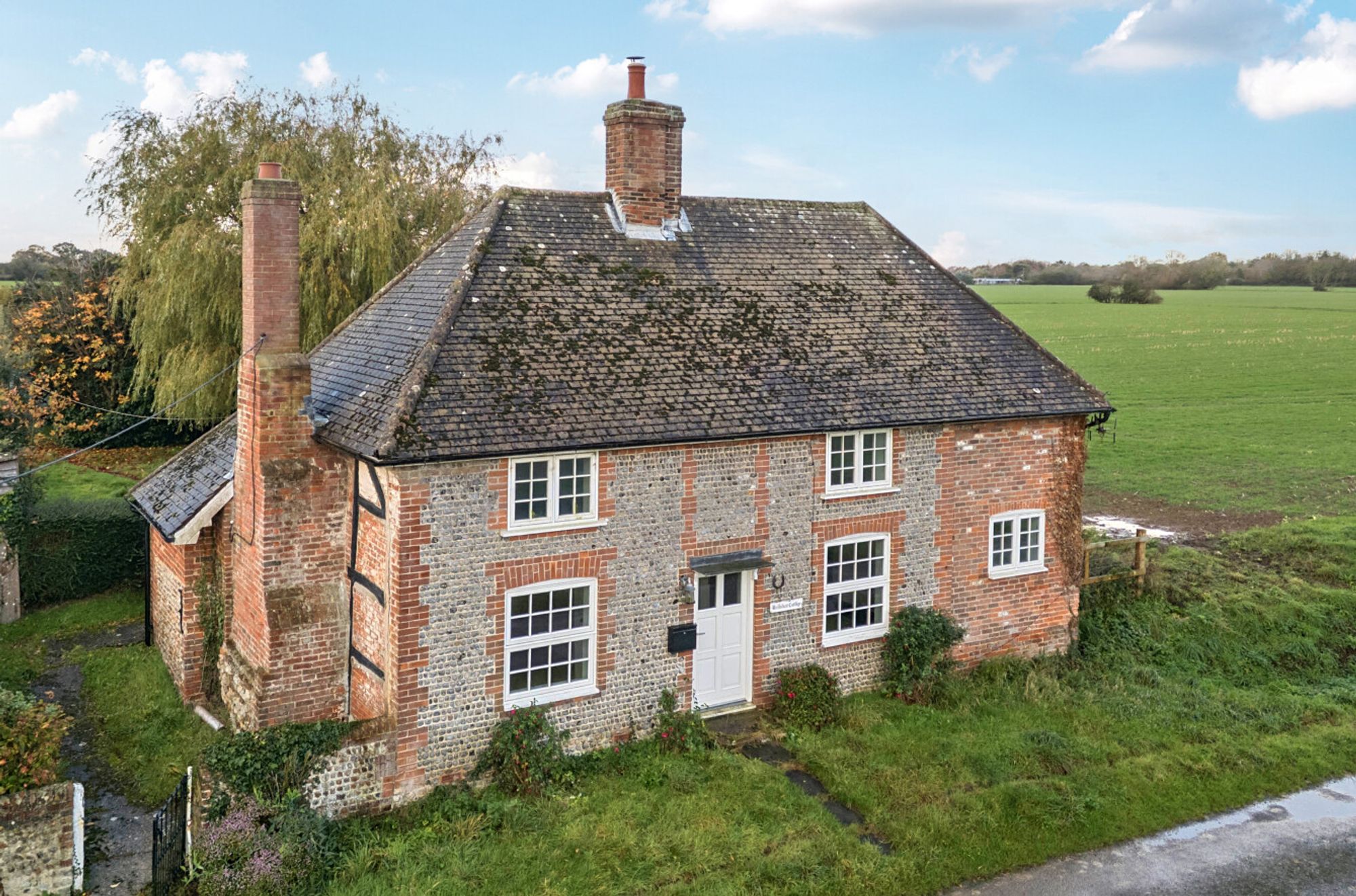 This charming detached character home is set amidst open farmland and enjoys wonderful views of the surrounding countryside. The property features a kitchen with an adjoining utility room, a welcoming sitting room and a separate dining room, along with a ground floor bathroom/WC. Upstairs, there are three bedrooms. Access to one of the bedrooms is through a smaller door opening, adding to the property’s unique character.