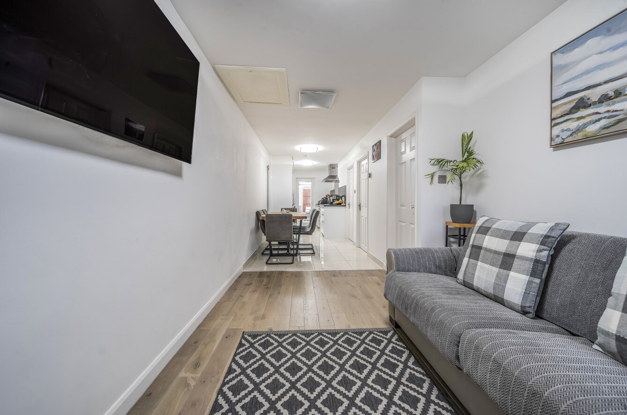 Doors from the reception room open to the two double bedrooms and to the contemporary bathroom.