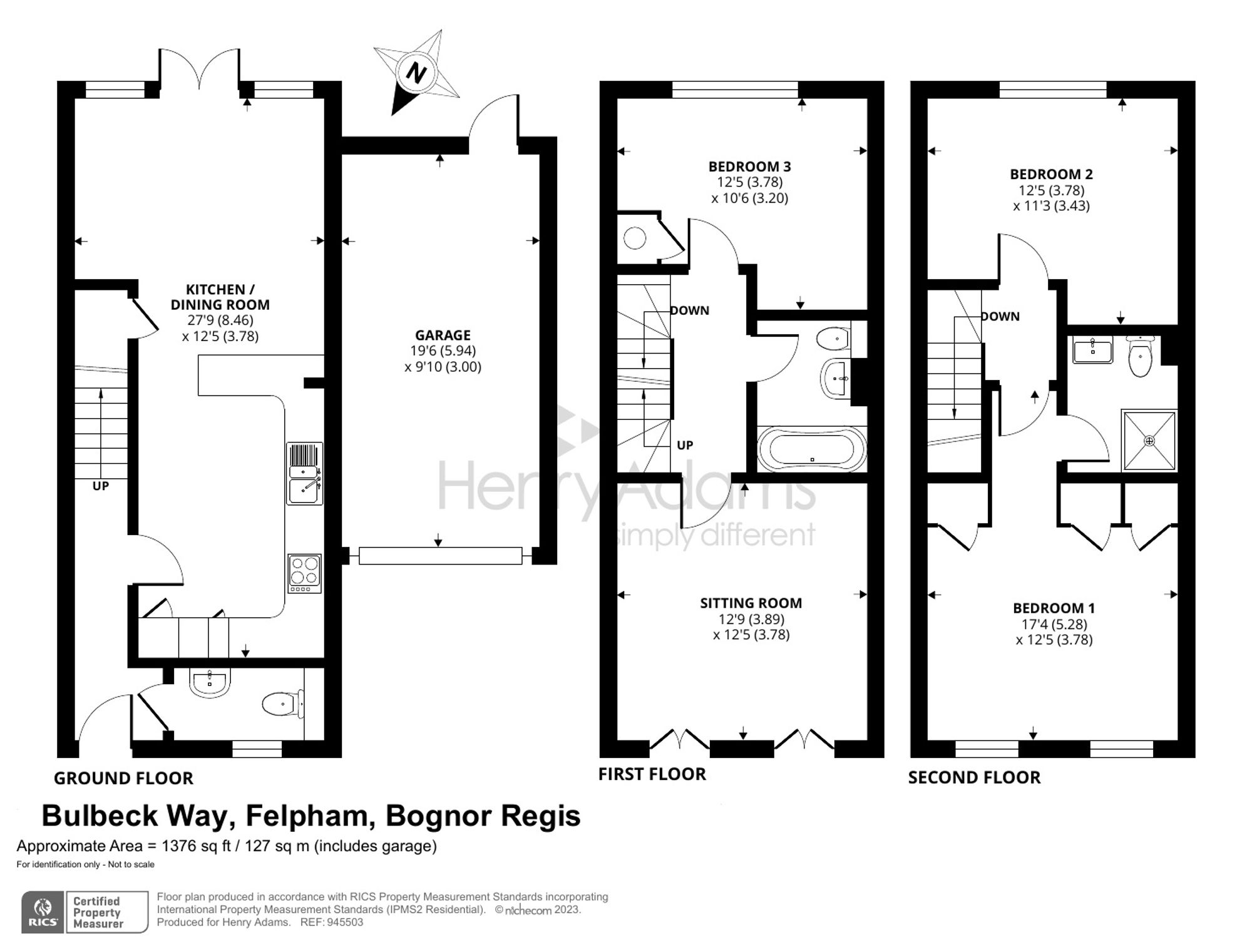 The accommodation measures 1,376 sq ft (including the attached garage), is arranged over three floors and briefly comprises: Ground floor entrance hall with cloakroom which leads to the spacious kitchen/dining/family room to the rear of the property. The kitchen provides ample storage and worktop space with a number of integral appliances including oven, hob, fridge/freezer and dishwasher. This room also has doors leading out to the rear garden beyond.