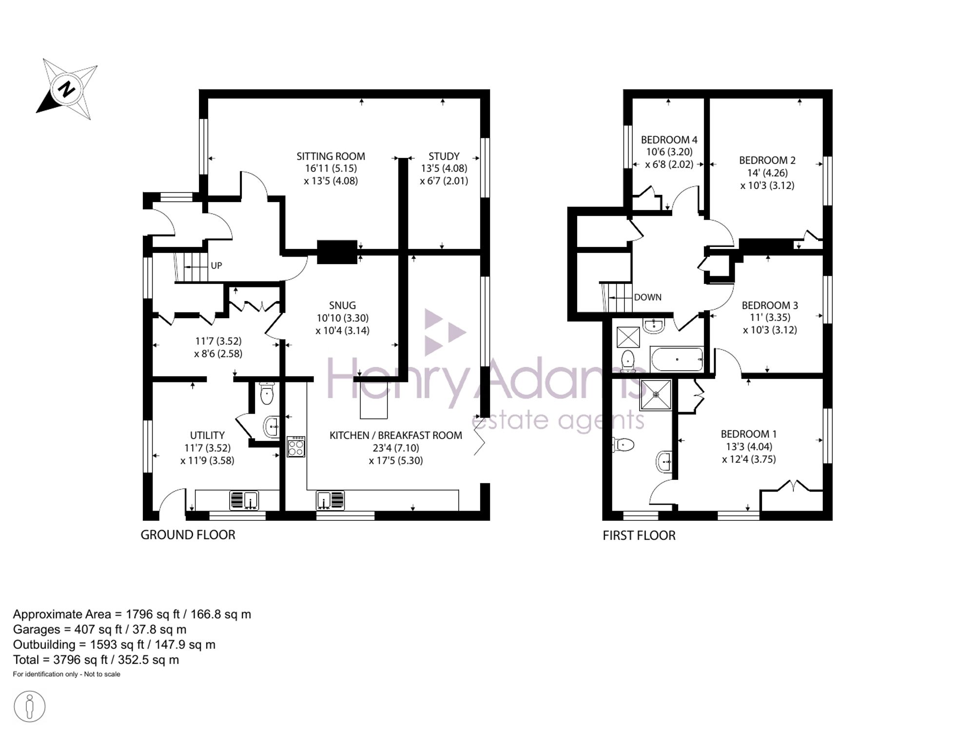The house itself provides adaptable accommodation and ample parking, making it ideal for a growing or extended family. On the ground floor, there is a welcoming snug with wood burner, a characterful sitting room with a second wood burner, a useful study area, and a large utility/boot room. The heart of the home is the modern kitchen, fitted with a range of high and low-level cupboards, range cooker, dishwasher, fridge, and space for a dining table. Bi-fold doors open directly onto the garden, creating a seamless flow between indoor and outdoor living.