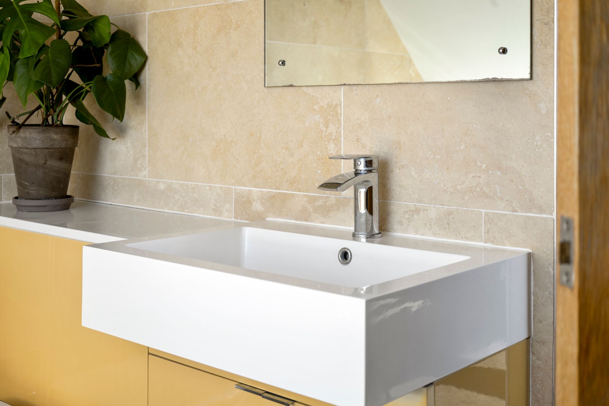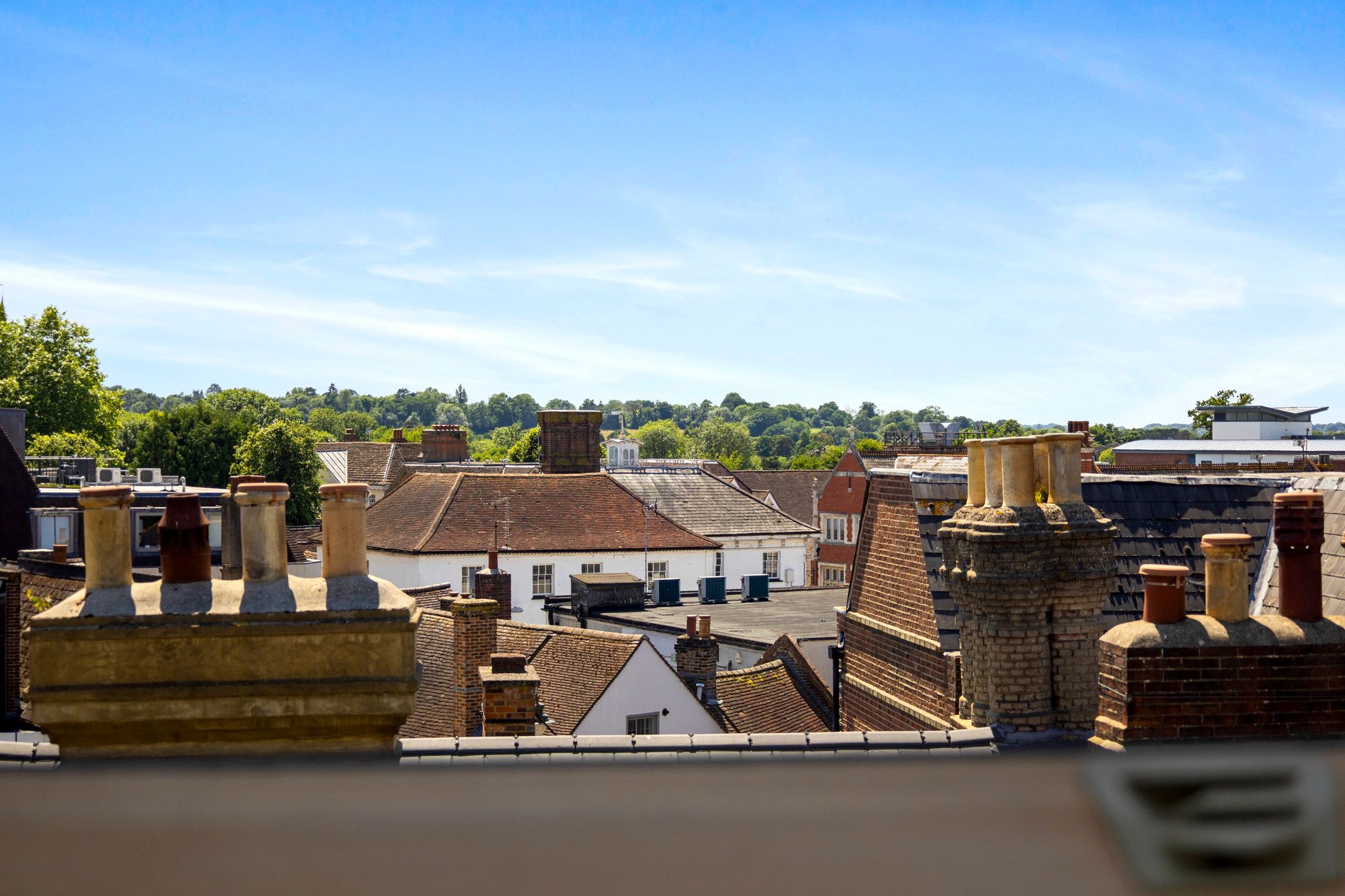 A shallow staircase leads down from the main reception hallway into a very generously proportioned bedroom which has skylight windows and a further aspect overlooking Horsham Carfax, it has a large walk in wardrobe and a well equipped ensuite bathroom with a full suite that includes a walk-in shower, separate bath, a low-level WC and a wash hand basin - all finished to a modern style and complimented with quality chrome fittings.