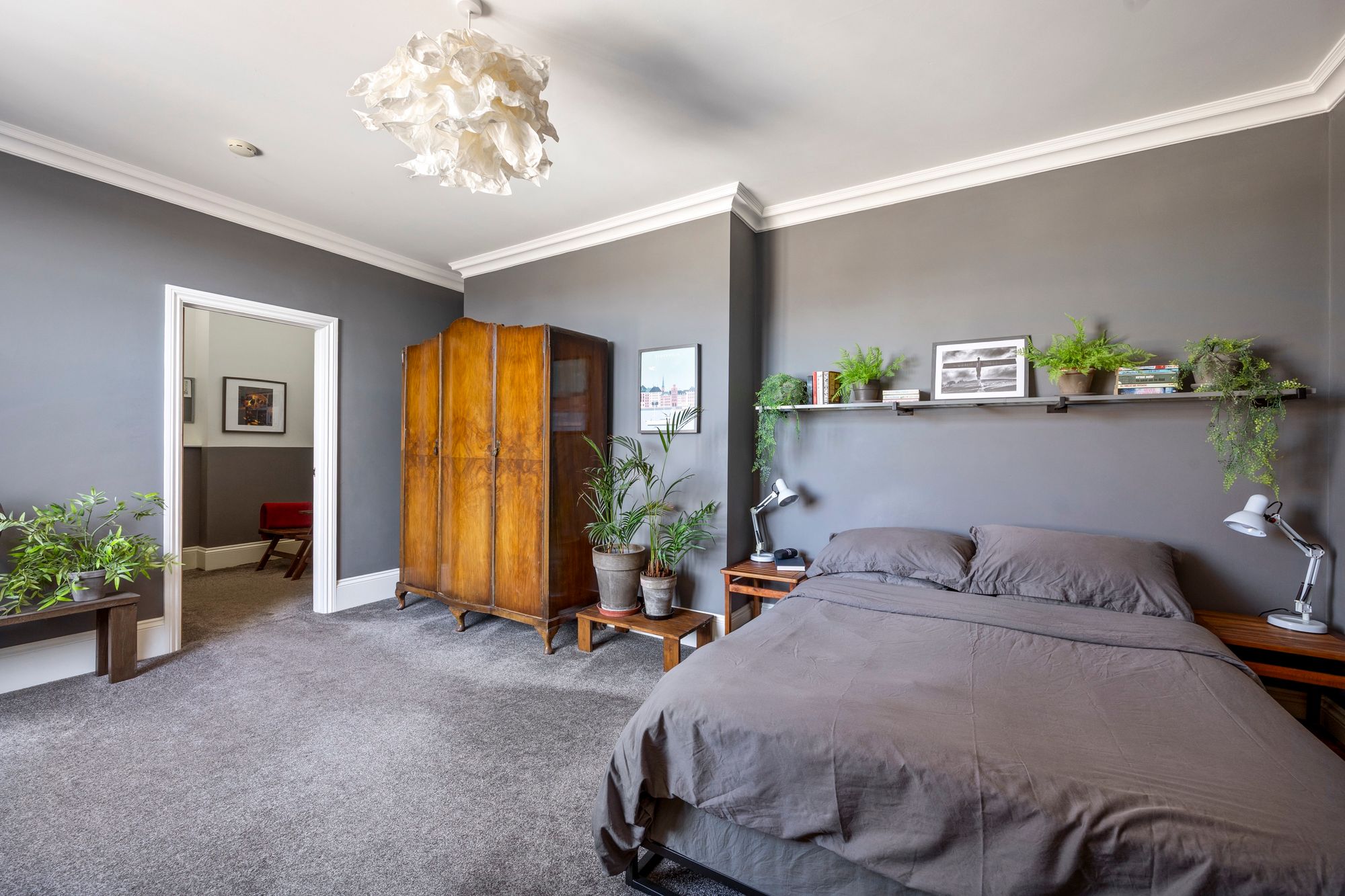 A further bedroom is situated just off of a second shallow staircase and also has generous proportions featuring a walk-through dressing room that leads to an en-suite shower room which also features a stylish, modern, and contemporary suite. Further accommodation continues with a large walk-in storage cupboard and a downstairs cloakroom.