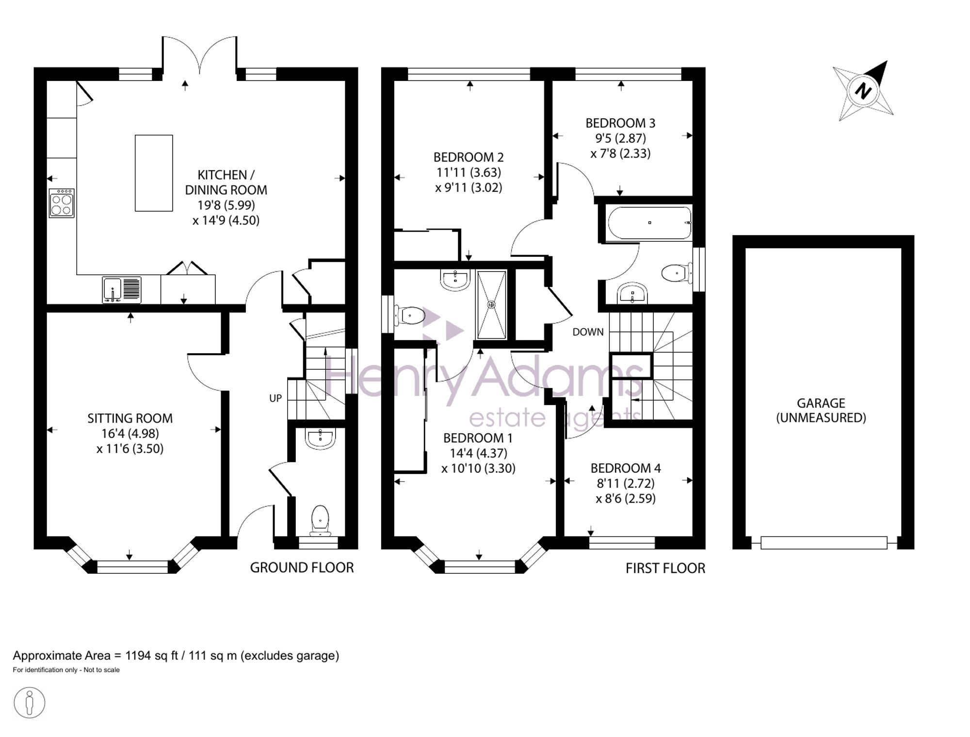 The welcoming sitting room boasts an attractive bay window, while the spacious kitchen/dining room opens directly to the garden, perfect for entertaining or family living. A convenient ground floor cloakroom complements the layout.