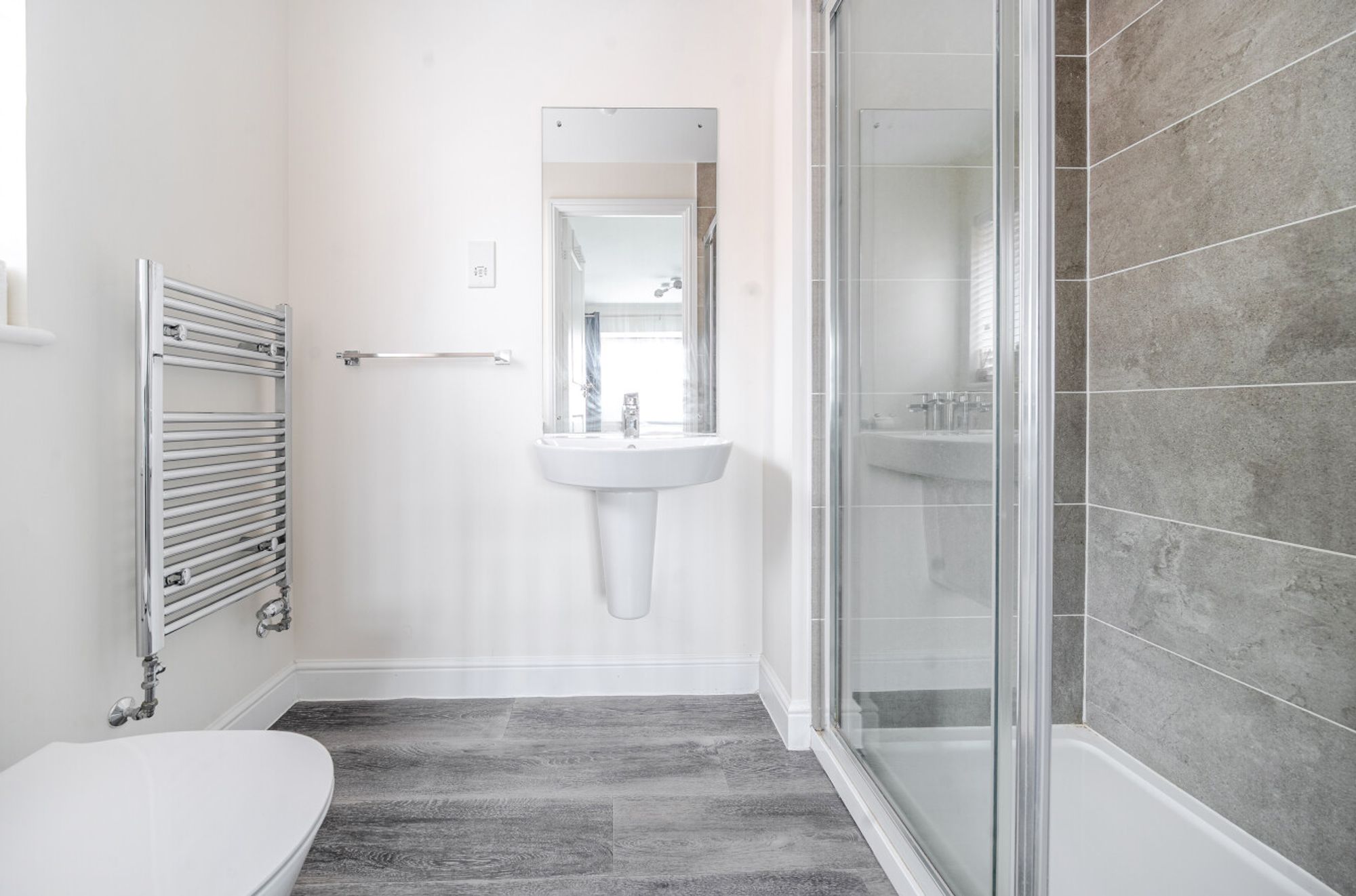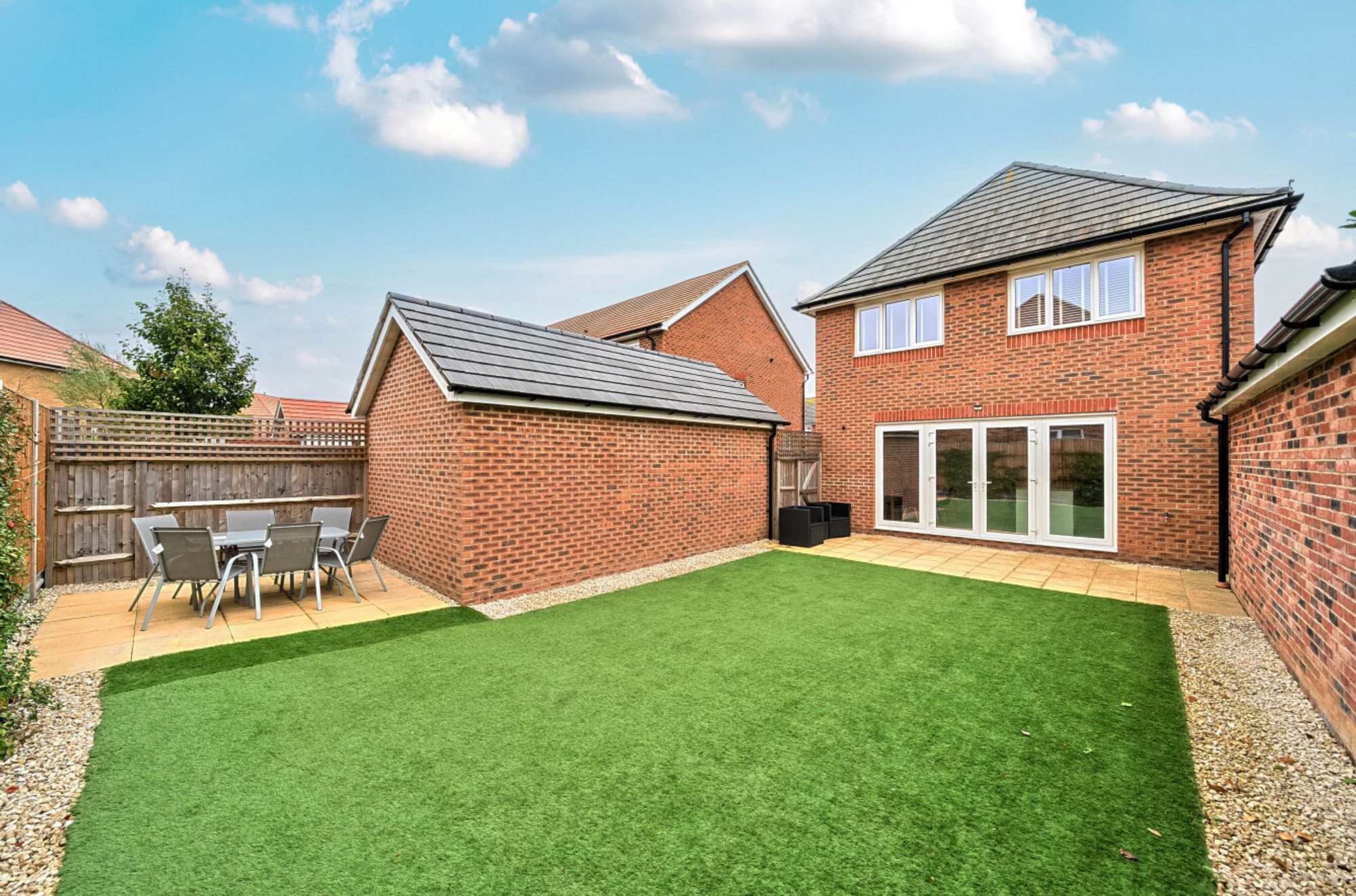 Upstairs, the principal bedroom enjoys its own en suite, alongside three further well-proportioned bedrooms and a sleek modern bathroom.