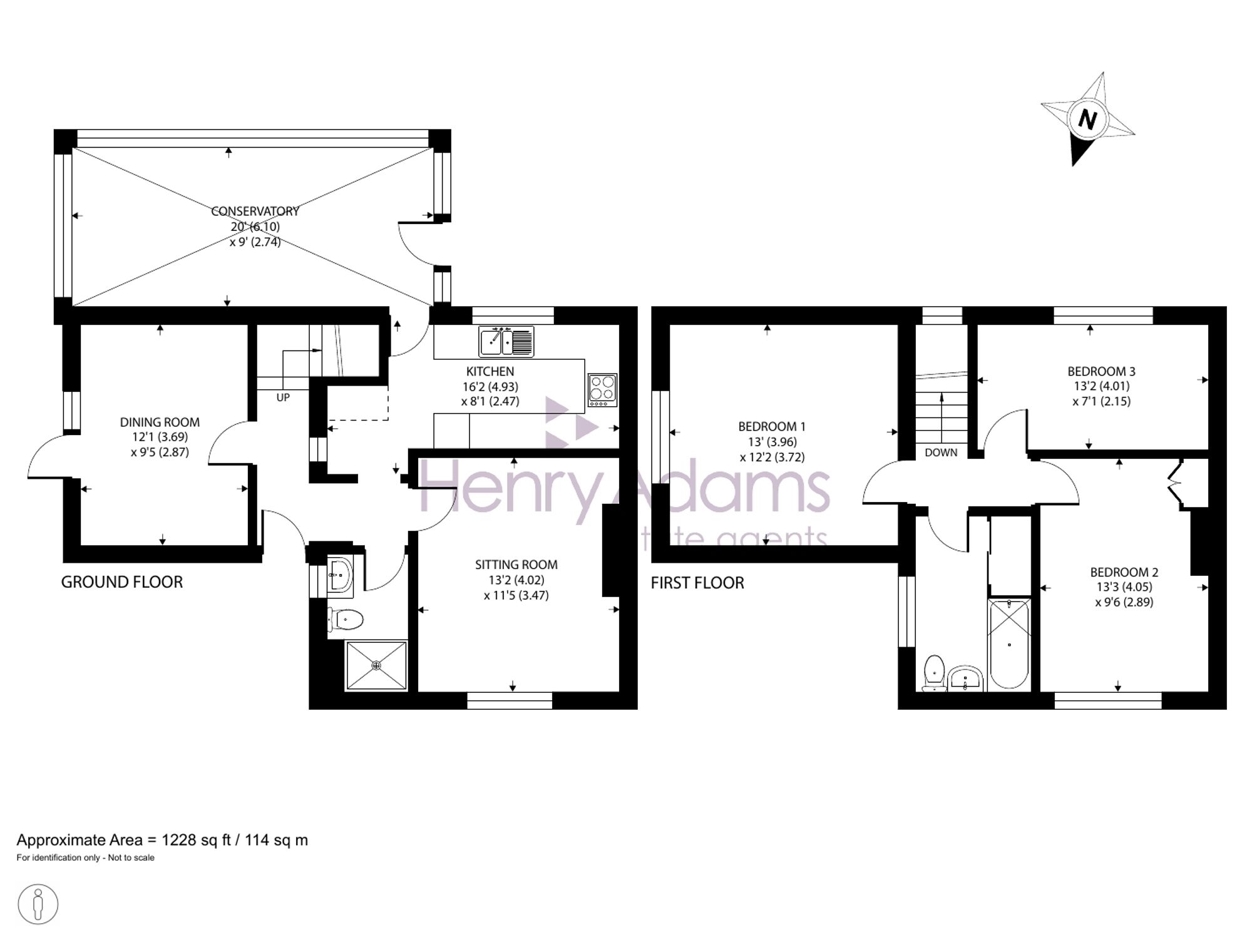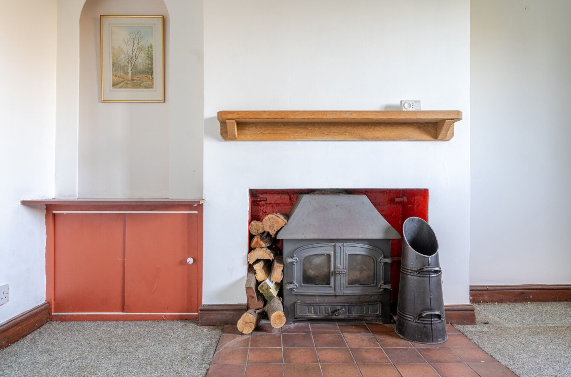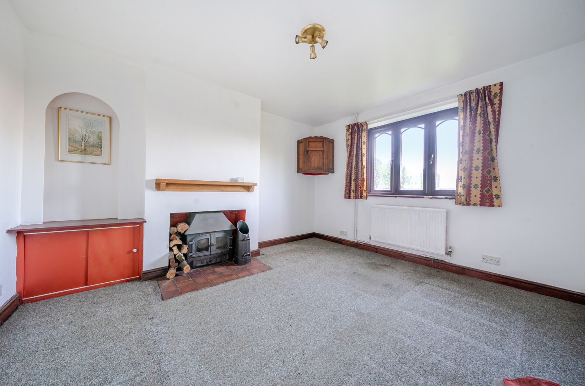 The ground floor includes an entrance hall, kitchen, spacious conservatory and a sitting room featuring a wood-burning stove. A second reception room offers flexibility as a study or ground-floor bedroom, served by a convenient ground-floor shower room. Upstairs, there are three bedrooms and a family bathroom. The house benefits from Calor gas central heating via radiators.