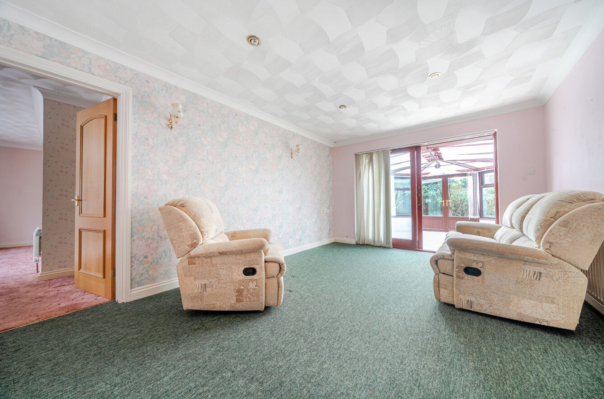 Nestled within a tranquil cul-de-sac, this property stands out as one of only five detached bungalows boasting a serene setting. Capturing the essence of added space by comparison of others within the road, this abode sits proudly as the largest of the quintet, offering a harmonious blend of cosy intimacy and space. The living room is seamlessly connected to a southerly facing conservatory, creating a haven for relaxation. Housing three bedrooms, one of which features a convenient en-suite shower room, this home effortlessly caters to your comfort needs. Unveiling a private southerly facing garden, this outdoor sanctuary invites you to bask in the sunlight while relishing peaceful moments amidst nature's embrace. Completing the ensemble is a block paved driveway for approx. 2 cars. For added convenience the home benefits from a garage ( located as 1 of a pair almost opposite the bungalow. While a touch of modernisation might enhance its allure, the potential this residence offers promises a canvas for your creativity and personal touch.