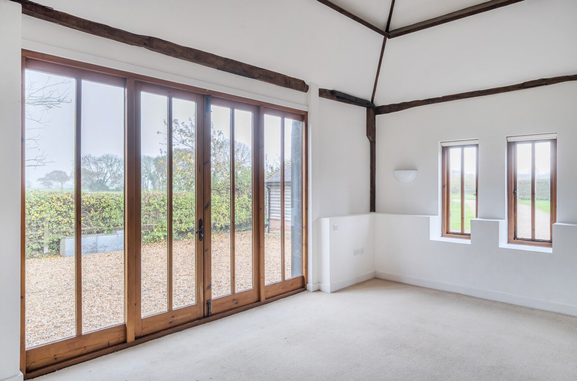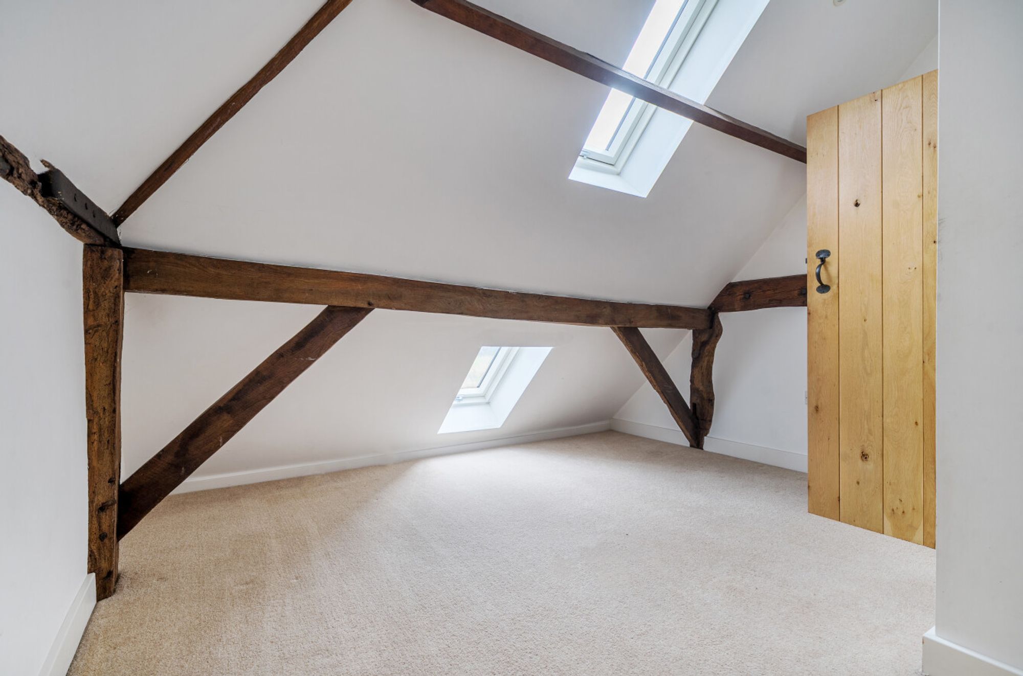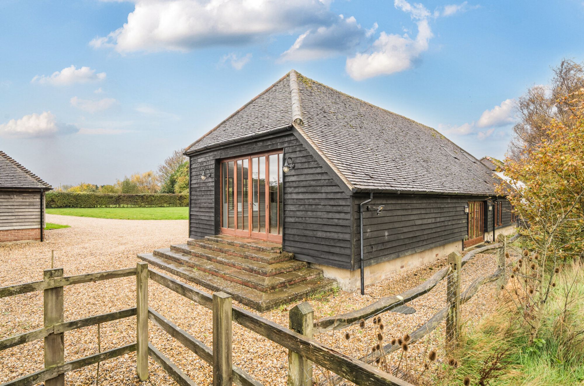 Nestled in a delightful semi-rural setting, this charming barn conversion of a former granary seamlessly blends character and contemporary living. Boasting exposed beams and other period features, the property offers a versatile layout including a kitchen and utility room, a split-level, dual-aspect sitting and dining area and a ground-floor bedroom with ensuite, complemented by a further ground-floor bedroom. An attractive mezzanine adds charm and character, while the first-floor bedroom enjoys restricted-access dressing space and its own en-suite.