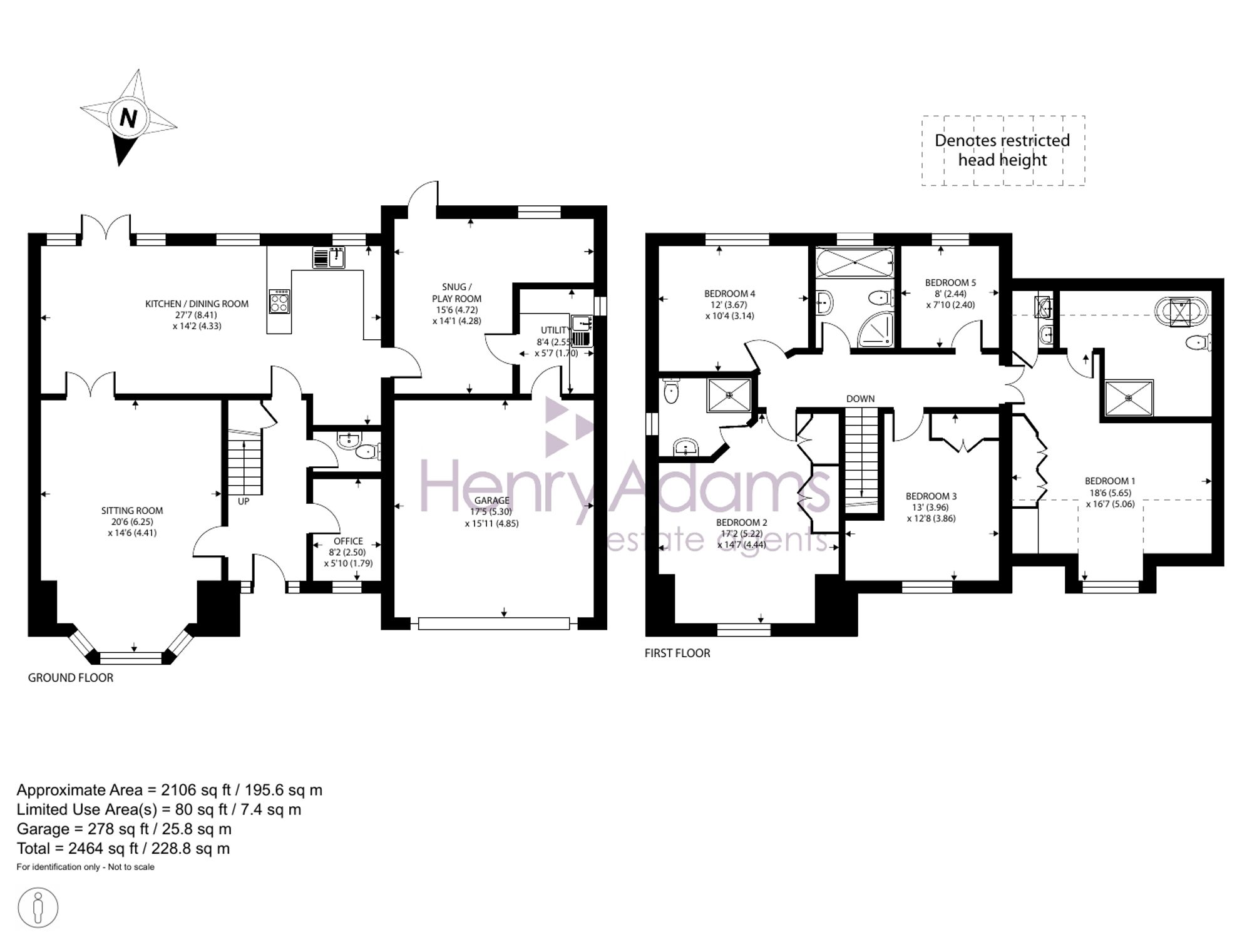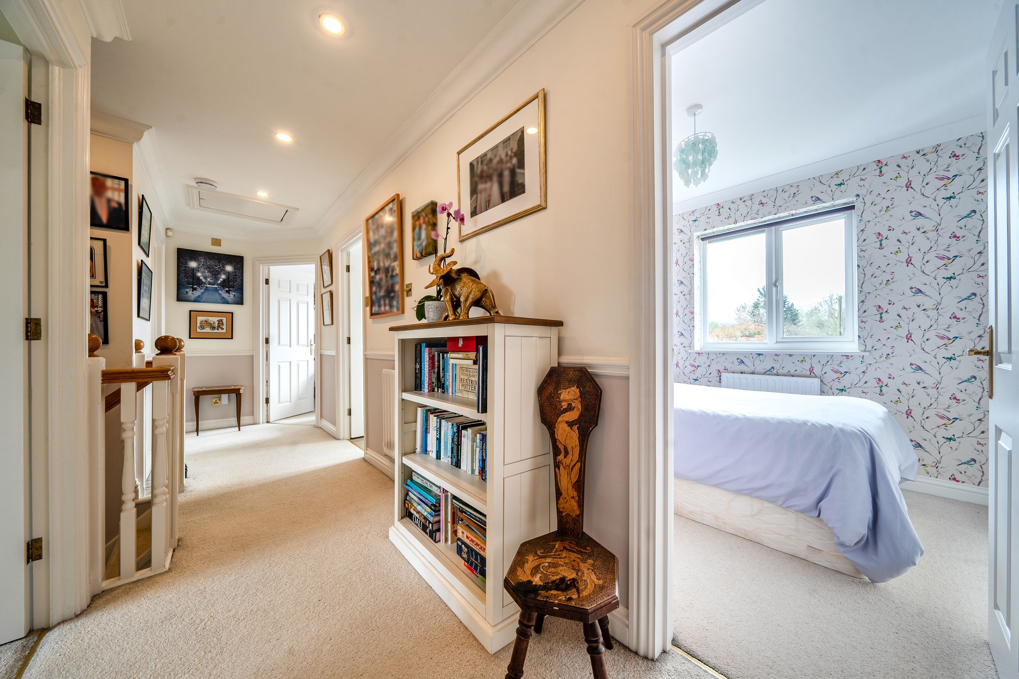 Upstairs, the large principal bedroom benefits from a range of fitted wardrobes and a stylish en-suite bathroom, providing a luxurious retreat. The second bedroom also features fitted wardrobes and its own en-suite shower room, making it ideal for guests or older children. Three further well proportioned bedrooms offer flexibility for family, guests or hobbies, and are served by a modern family bathroom.