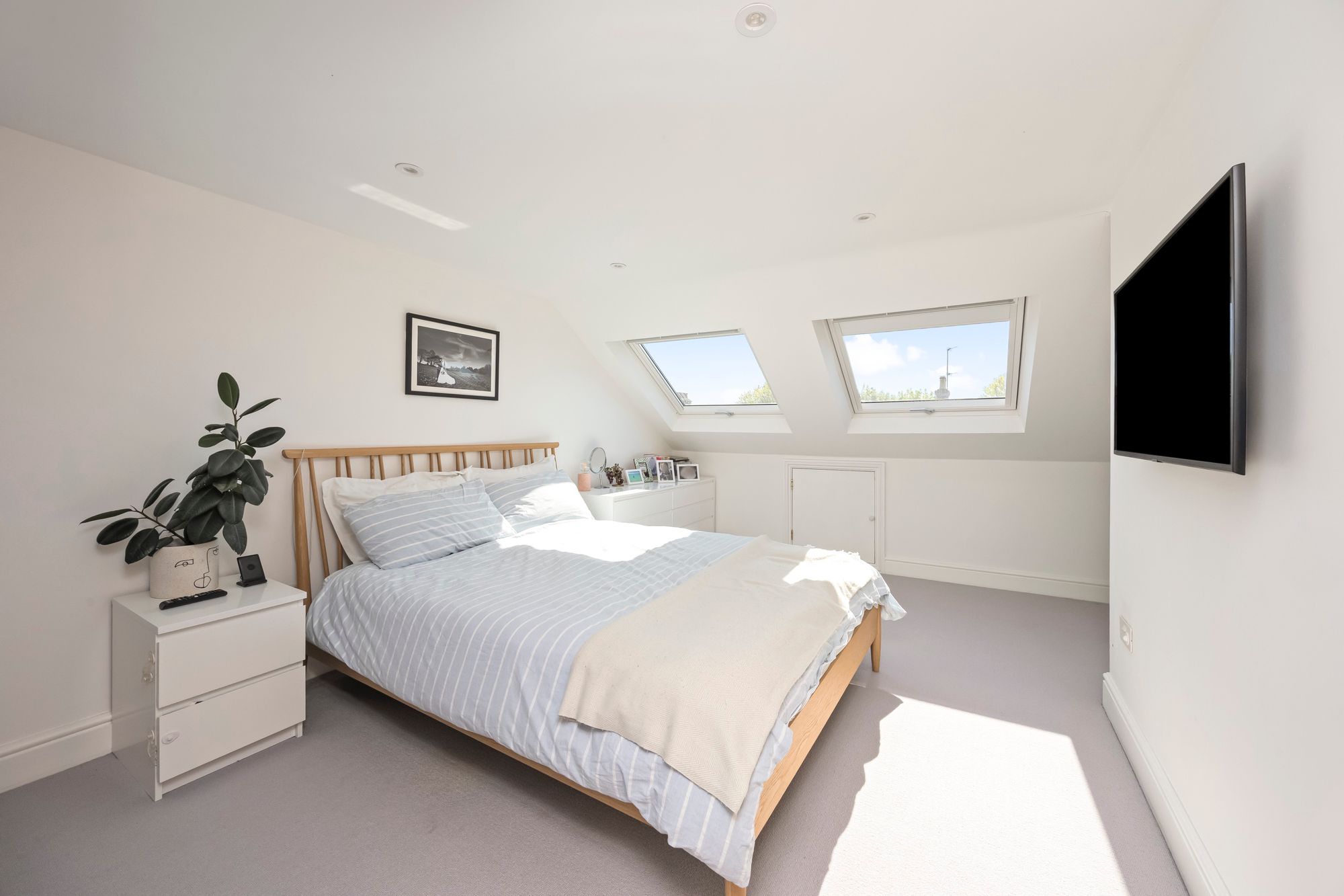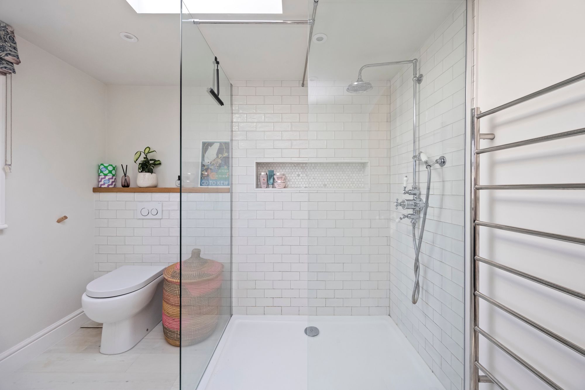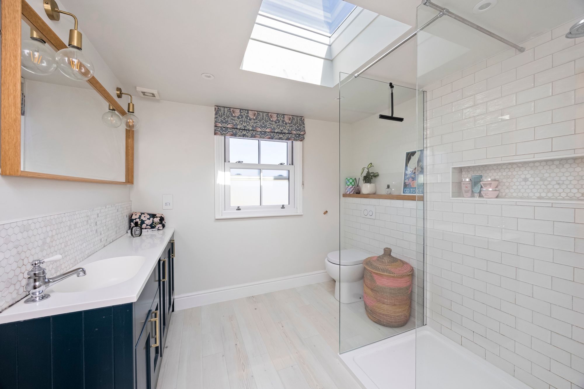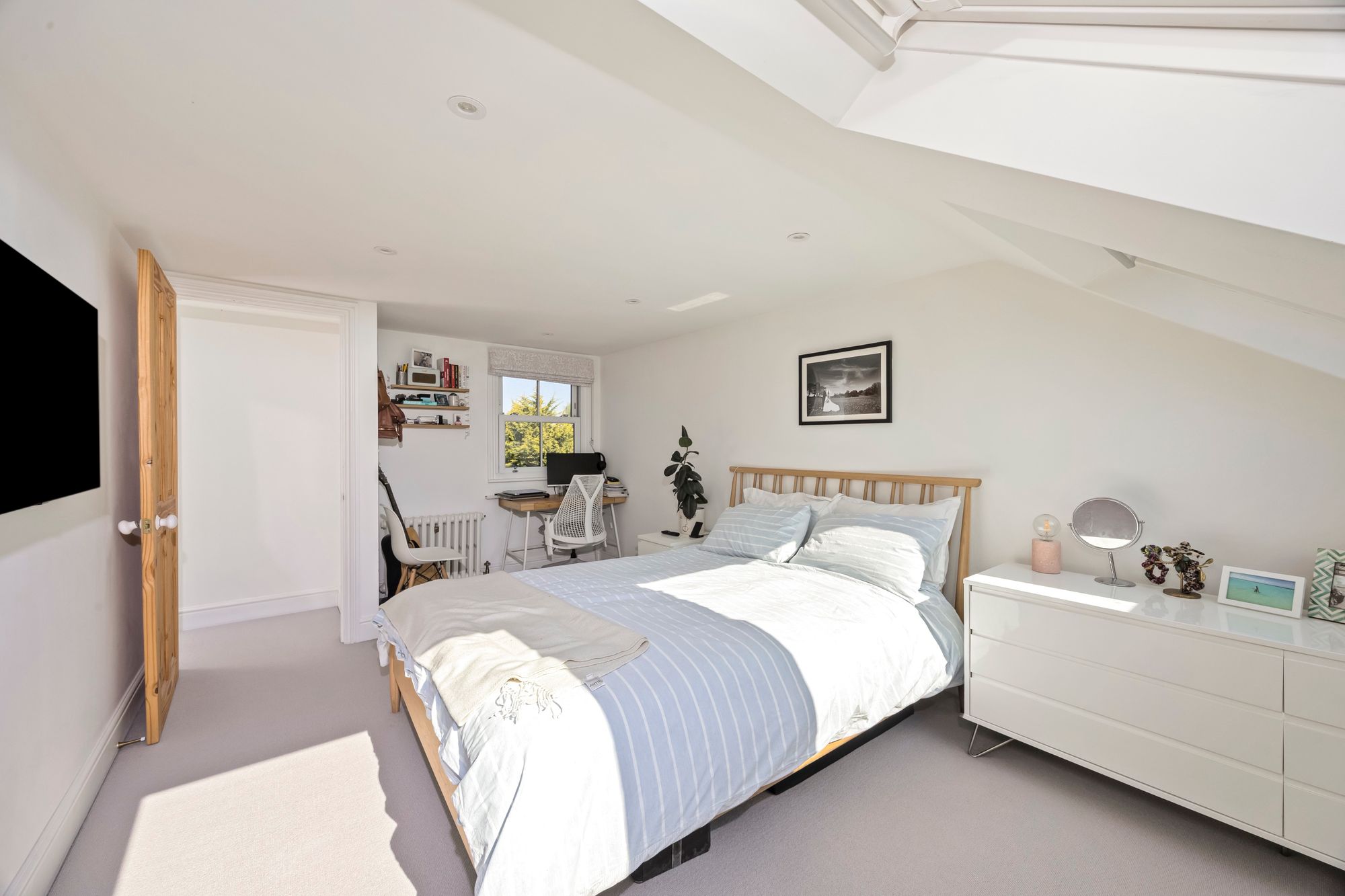 The accommodation is arranged over three floors, with three good sized sized bedrooms and a well-appointed family bathroom with underfloor heating and heated towel rail, located on the first floor. The second floor hosts an additional bedroom, complemented by a walk-in shower room which also has underfloor heating/ heated towel rail offering an ideal space for guests, a principal suite, or a private home office included on the second floor is a spacious walk in storage area.
