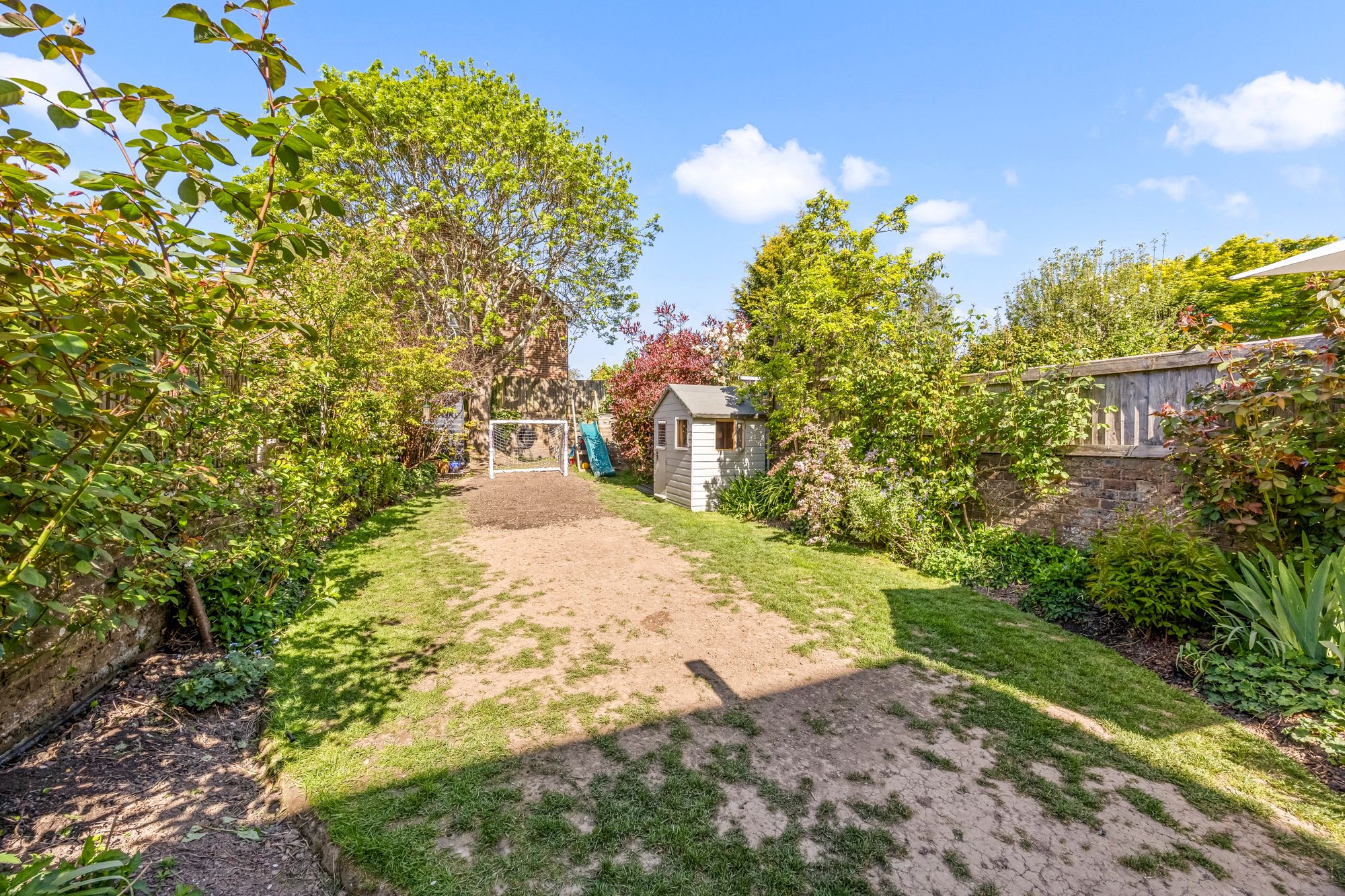 Outside, the property continues to impress. The beautifully maintained walled rear garden offers a peaceful and private retreat, with mature planting, well-stocked borders, and a generous patio area—ideal for al fresco dining or entertaining, also included is a large shed for storage. There is plenty of space for children to play or for keen gardeners to enjoy year-round interest.