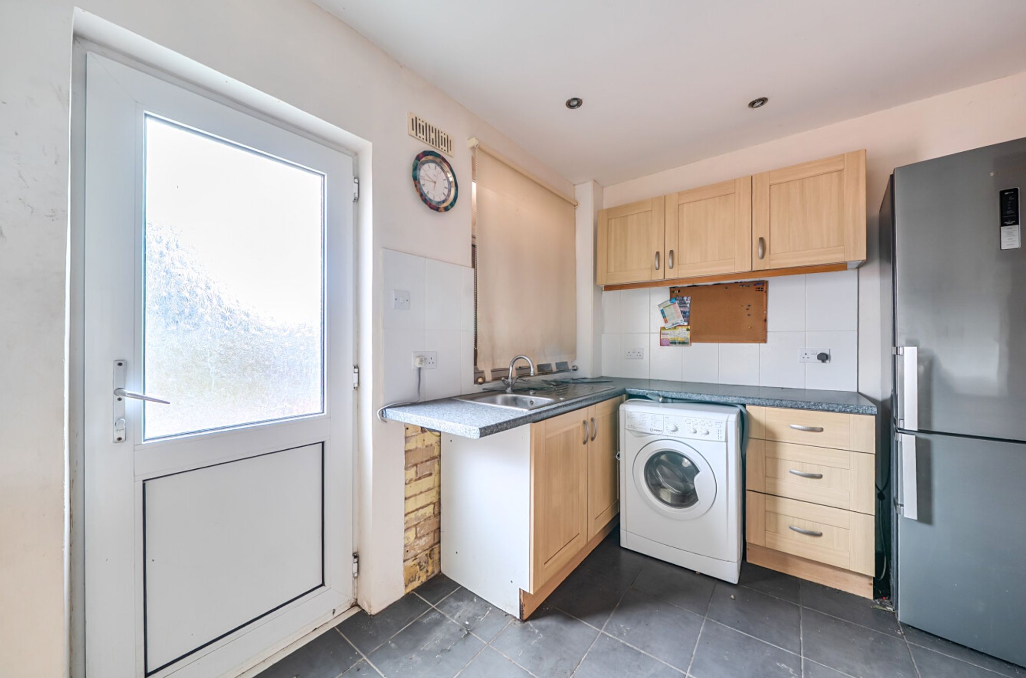 The front door to the building is at the side of the house and opens onto a hallway with stairs to the upper floor and doors to the reception room and family bathroom. The spacious reception has two large windows to the front of the house and a door to the kitchen. The kitchen is a good size and has a further door leading to the rear garden mostly laid to lawn.