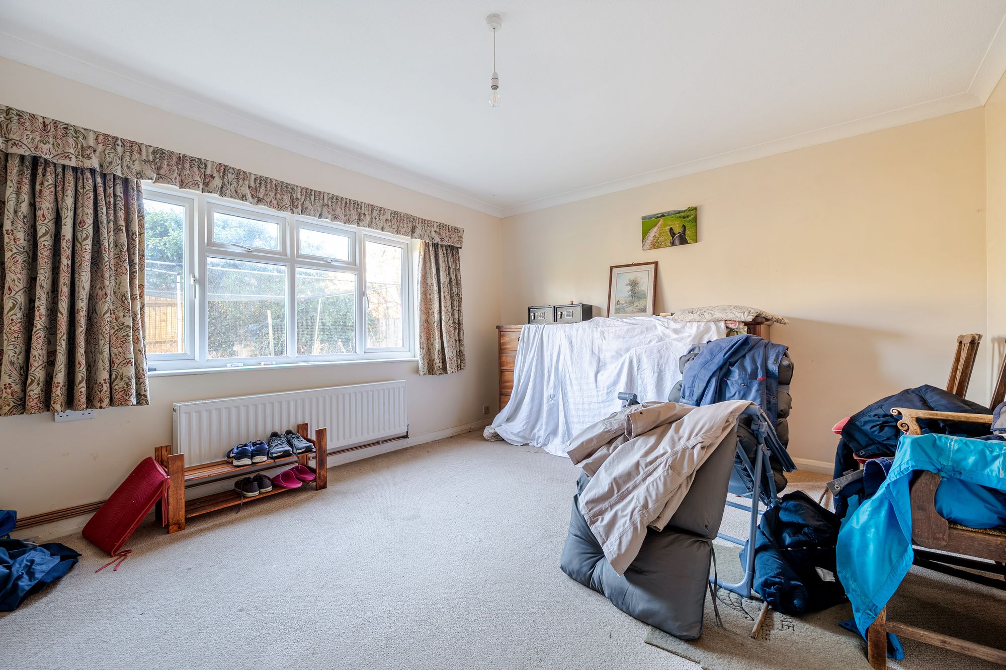 The property features two generous reception rooms, both flooded with natural light from large windows. The living room benefits from a brick fireplace, providing a cosy focal point, while the additional reception room offers versatility as a dining room, family room or additional bedroom. The open plan kitchen and breakfast room has patio doors opening to the garden. Completing the ground floor is a useful cloakroom.