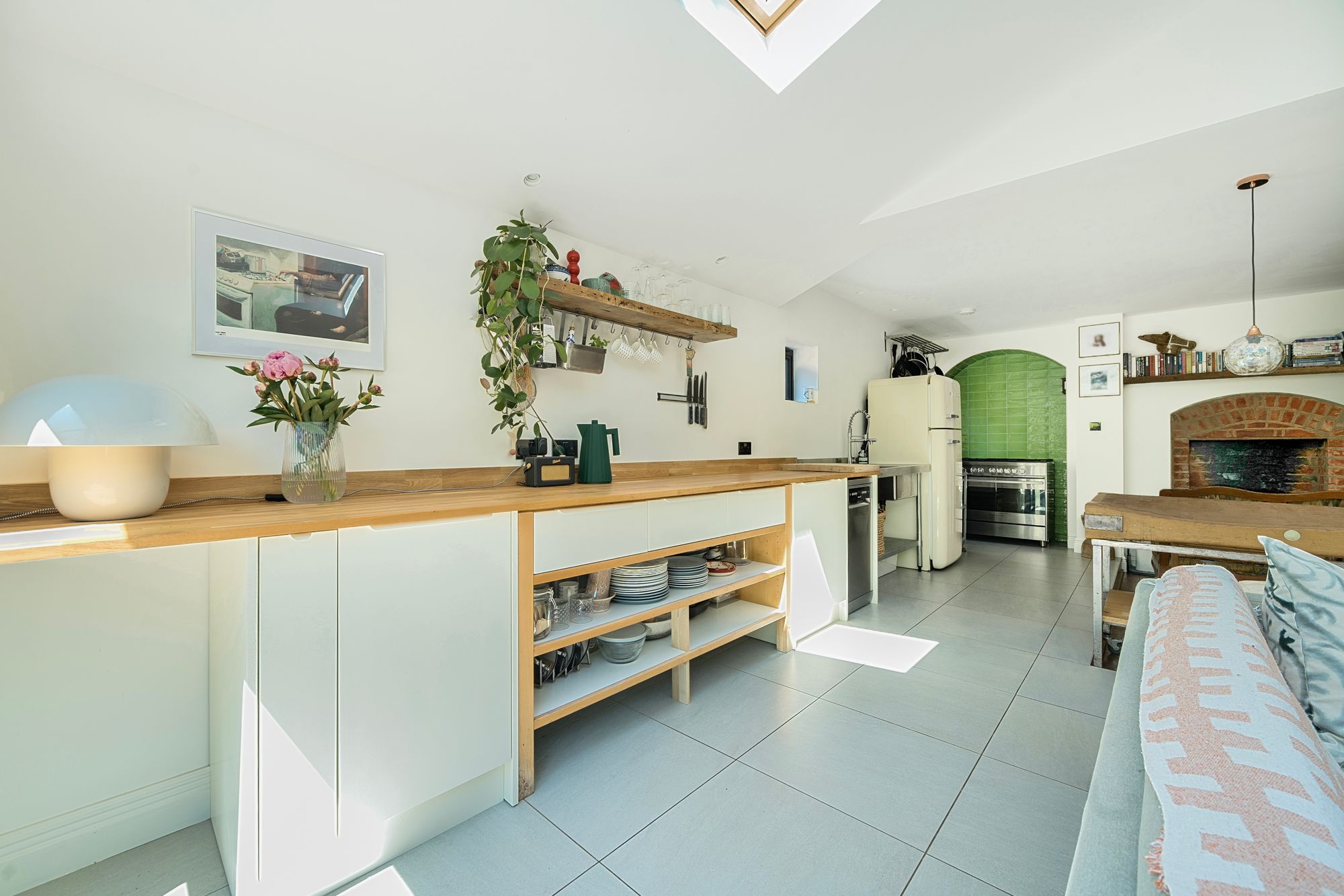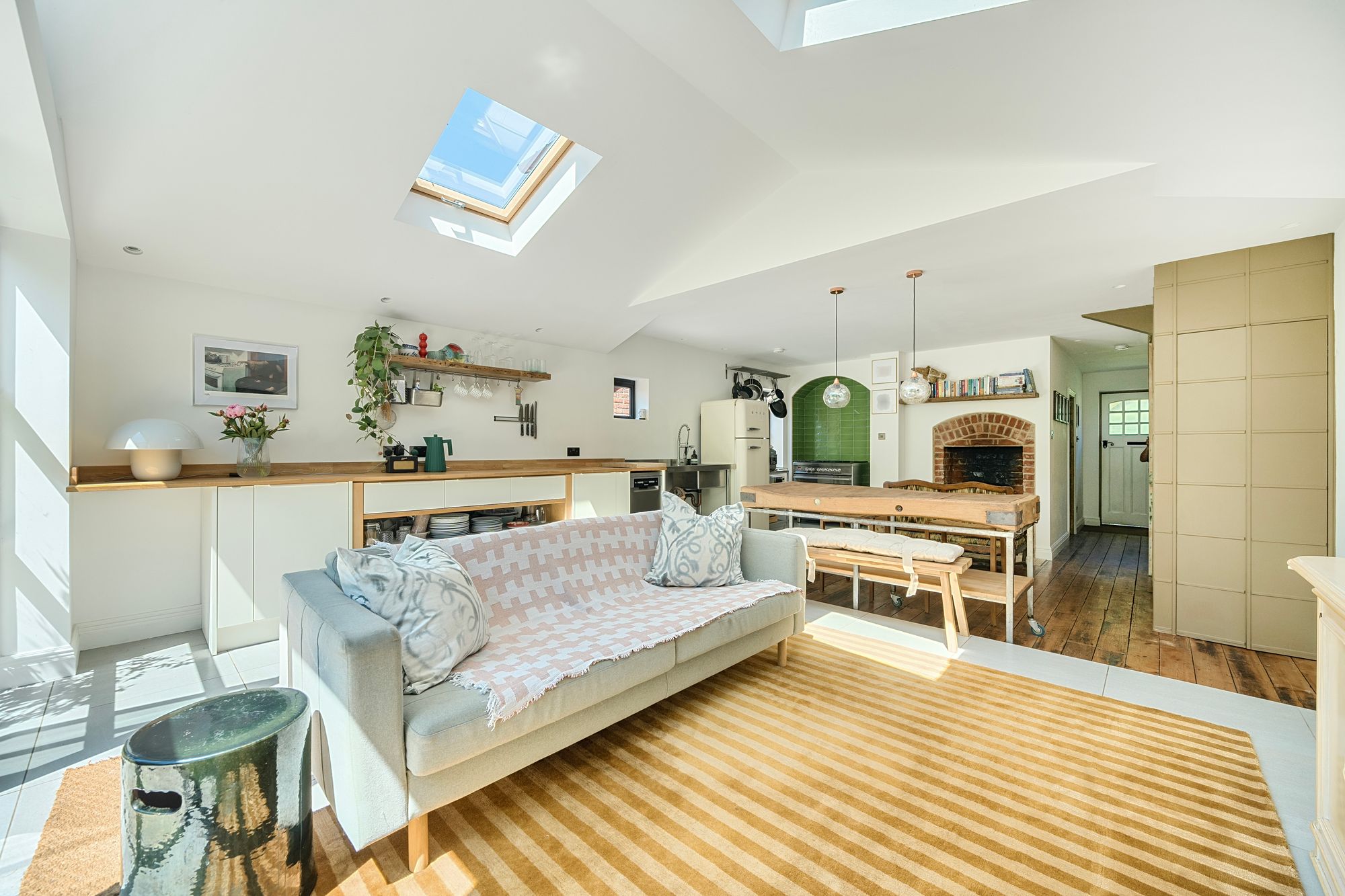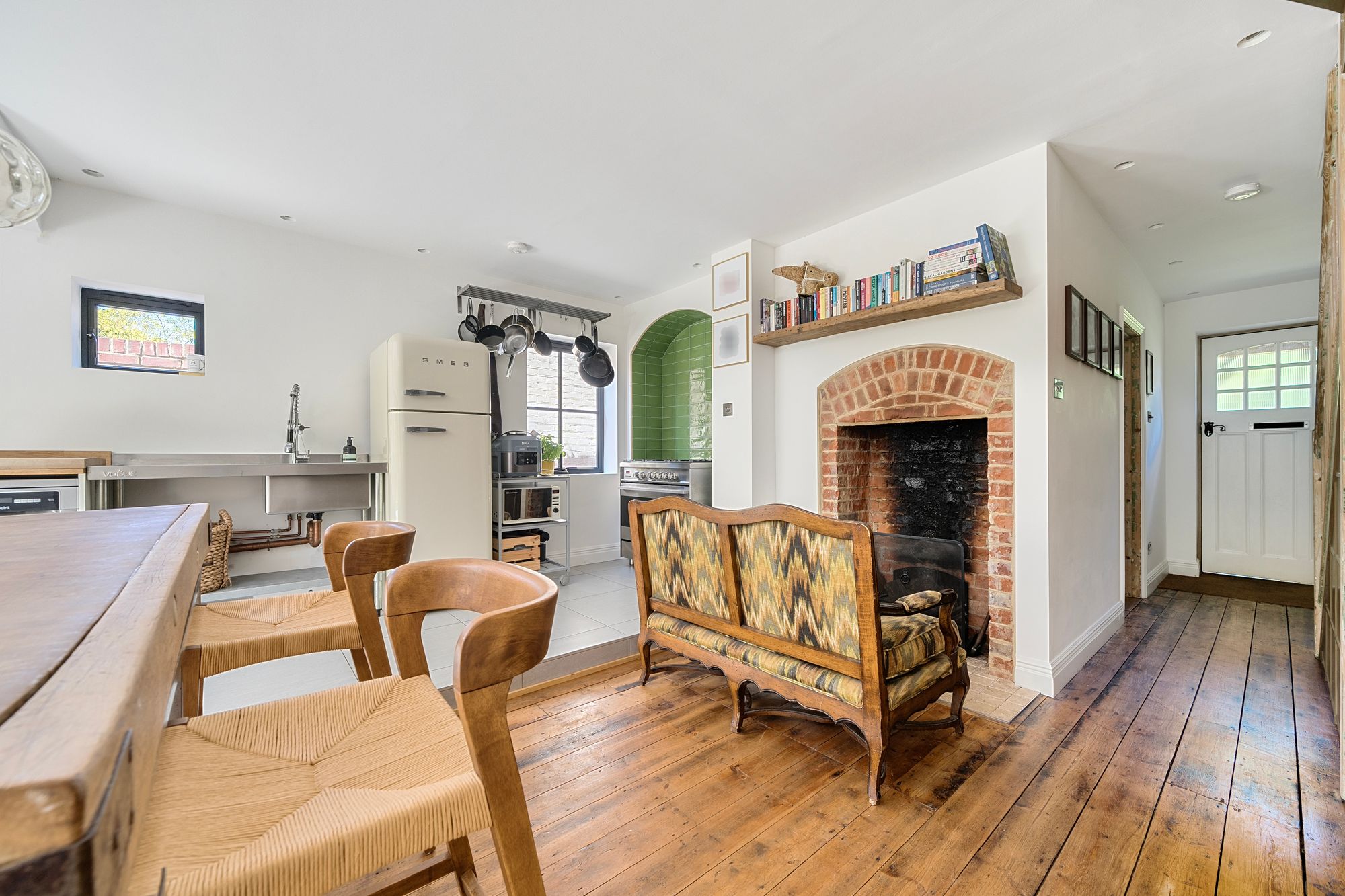The accommodation provides excellent family living space. A beautiful new oak porch and new front door open into the entrance hall leading on to a fantastic open plan kitchen / breakfast room / snug with stunning French doors giving access to the thoughtfully designed courtyard garden. This room truly is the hub of the home, cleverly combining character features, like the open brick fireplace and wooden floors, with modern conveniences, such as underfloor heating and concealed storage/utility space. A separate living room with attractive marble surround fireplace and front aspect window looks out onto the mature enclosed front garden. A convenient downstairs cloakroom completes the ground floor living accommodation.