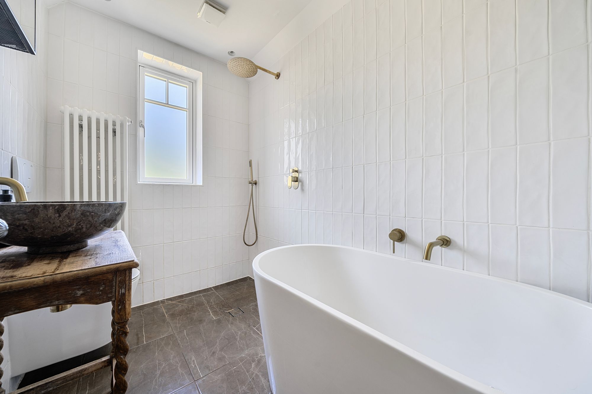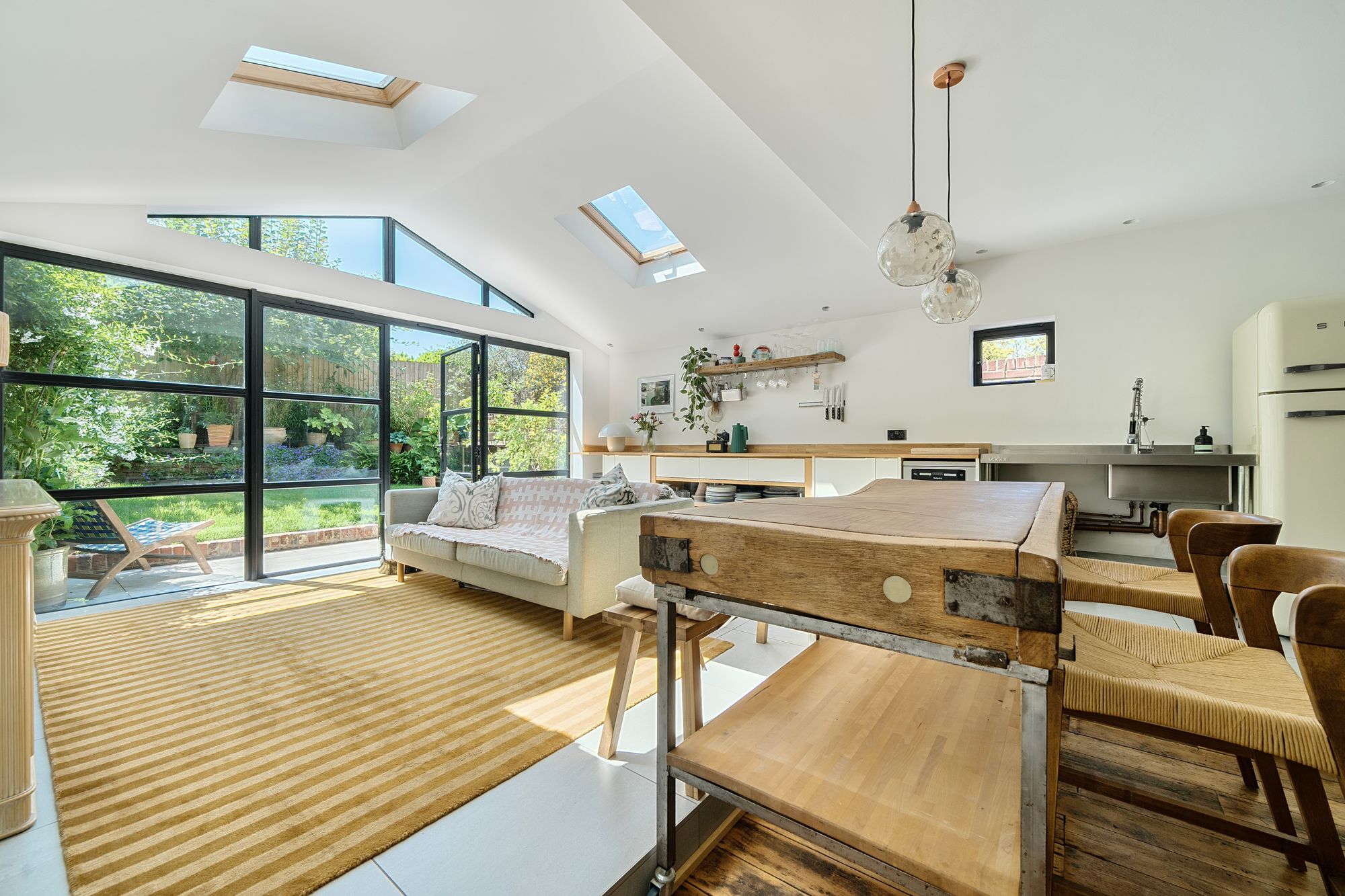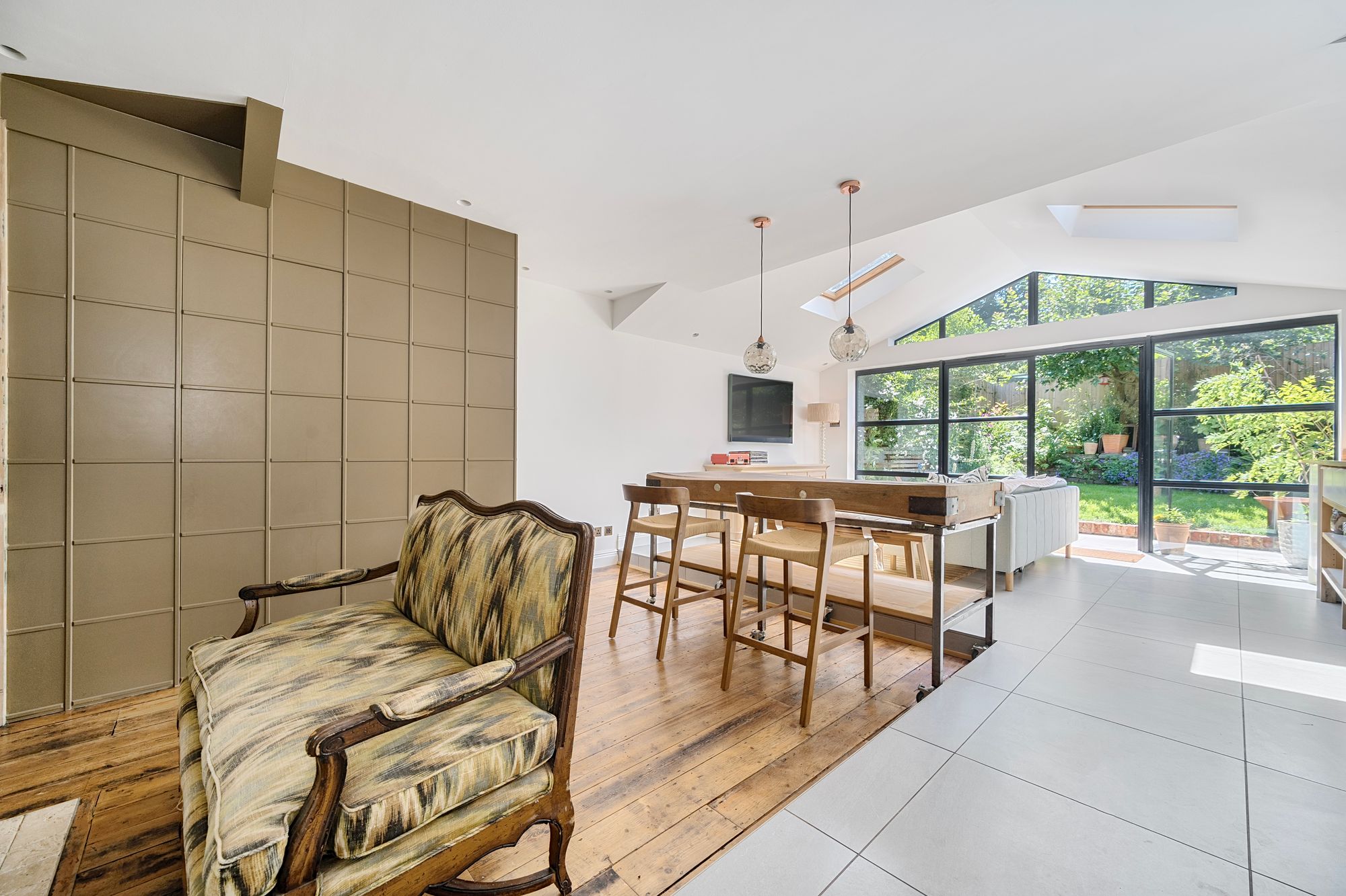The accommodation provides excellent family living space. A beautiful new oak porch and new front door open into the entrance hall leading on to a fantastic open plan kitchen / breakfast room / snug with stunning French doors giving access to the thoughtfully designed courtyard garden. This room truly is the hub of the home, cleverly combining character features, like the open brick fireplace and wooden floors, with modern conveniences, such as underfloor heating and concealed storage/utility space. A separate living room with attractive marble surround fireplace and front aspect window looks out onto the mature enclosed front garden. A convenient downstairs cloakroom completes the ground floor living accommodation.