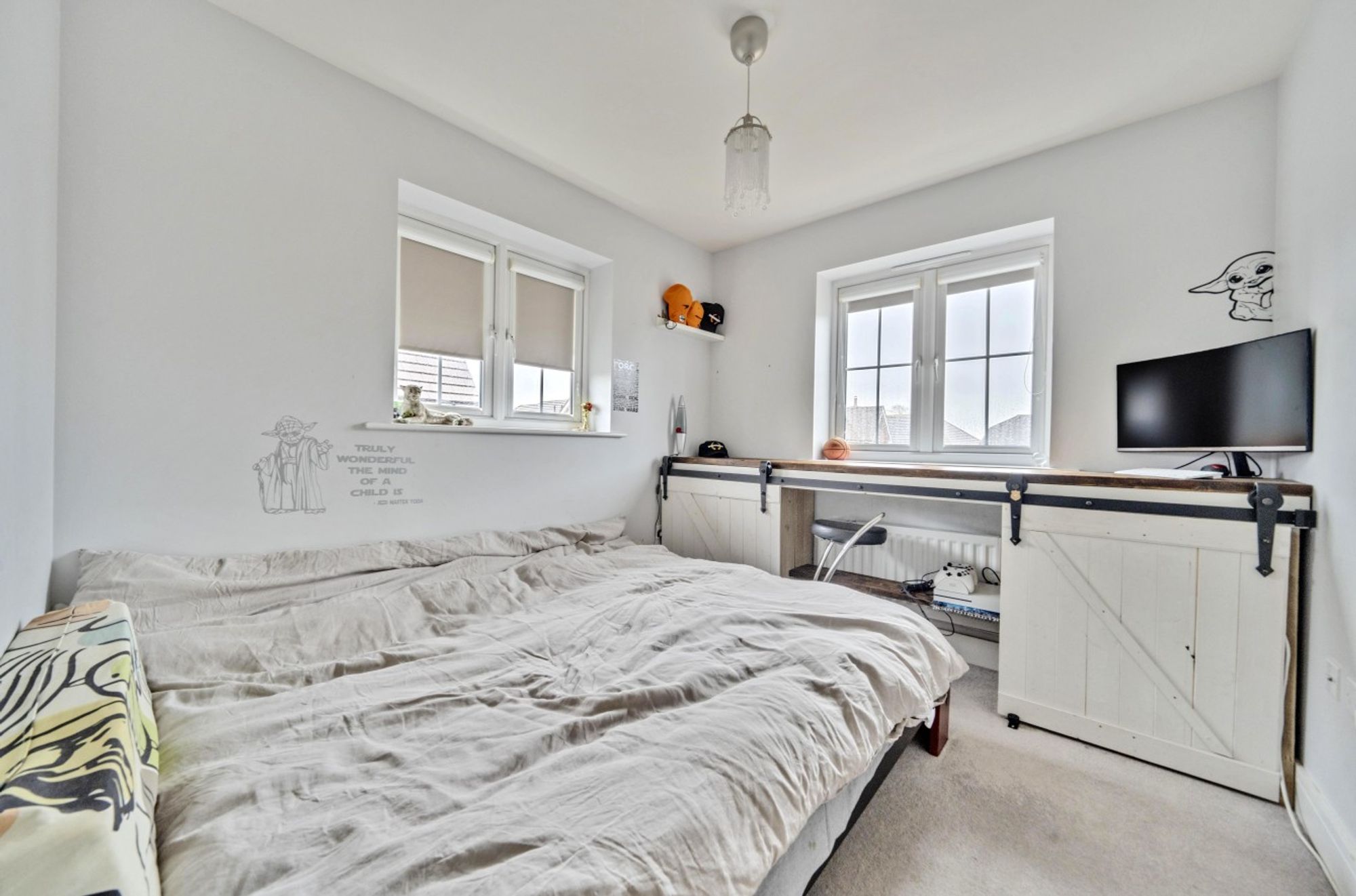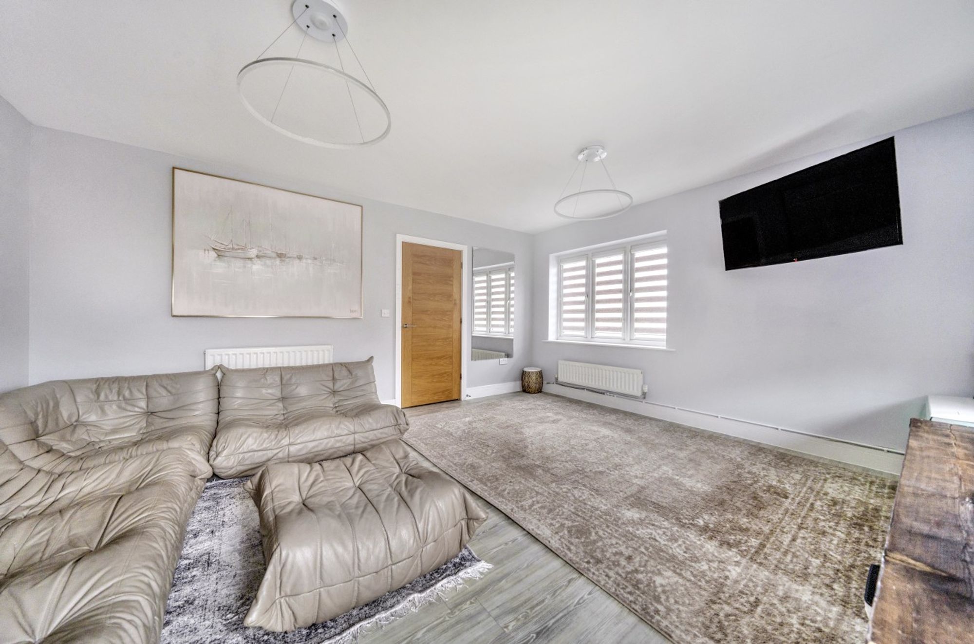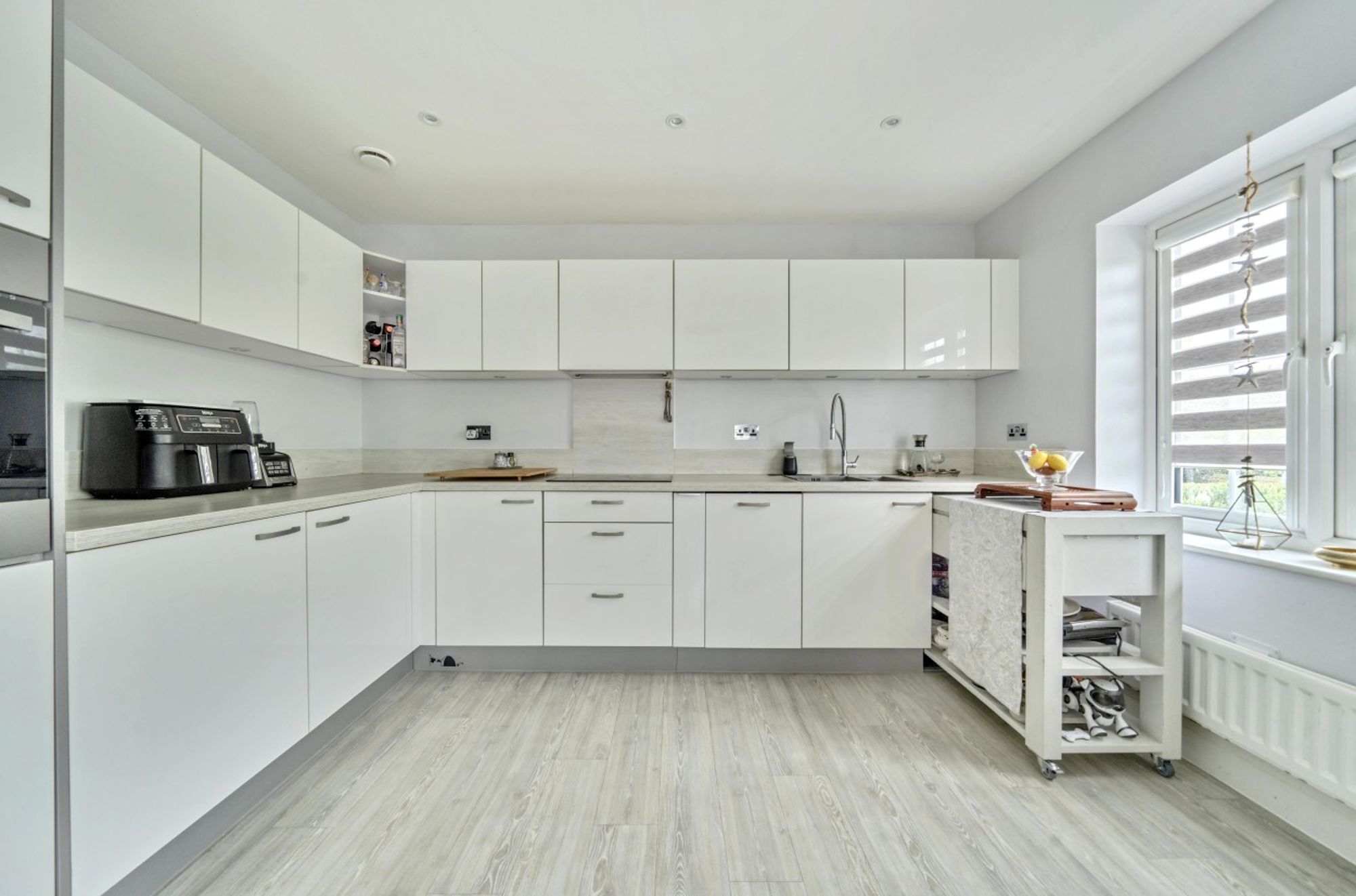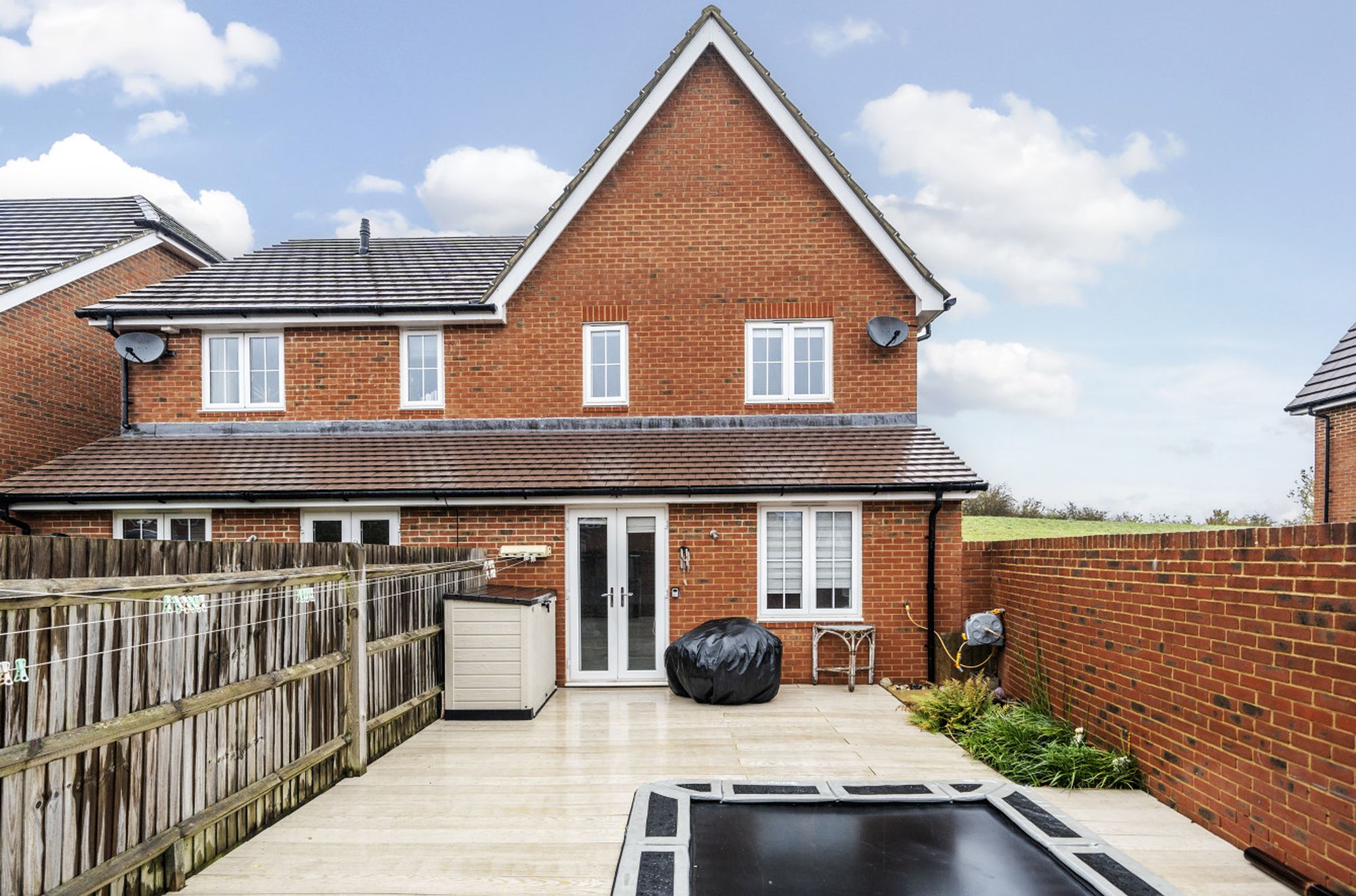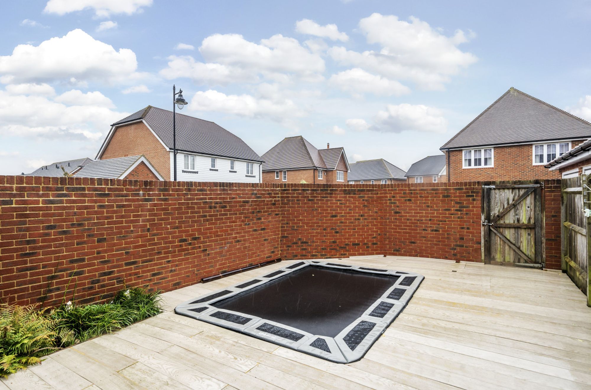 Outside, the rear garden has composite decking for ease of maintenance with a sunken trampoline and a rear access gate. This takes you to the driveway which in turn leads to the garage, having power and light.