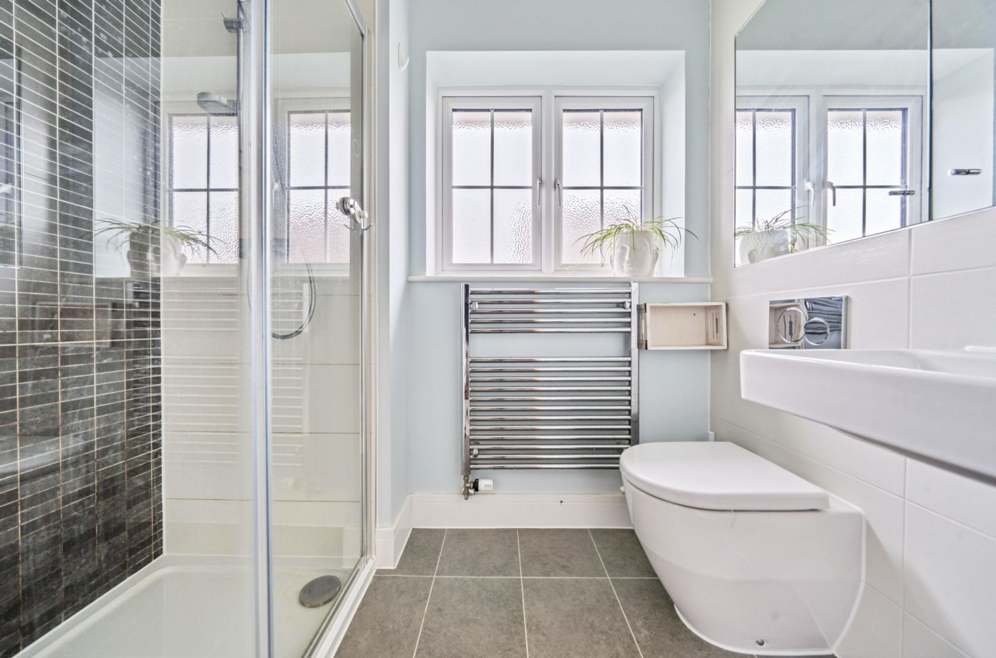 To the first floor, there are three bedrooms with the principal bedroom benefiting from a built-in wardrobe and en-suite shower room. The family bathroom has bath with mixer shower over, WC and basin.