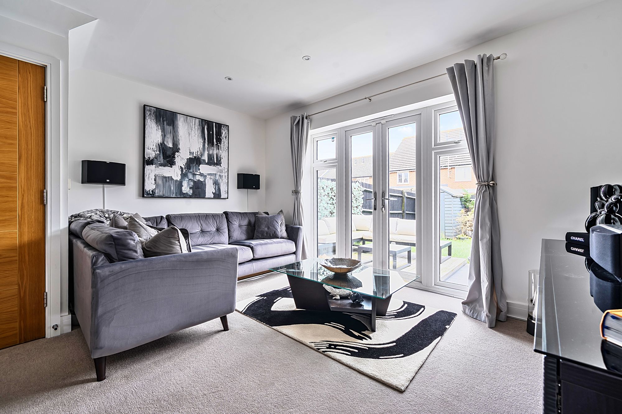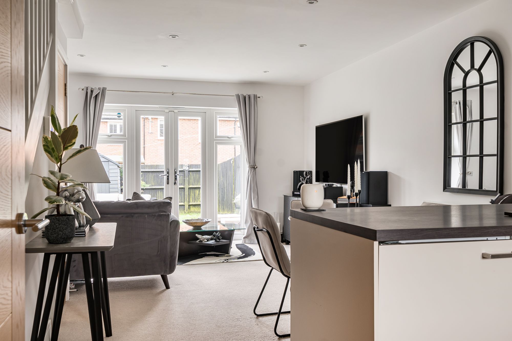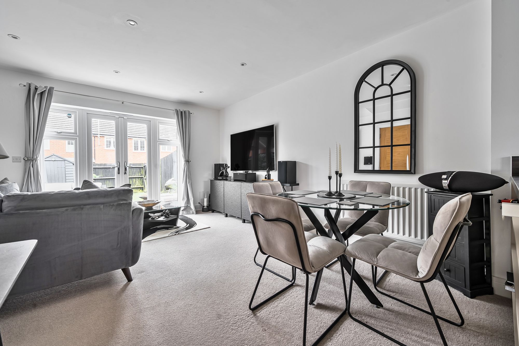 Upon entering, you are greeted by a welcoming hallway that leads into a spacious and tastefully decorated living area, where a state of the art integrated in-ceiling audio system provides seamless sound throughout the ground floor (ideal for entertaining or relaxing). The smart lighting system, installed in every room, allows you to tailor the ambience to your preference, whether hosting guests or enjoying a quiet evening in. The contemporary kitchen features high quality fittings and ample storage, blending effortlessly with the overall aesthetic of the property.