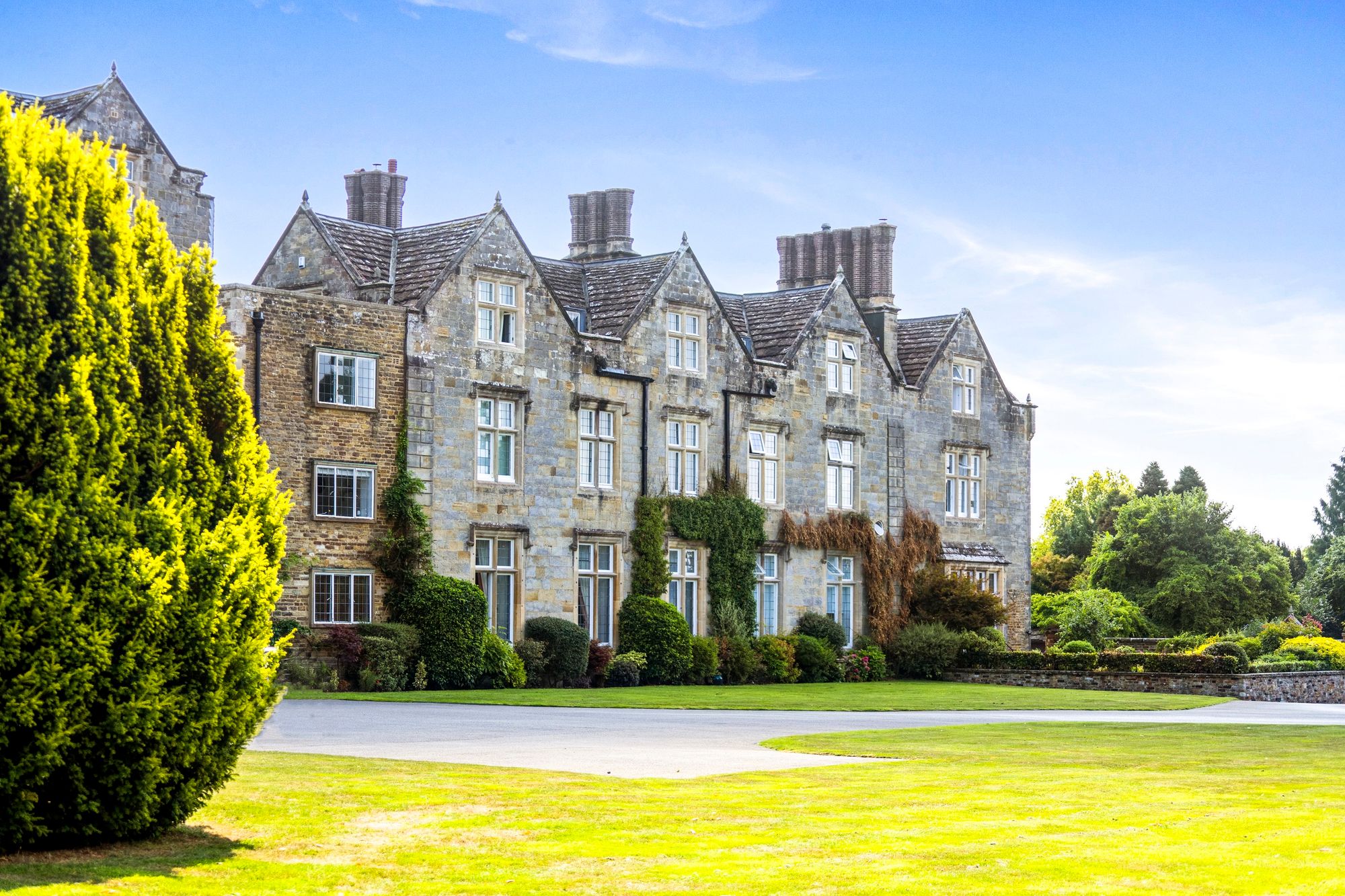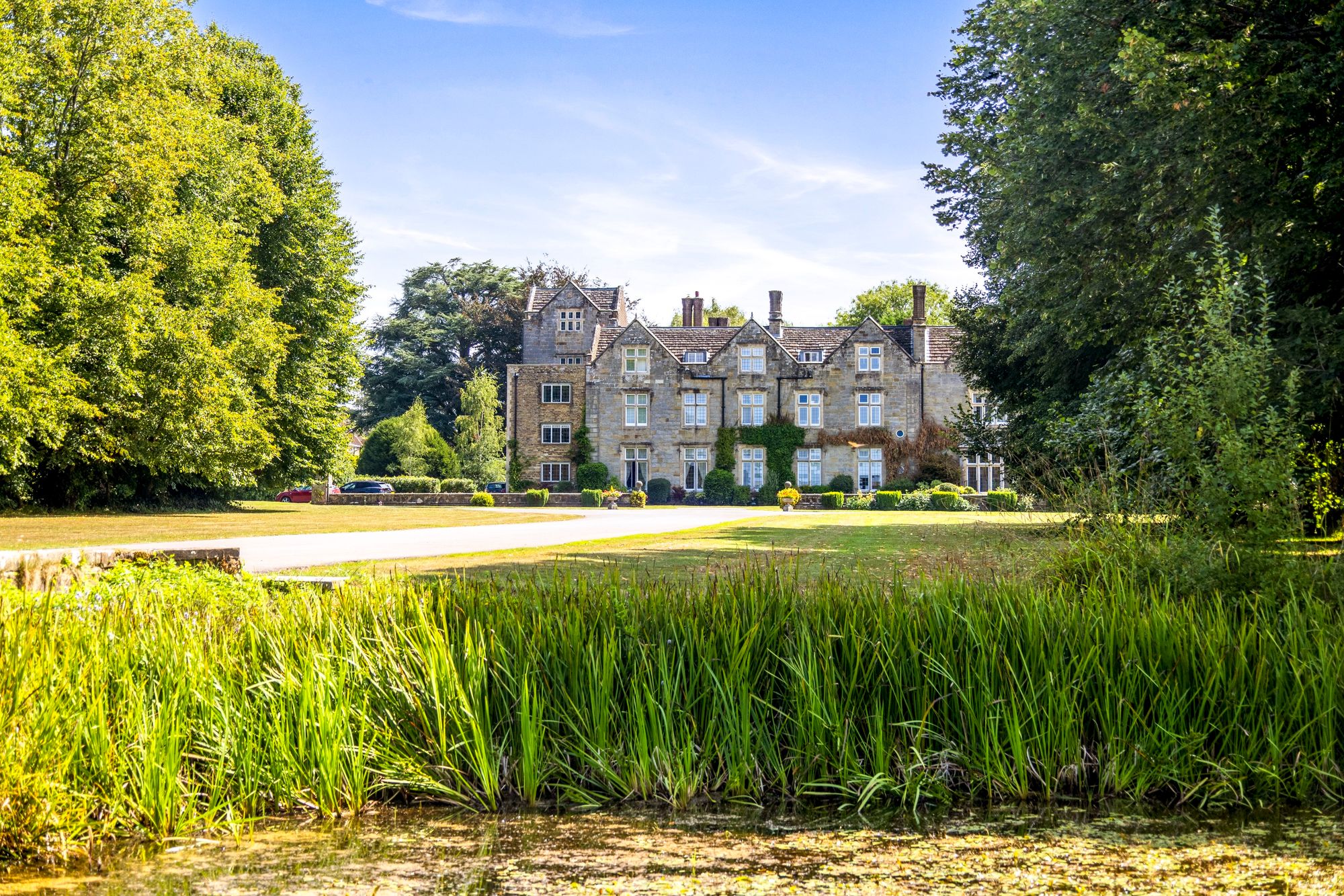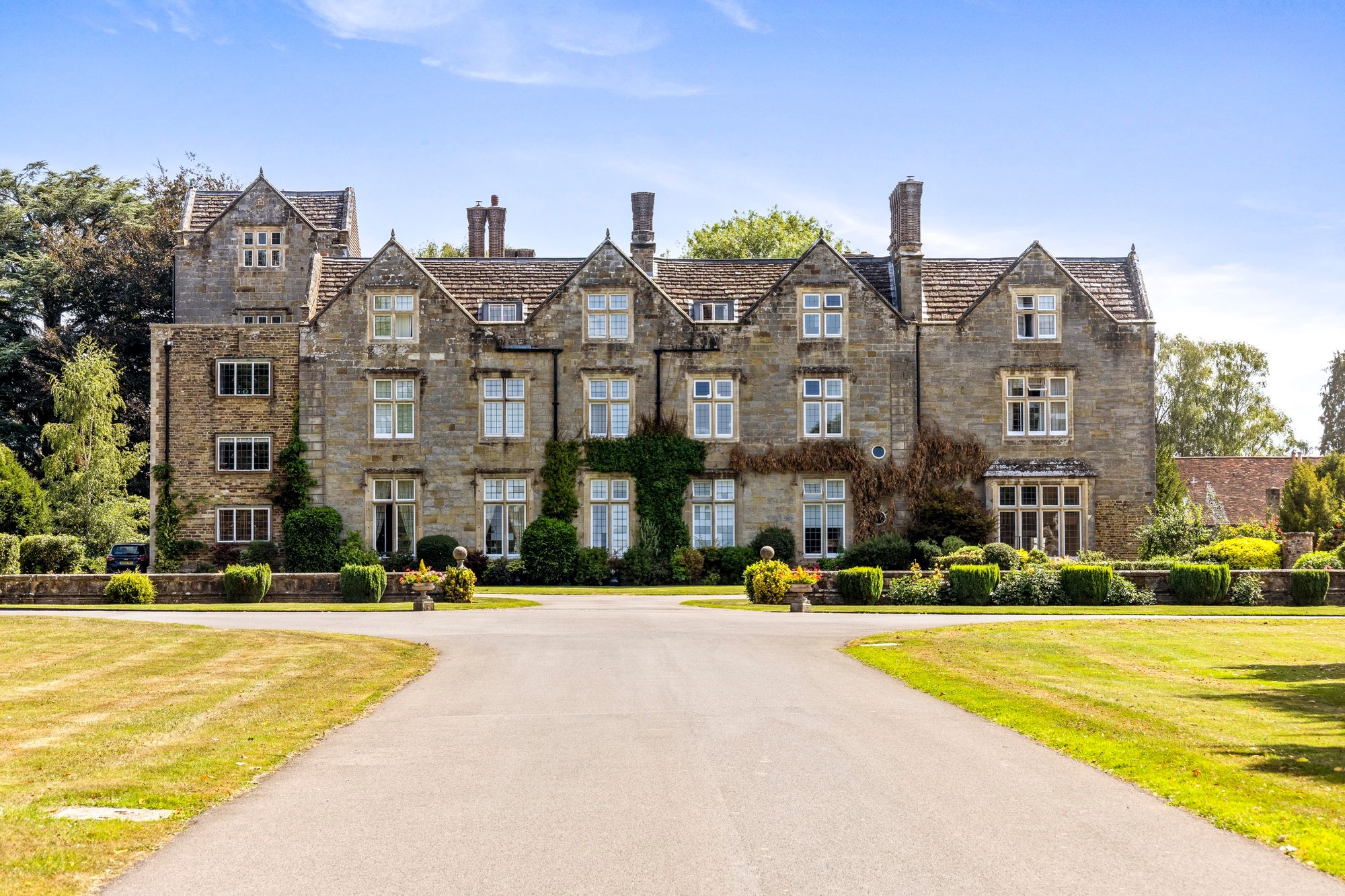 This impressive Grade II Listed, three-bedroom, mansion house apartment is set in private grounds and accessed via a tree-lined avenue offering outstanding views to and from the house. Arranged over the first and second floors, the apartment features high ceilings and generously proportioned rooms, an open fireplace and solid mahogany mullion windows. The living/dining room boasts elevated views out to the lime tree avenue, whilst the kitchen/breakfast room has ample storage space, providing a blend of modern convenience and character.