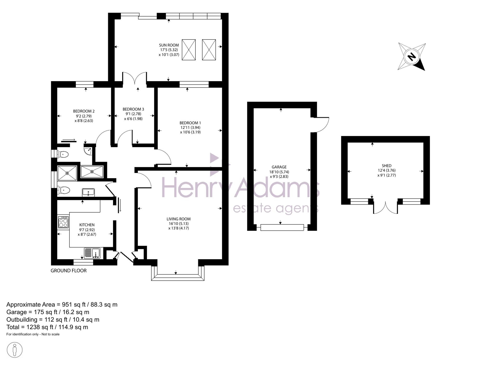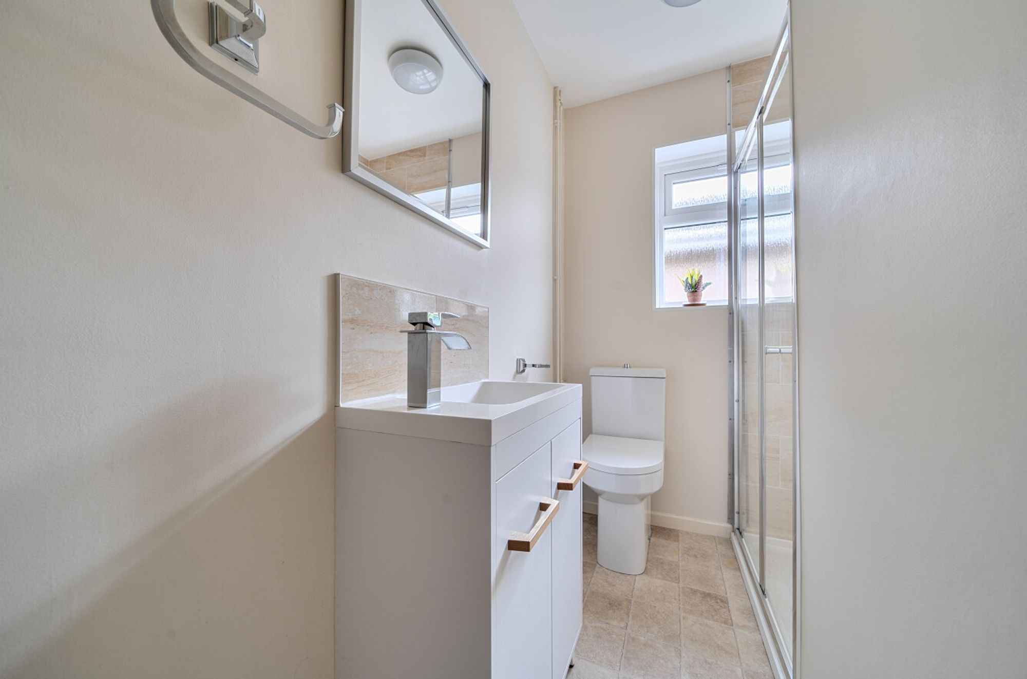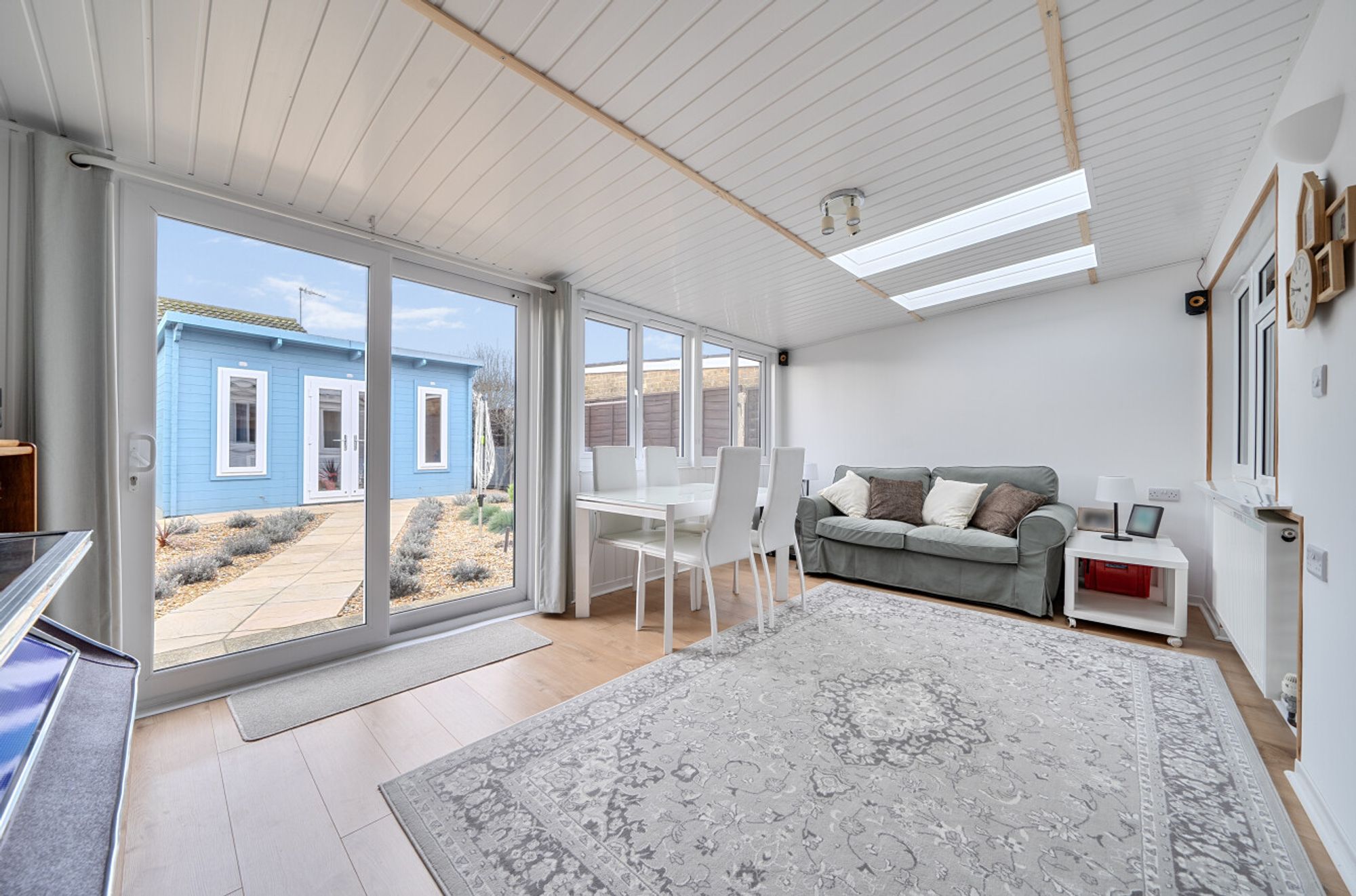 The living room measures 14ft 4ins by 13ft 8ins with an impressive 16ft 9ins into the bay window, providing a bright and comfortable space for relaxation or entertaining guests as it doubles up as a dining room.. The property benefits from a modern shower room as well as an en-suite shower room to the second bedroom, a rarity in bungalows, ensuring convenience and privacy for both residents and visitors. A standout feature is the inviting sun room, which enjoys an abundance of natural light and offers direct access into the garden, creating a seamless flow between indoor and outdoor living spaces. The kitchen is designed with both style and practicality in mind, making it ideal for keen cooks or those who enjoy hosting.