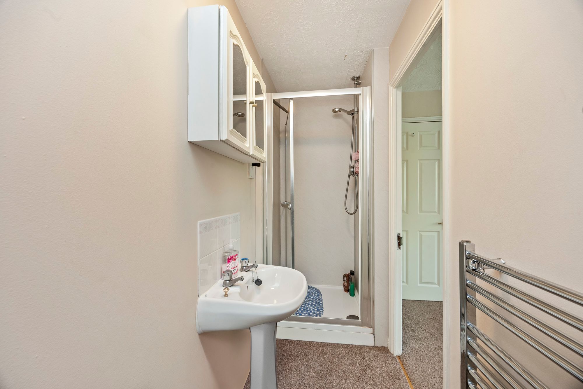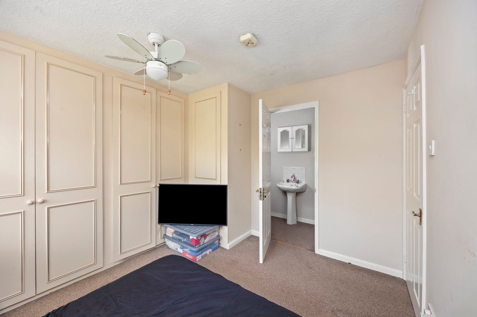 To the first floor; the main bedroom has superb selection of fitted wardrobe space and enjoys views over the rear gardens, there is also an accompanying En-suite shower room which features a walk-in shower, low-level WC and a wash hand basin - all complimented with chrome fittings.