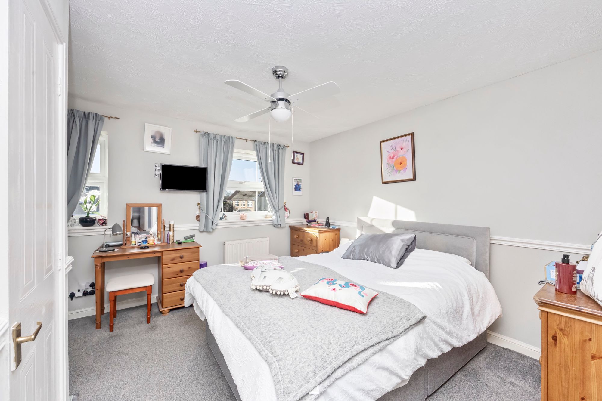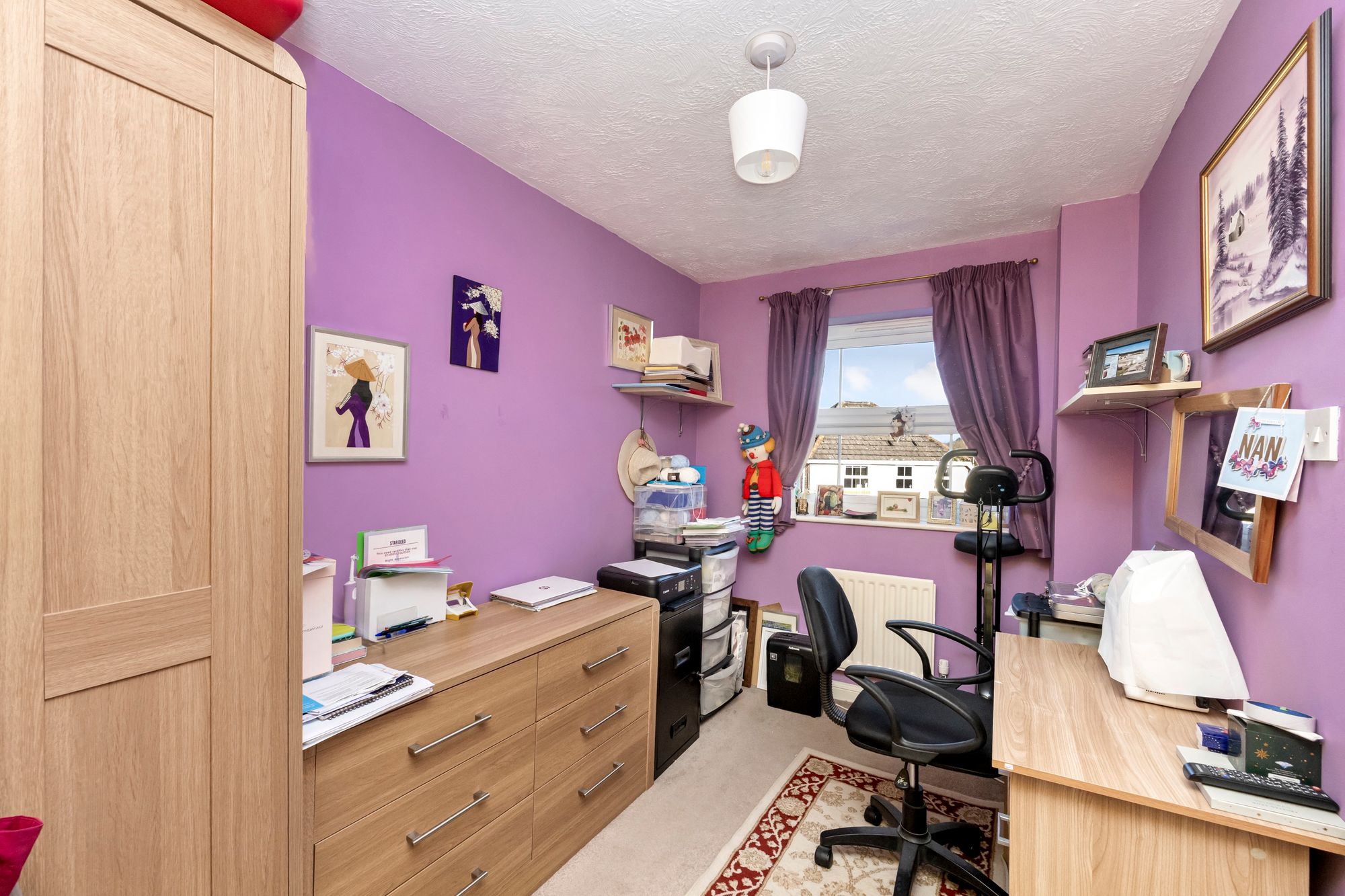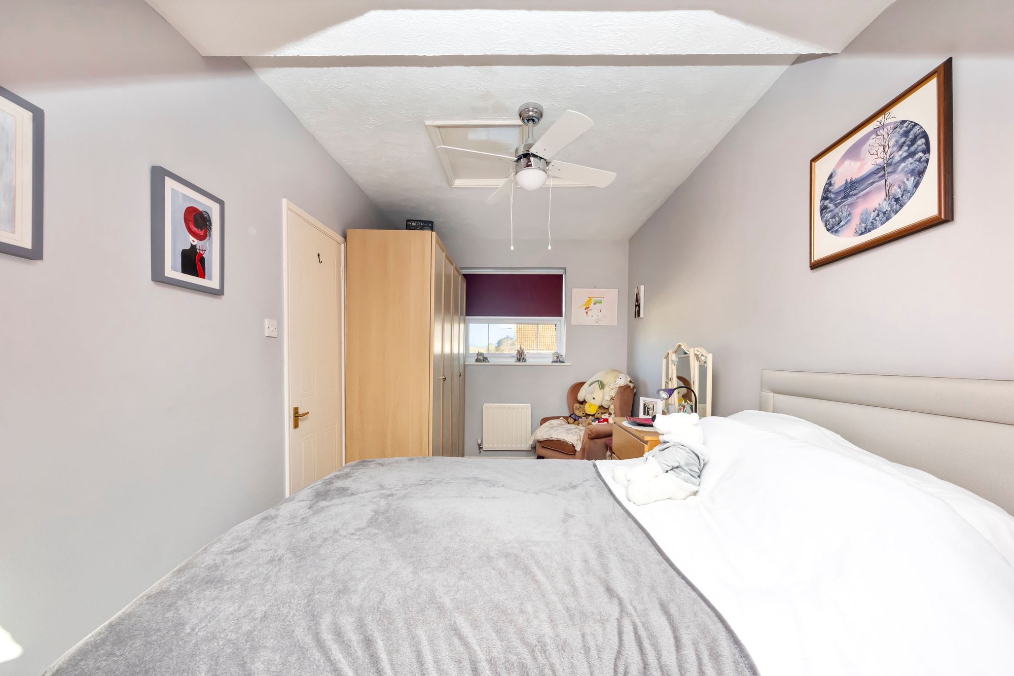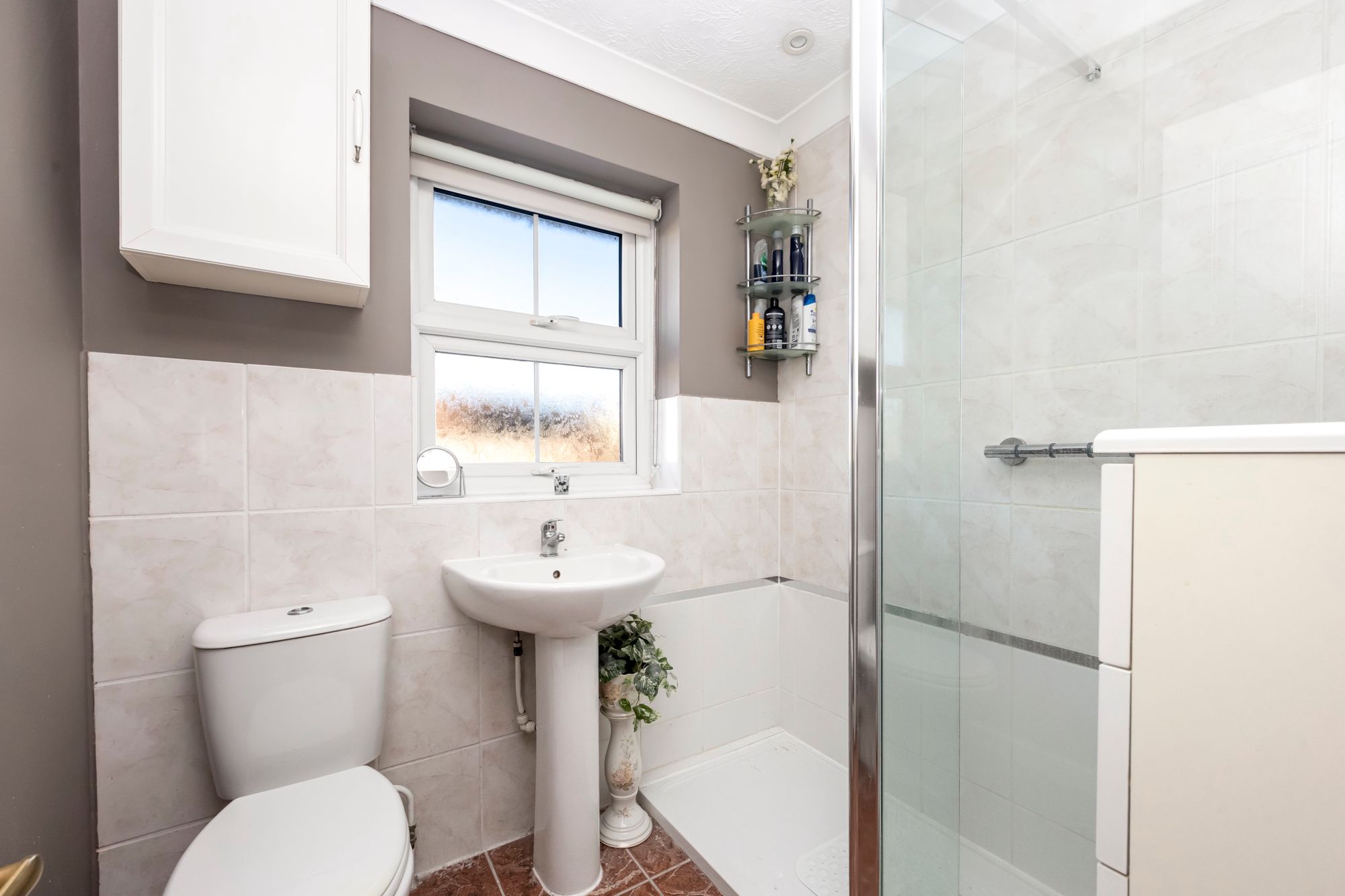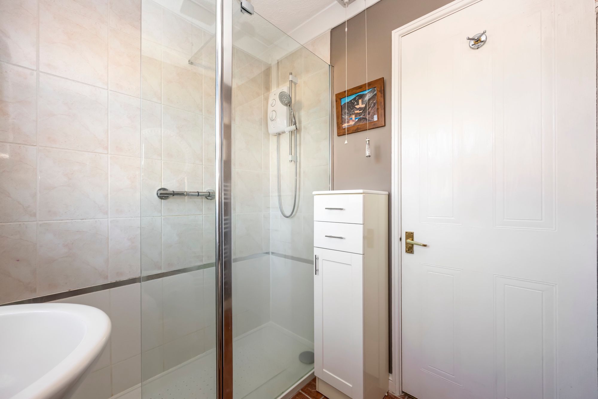 The main bedroom enjoys views over the front of the property and has a selection of fitted wardrobe space, there are two further bedrooms plus a well equipped family bathroom which a walk in shower a low level WC and basin.