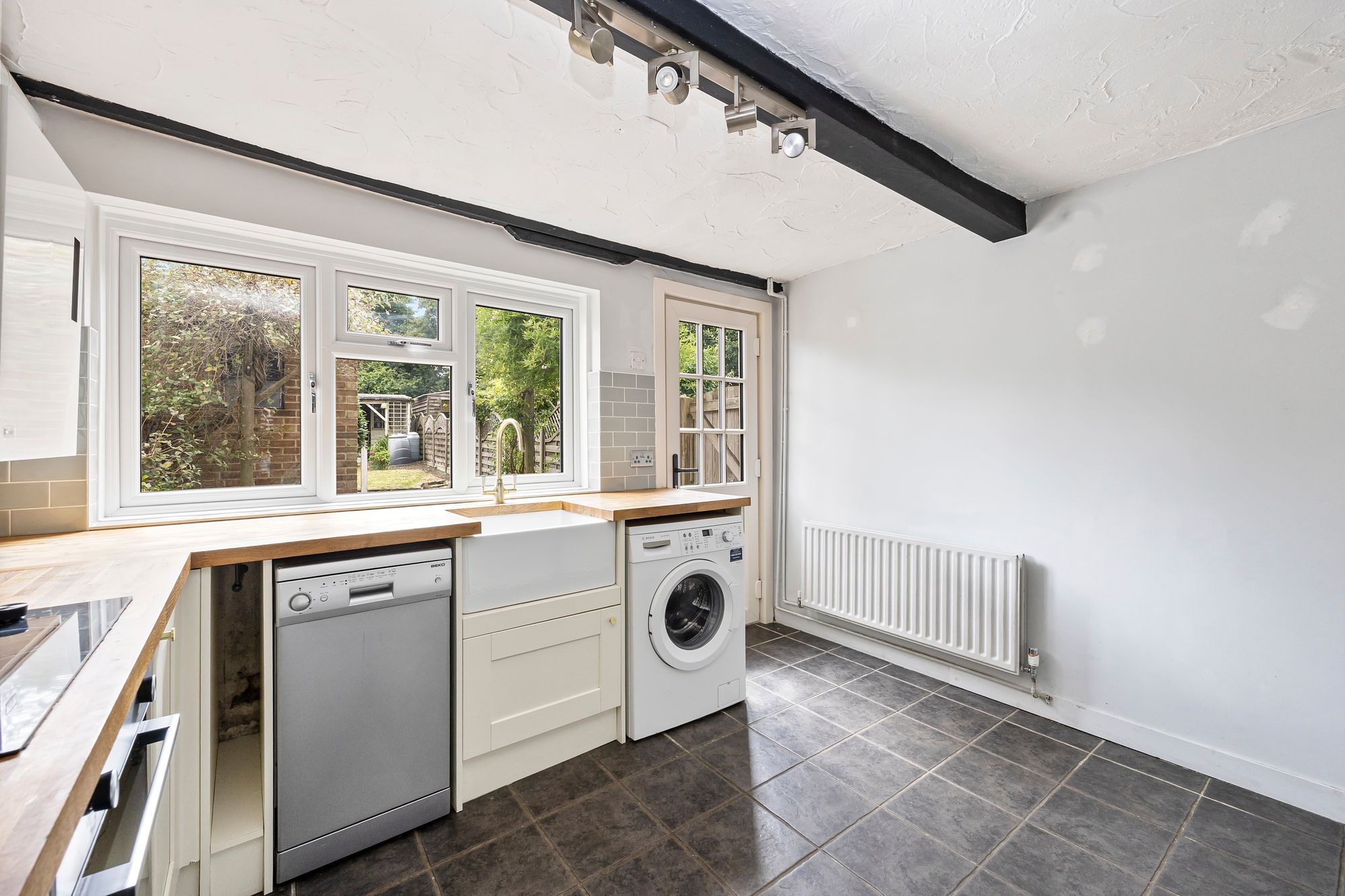 On entering the property you will walk into the welcoming living room which is adorned with beamed ceilings and a period fireplace. This flows nicely into the kitchen which features modern appliances and dining area with doors leading out to the garden. The kitchen offers modern appliances and a designated dining room area with door leading out to a surprisingly larger then expected garden. Upstairs the property continues to impress and also offers scope to change the layout to suit with two double bedrooms, each offering comfortable accommodation. One of the bedrooms includes an extended dressing room, offering versatile usage possibilities such as a study, additional storage, or a playroom. This bonus space is accessed via stairs in the bedroom into the loft space and has been thoughtfully added and is where the potential to change the layout lies.