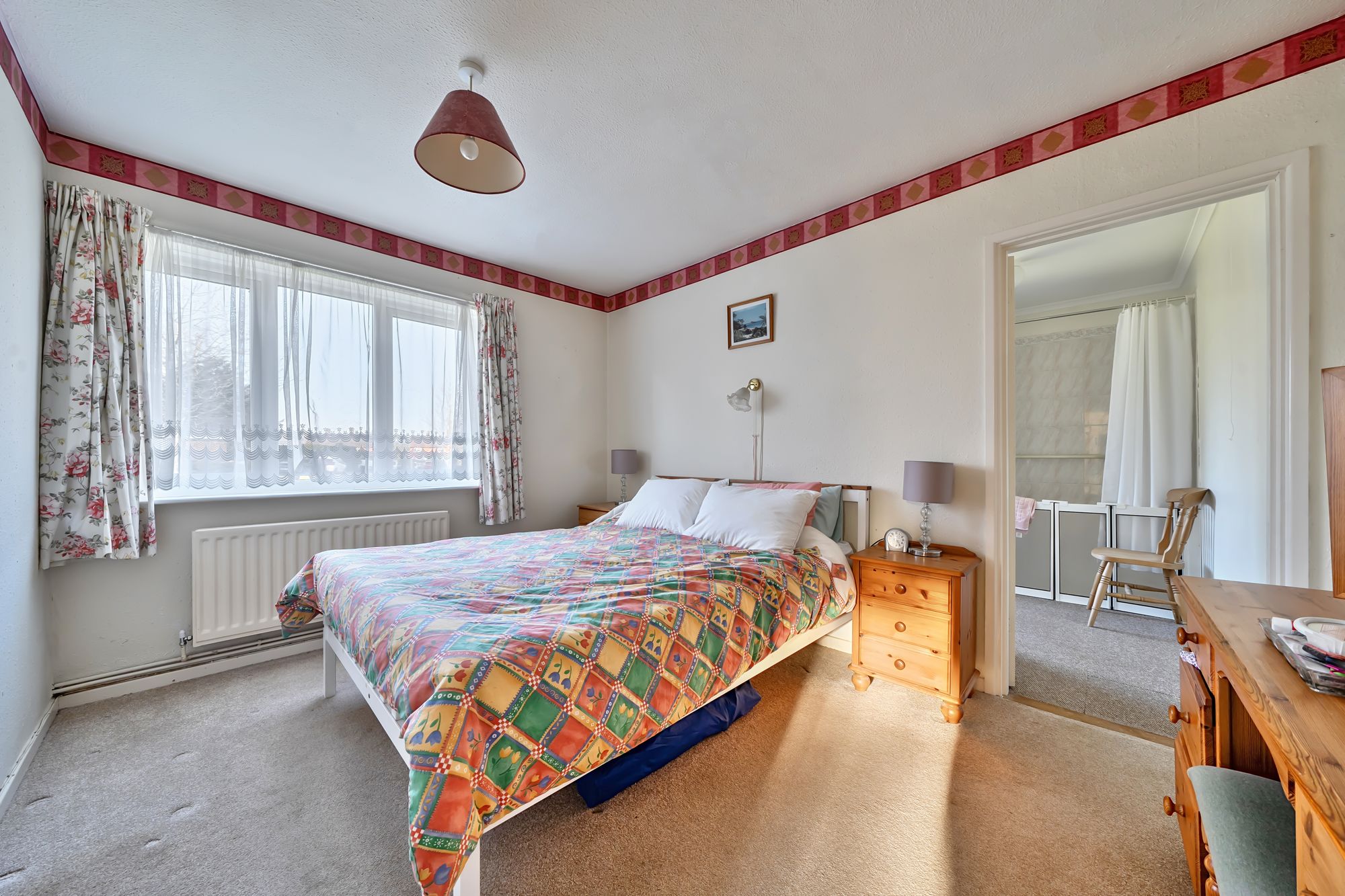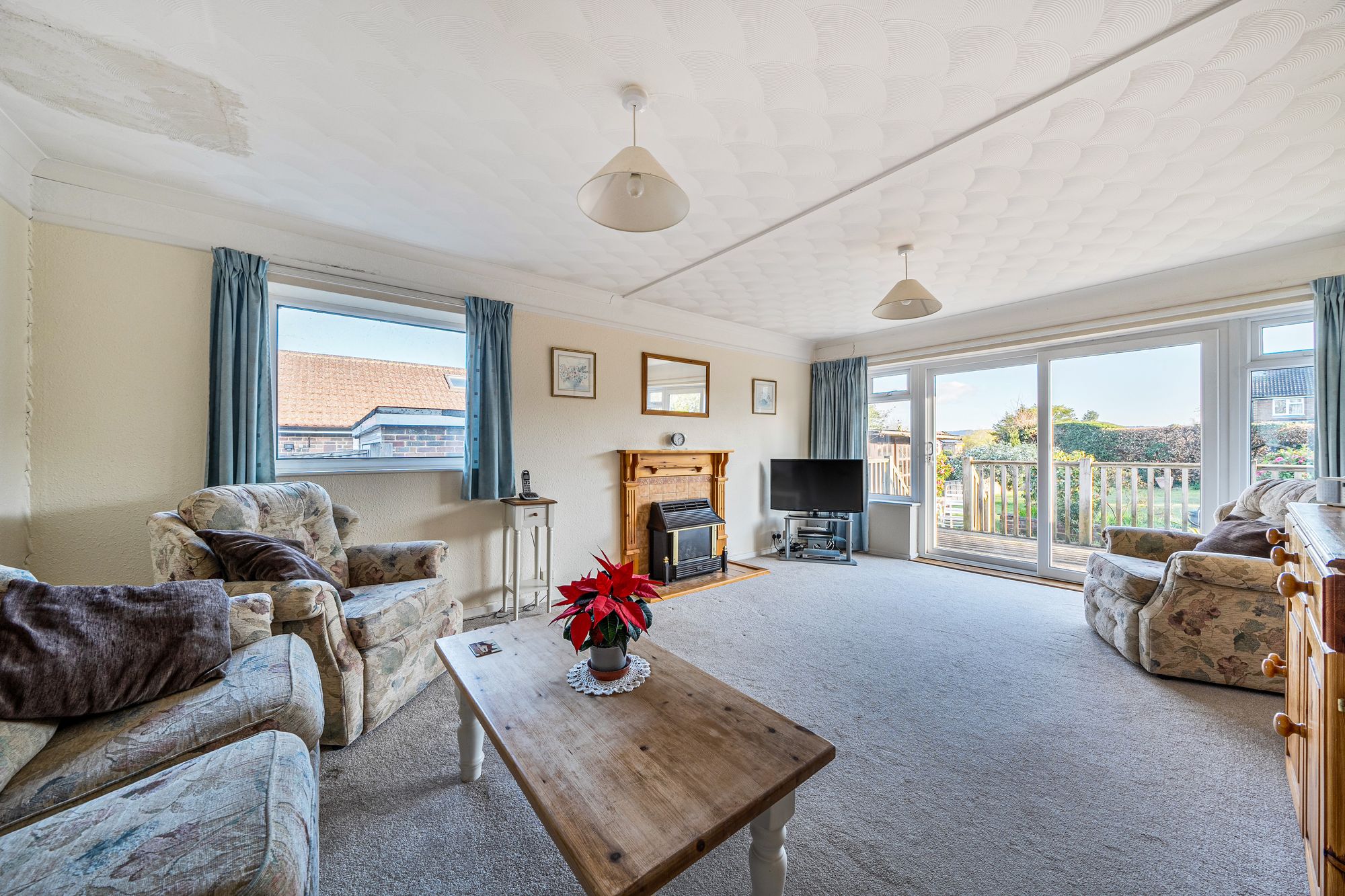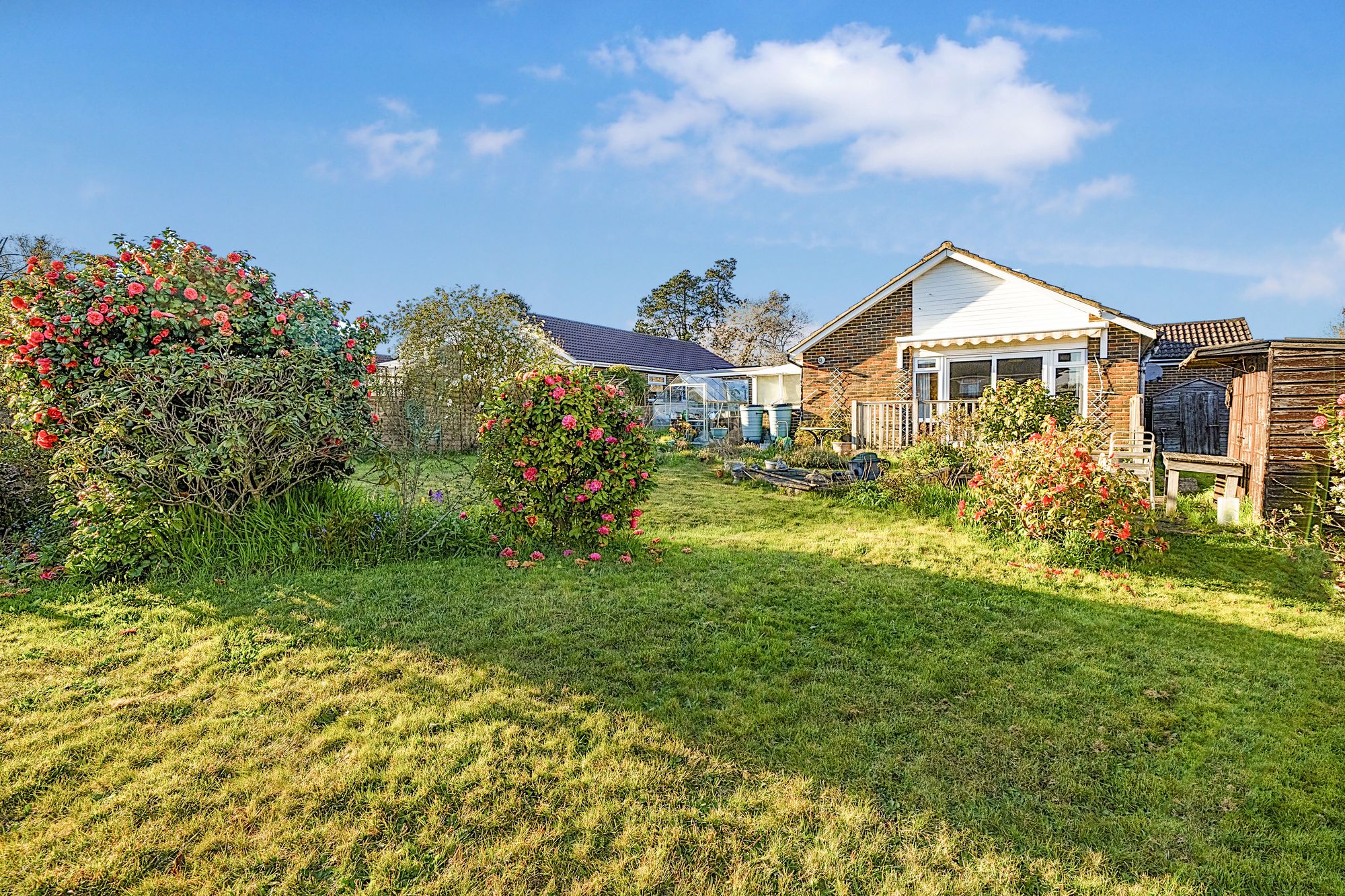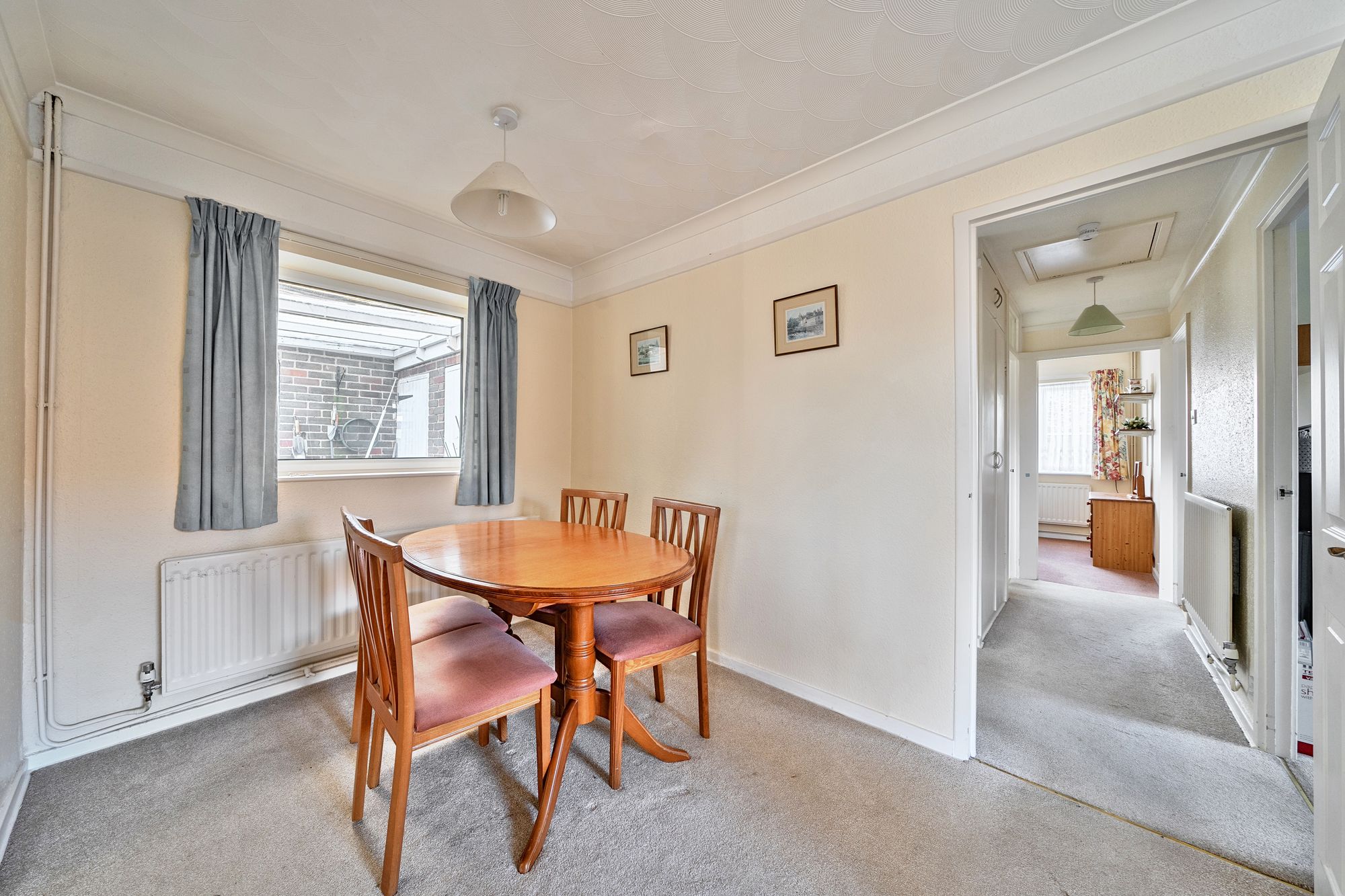 This detached bungalow offers a fantastic opportunity for those seeking single-level living. The property is offered with no onward chain, providing a straightforward purchase opportunity. The property comprises three well-proportioned bedrooms, one with an en suite shower room, a separate family bathroom and a spacious reception room. The inviting living area is enhanced by a cosy fireplace and large windows that flood the space with natural light, creating a warm and welcoming atmosphere. Sliding doors offer direct access to the expansive garden. The kitchen is fitted with ample storage and worktop space, making it a practical space, while the adjacent dining area enjoys ample natural light and a comfortable setting for family meals or entertaining guests.