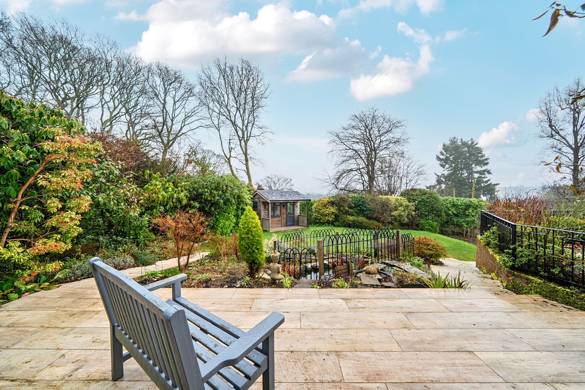 The garden is a real feature of the property with expansive paved terrace (with electric awning) running the width of the property with a pond with water fall. Steps and a path lead down from the terrace to a lawn screened by Rhododendrons and mature evergreen shrubs that provide excellent privacy. In addition there is a timber summer house (with power) as well as raised fruit beds. A further path leads around the bungalow to a useful area behind the garage where there is currently a greenhouse and space for sheds.