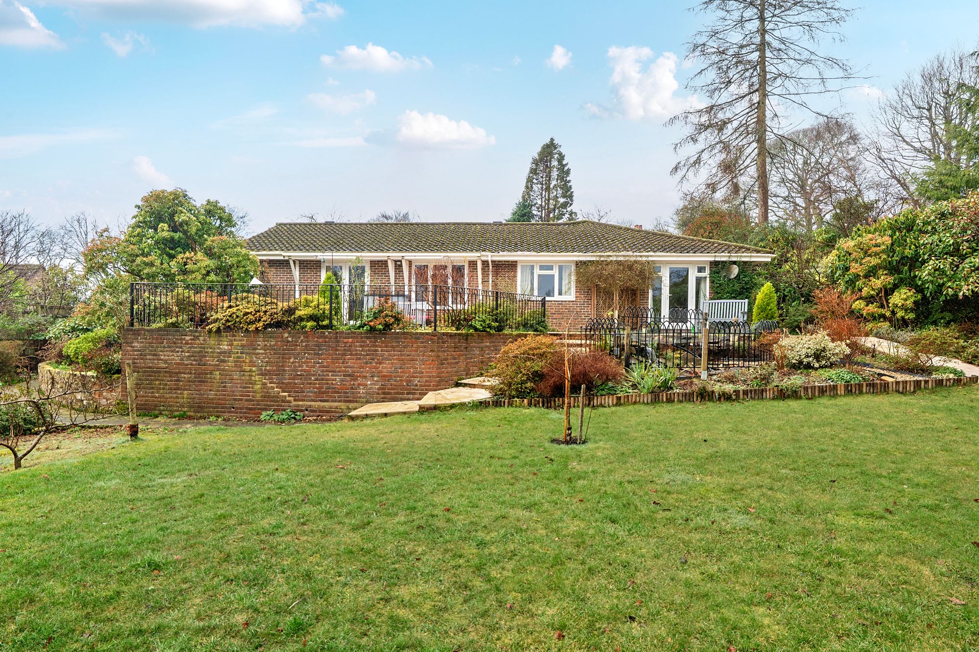 A spacious detached bungalow situated on a secluded plot on sought-after Farnham Lane in Haslemere.