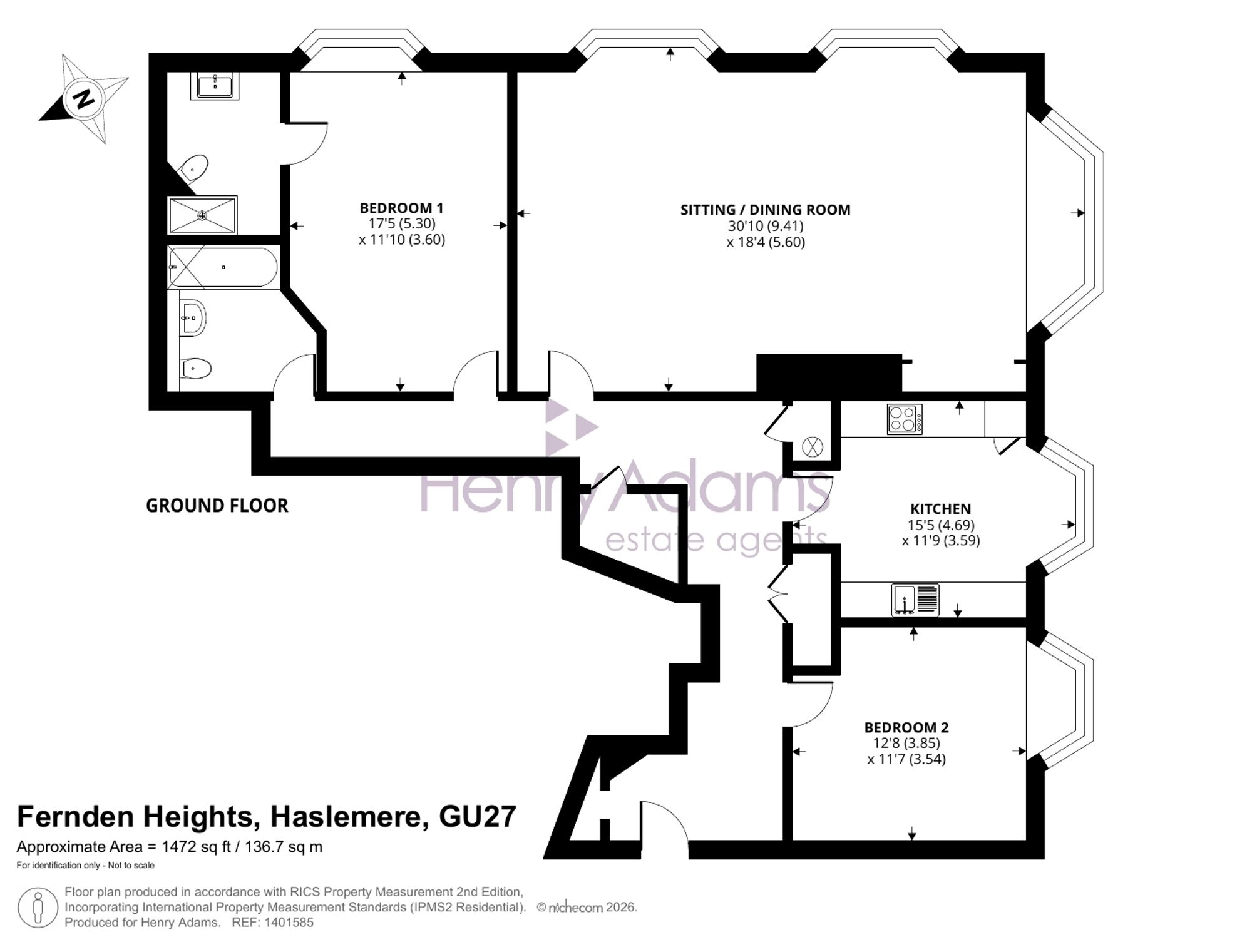 2 Fernden Heights is a spacious, raised, ground floor apartment of circa 1472 sq ft in this converted period building that was a former school set in extensive grounds and with stunning views over the surrounding countryside.