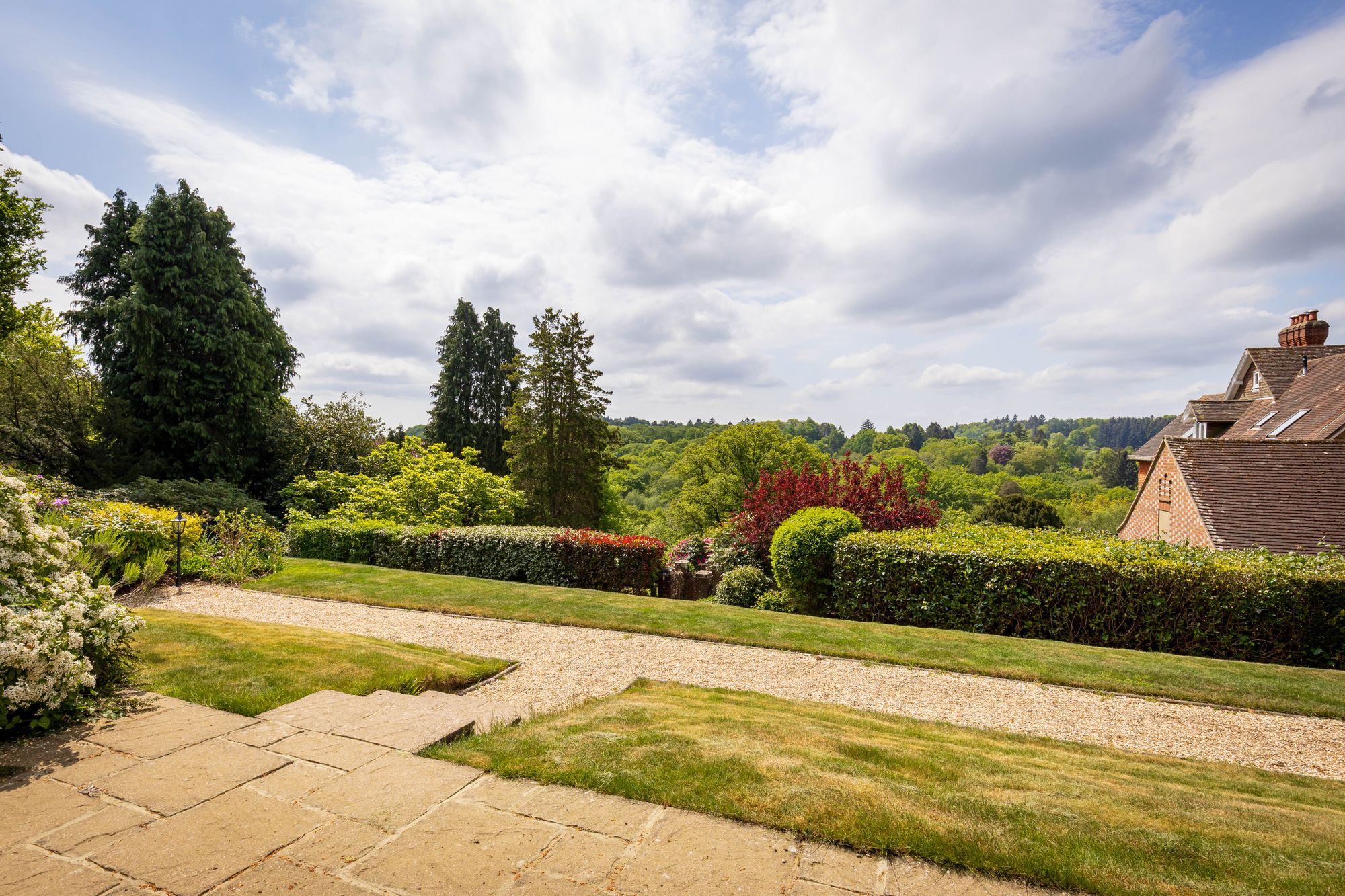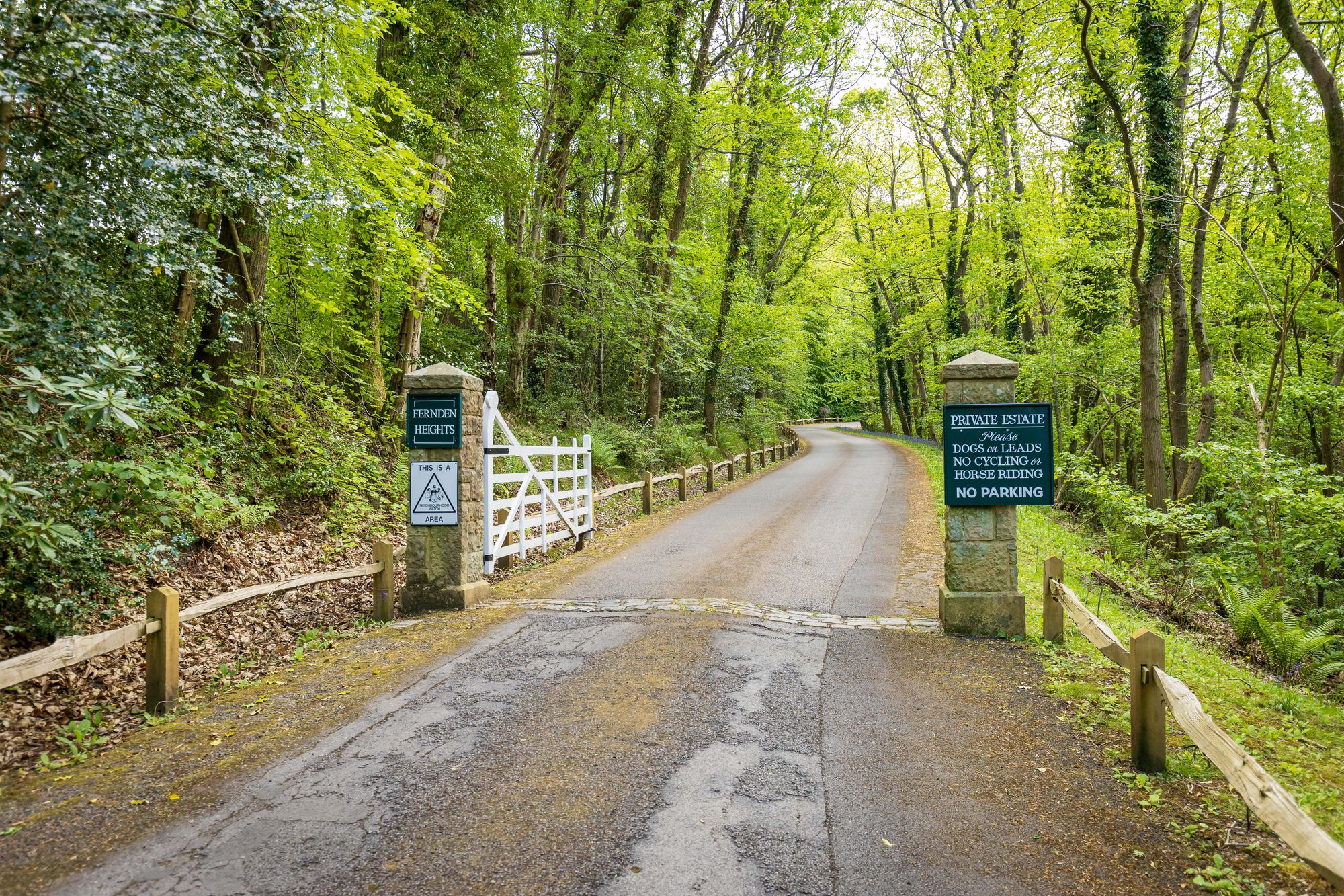 Accessed via a private driveway winding through bluebell woods, the property enjoys stunning south-westerly views and immediate access to National Trust-maintained pathways and bridleways.