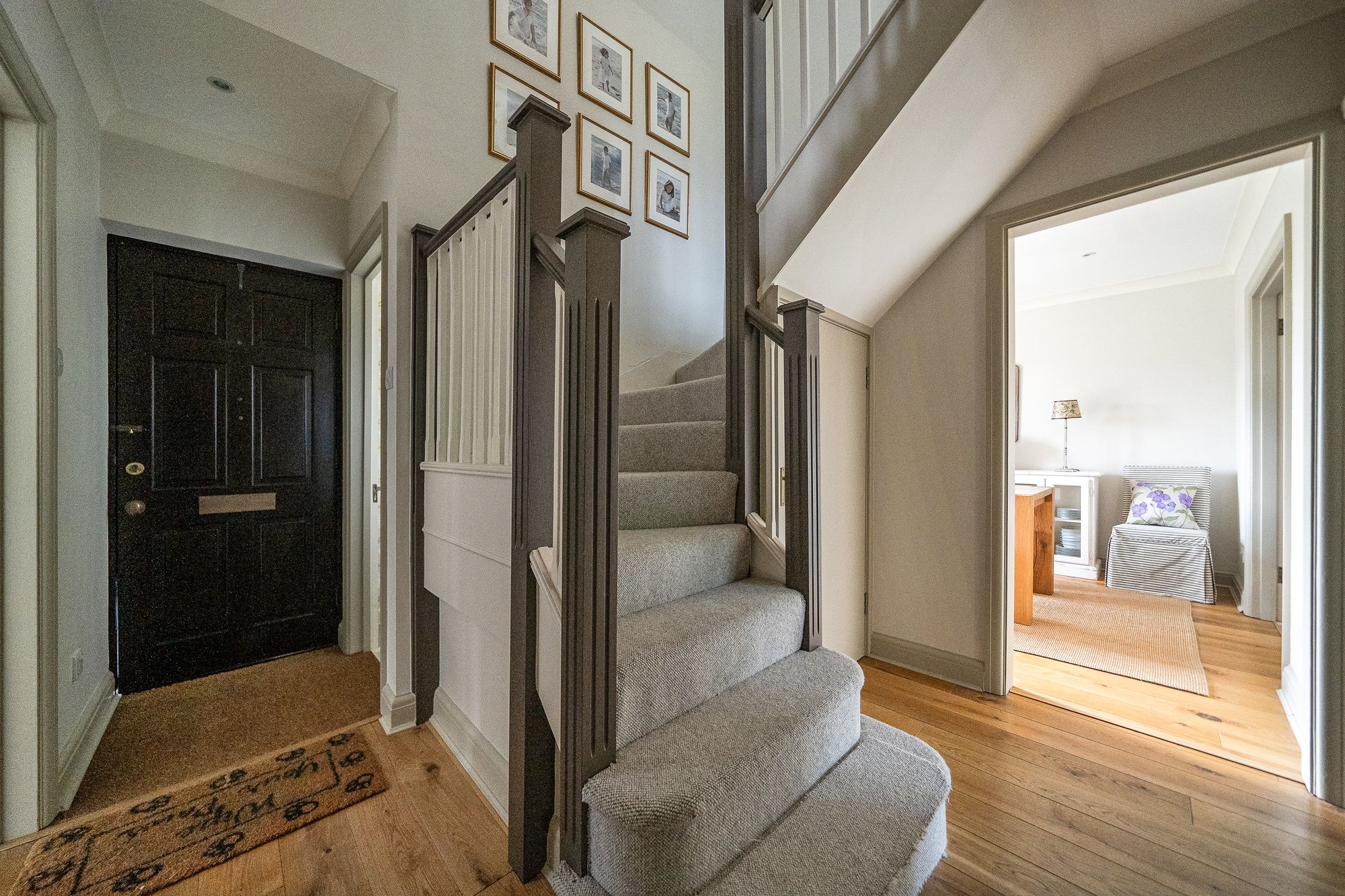 Tastefully modernised and offered with no onward chain, the cottage features oak flooring throughout, a neutral Farrow & Ball colour palette, and a Neptune kitchen equipped with high-quality appliances, including a Neff oven, induction hob, and Miele dishwasher. The adjoining utility room provides additional storage and includes a Miele washing machine and vented tumble dryer, with access to the rear garden. The light-filled dining and living rooms both offer beautiful front-facing views, while the ground floor also includes Lutron lighting controls and a convenient cloakroom.