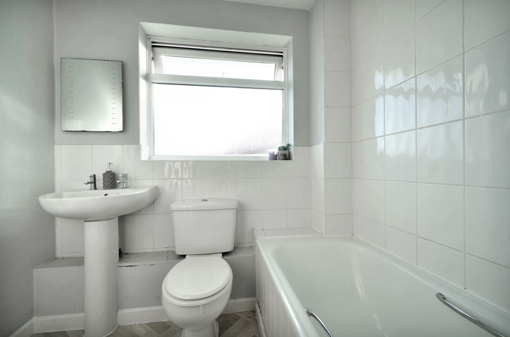 To the first floor are two good sized bedrooms and a modern bathroom, all presented in a clean, neutral style.