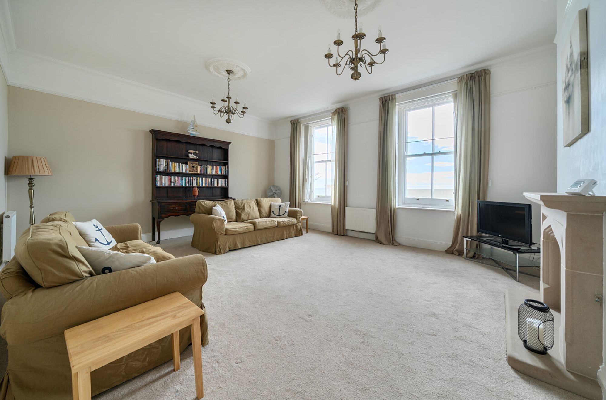 Offered chain-free with a Share of Freehold, this remarkable Regency apartment seamlessly combines period grandeur with coastal sophistication. Gracefully proportioned and bathed in natural light, the home features soaring ceilings, tall sash windows, and refined architectural details throughout.