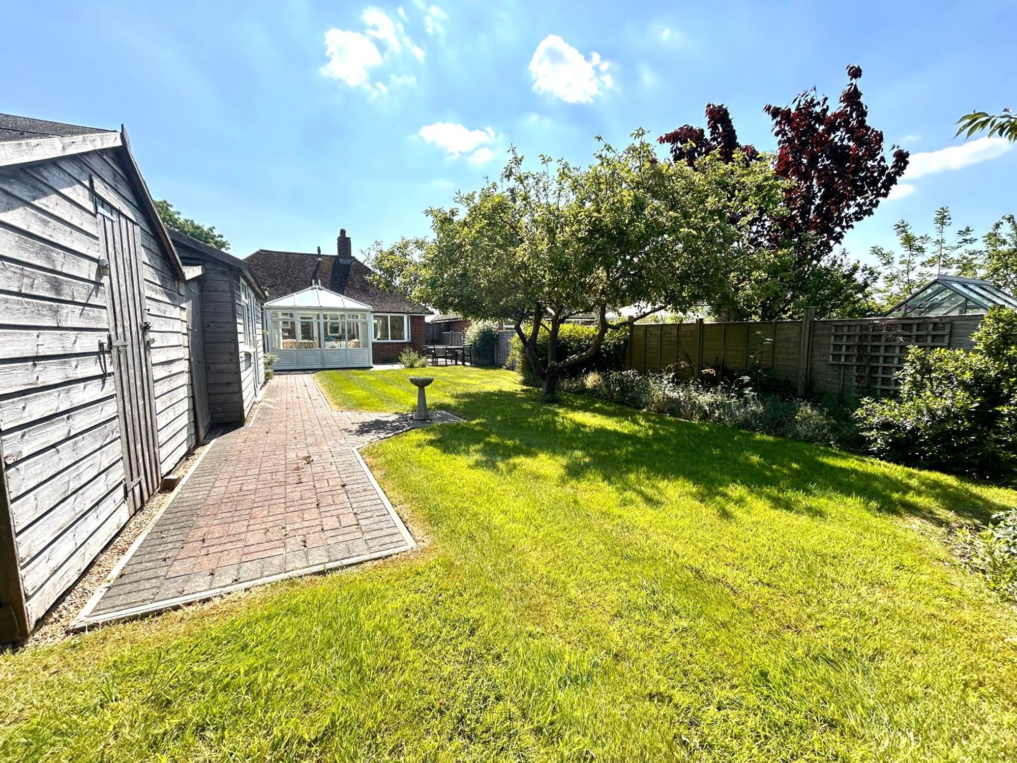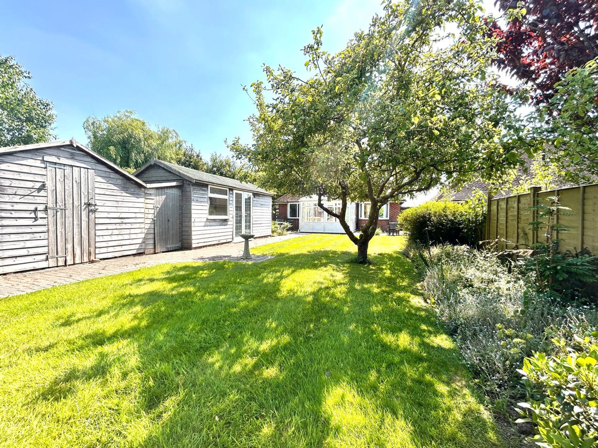 Outside, a wide driveway at the front of the bungalow provides off road parking for two cars. The front garden is enveloped by a dwarf wall and a side gate leads to the rear garden. At the rear there is a timber cabin providing informal accommodation with a bedroom/study and a shower room. The garden has a patio giving way to lawn and a border on one side and two garden sheds at the far end.